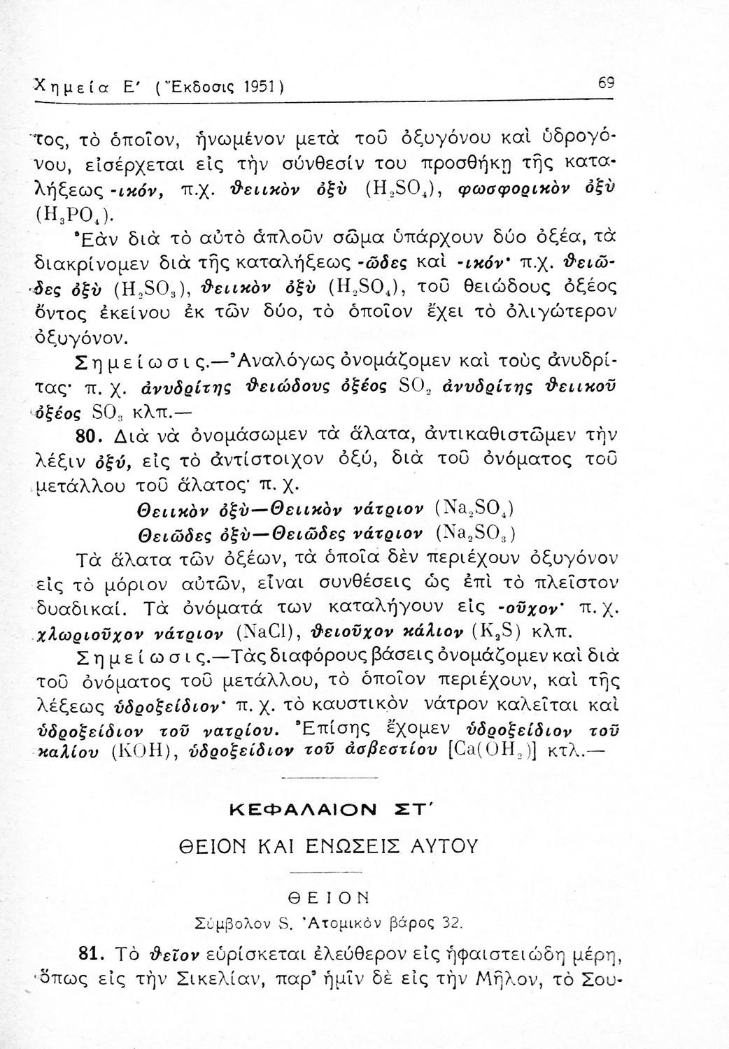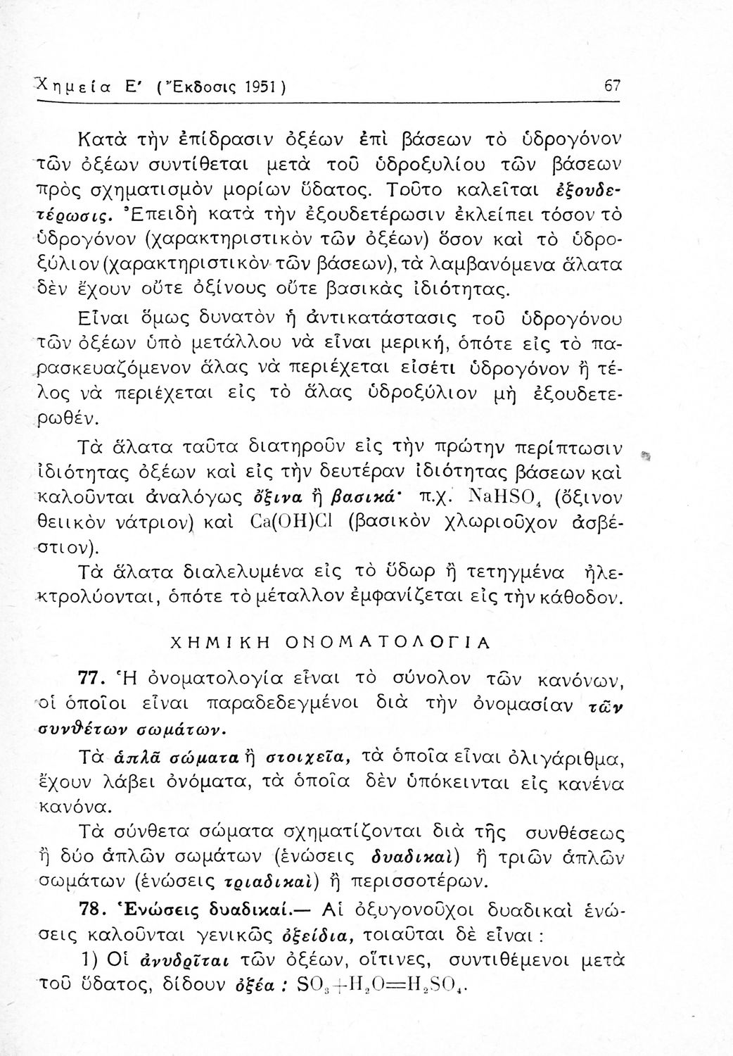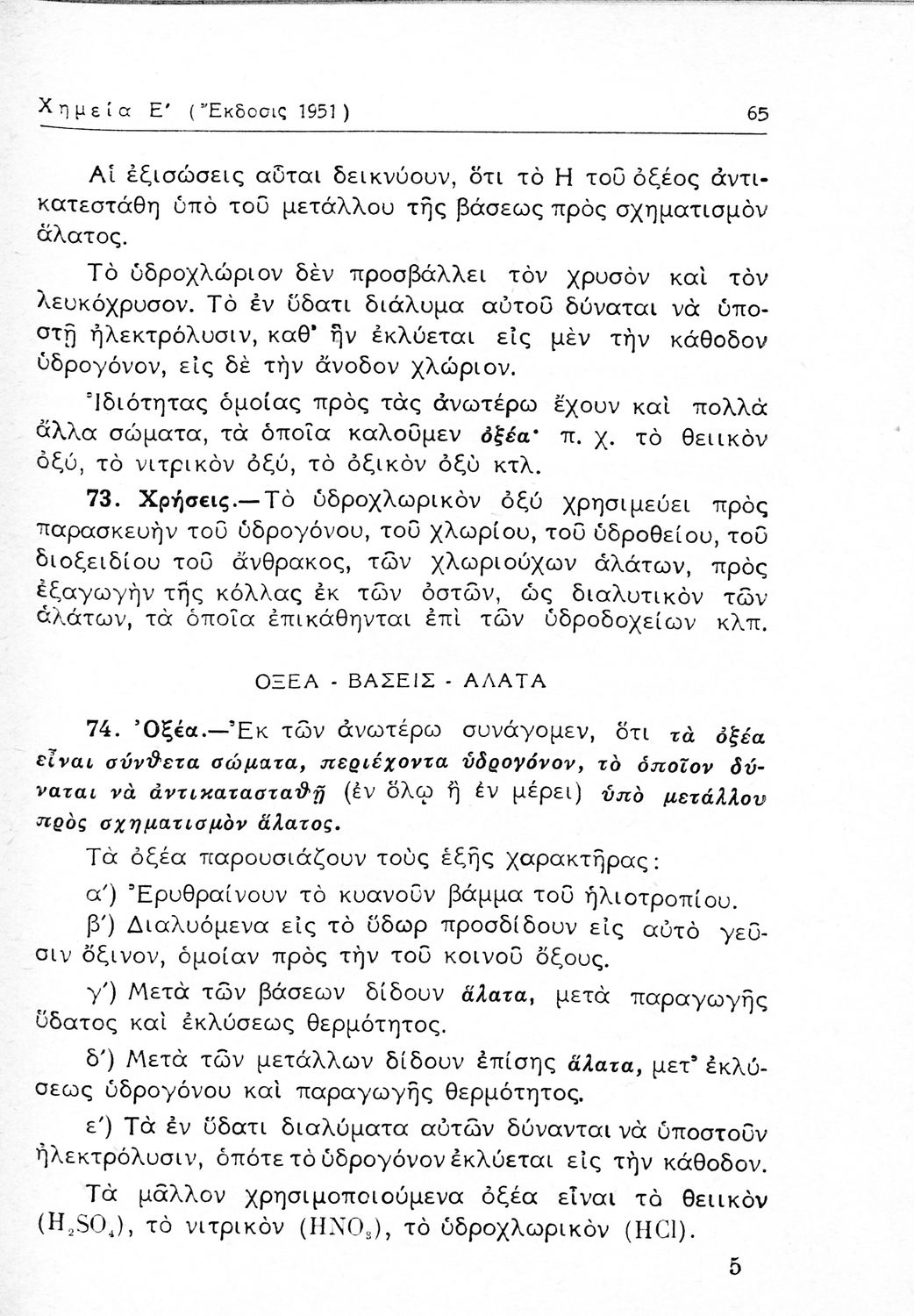 Χημεία. Δια την Ε΄ Τάξιν των Γυμνασίων