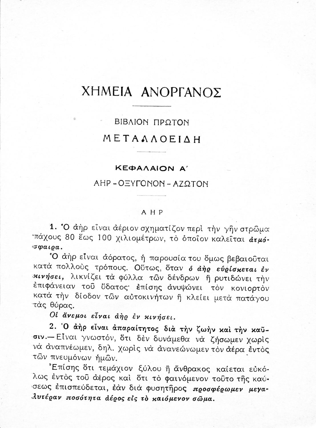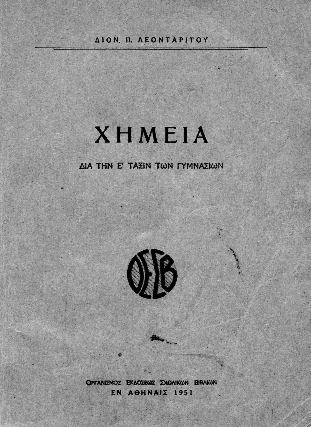 Τίτλος: Χημεία. Δια την Ε΄ Τάξιν των Γυμνασίων