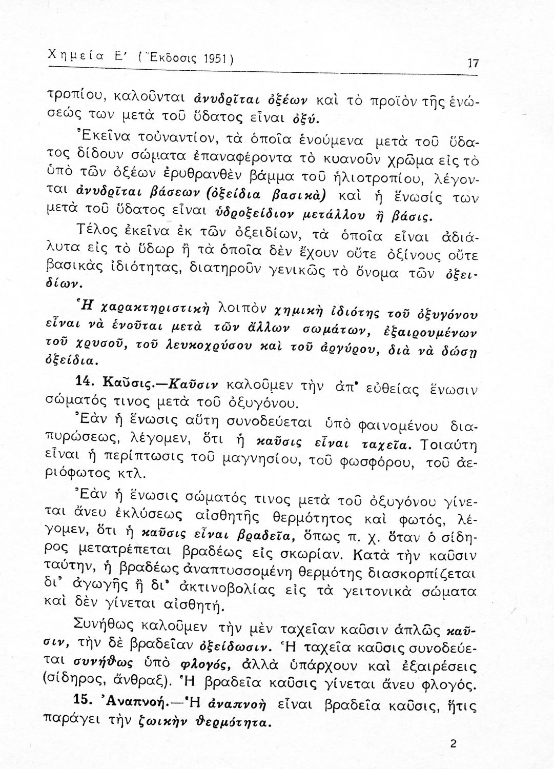 Χημεία. Δια την Ε΄ Τάξιν των Γυμνασίων