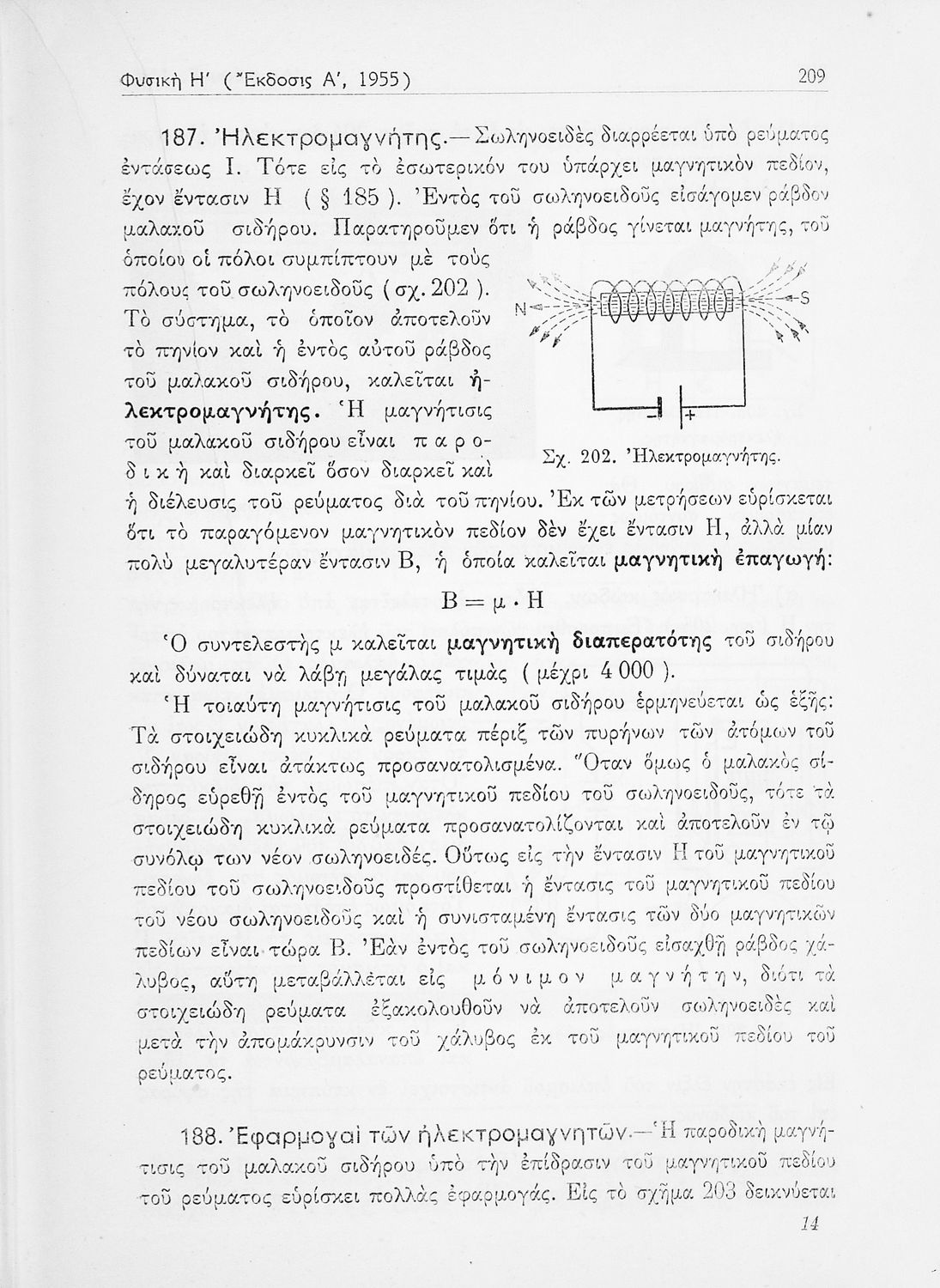 520 ## _aΣχολικό εγχειρίδιο της Η' Γυμνασίου για το μάθημα της Φυσικής. Παρέχει βασικές γνώσεις της φυσικής επιστήμης. Αναλύει το φαινόμενο της οπτικής, του φωτός, της διάθλασης, της φωτομετρίας, καθώς και του μαγνητισμού, του ηλεκτρισμού, του ηλεκτρομαγνητισμού, της ραδιενέργειας, τις πυρηνικές αντιδράσεις και γενικότερα την εξέλιξη της φυσικής επιστήμης. Αναφέρεται στην πρακτική εφαρμογή της φυσικής στην καθημερινότητά. Επίσης, περιλαμβάνει πολλά από τα όργανα, που χρησιμοποιούνται στη φυσική. Περιέχει εικόνες και σχεδιαγράμματα τα οποία βοηθούν τη διδασκαλία.