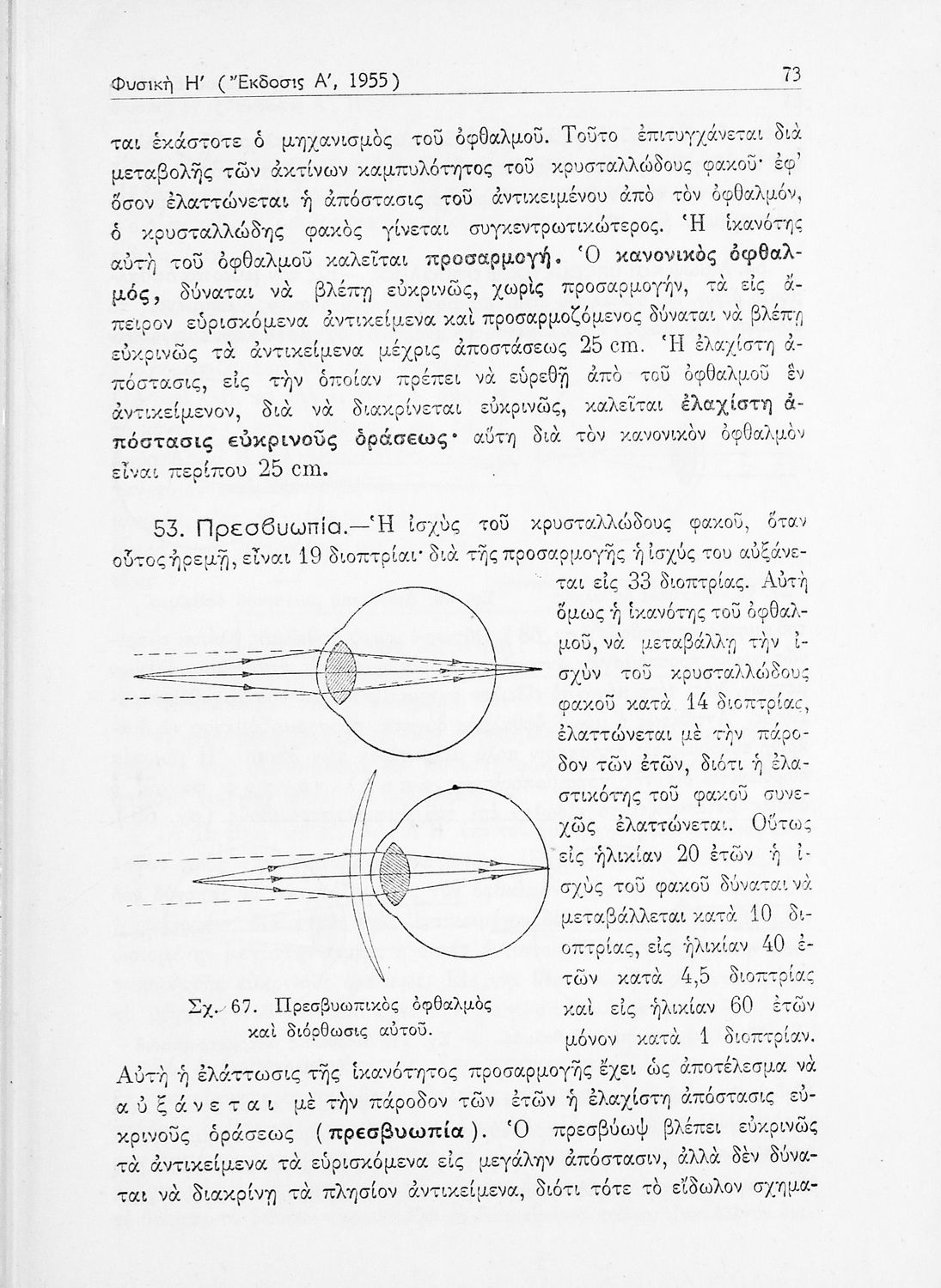 Σχολικό εγχειρίδιο της Η' Γυμνασίου για το μάθημα της Φυσικής. Παρέχει βασικές γνώσεις της φυσικής επιστήμης. Αναλύει το φαινόμενο της οπτικής, του φωτός, της διάθλασης, της φωτομετρίας, καθώς και του μαγνητισμού, του ηλεκτρισμού, του ηλεκτρομαγνητισμού, της ραδιενέργειας, τις πυρηνικές αντιδράσεις και γενικότερα την εξέλιξη της φυσικής επιστήμης. Αναφέρεται στην πρακτική εφαρμογή της φυσικής στην καθημερινότητά. Επίσης, περιλαμβάνει πολλά από τα όργανα, που χρησιμοποιούνται στη φυσική. Περιέχει εικόνες και σχεδιαγράμματα τα οποία βοηθούν τη διδασκαλία.