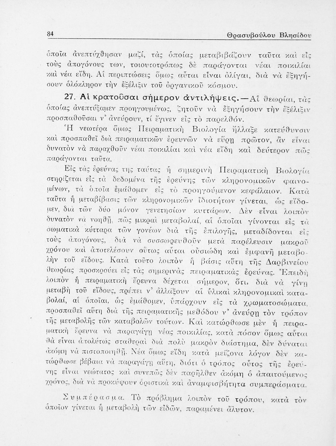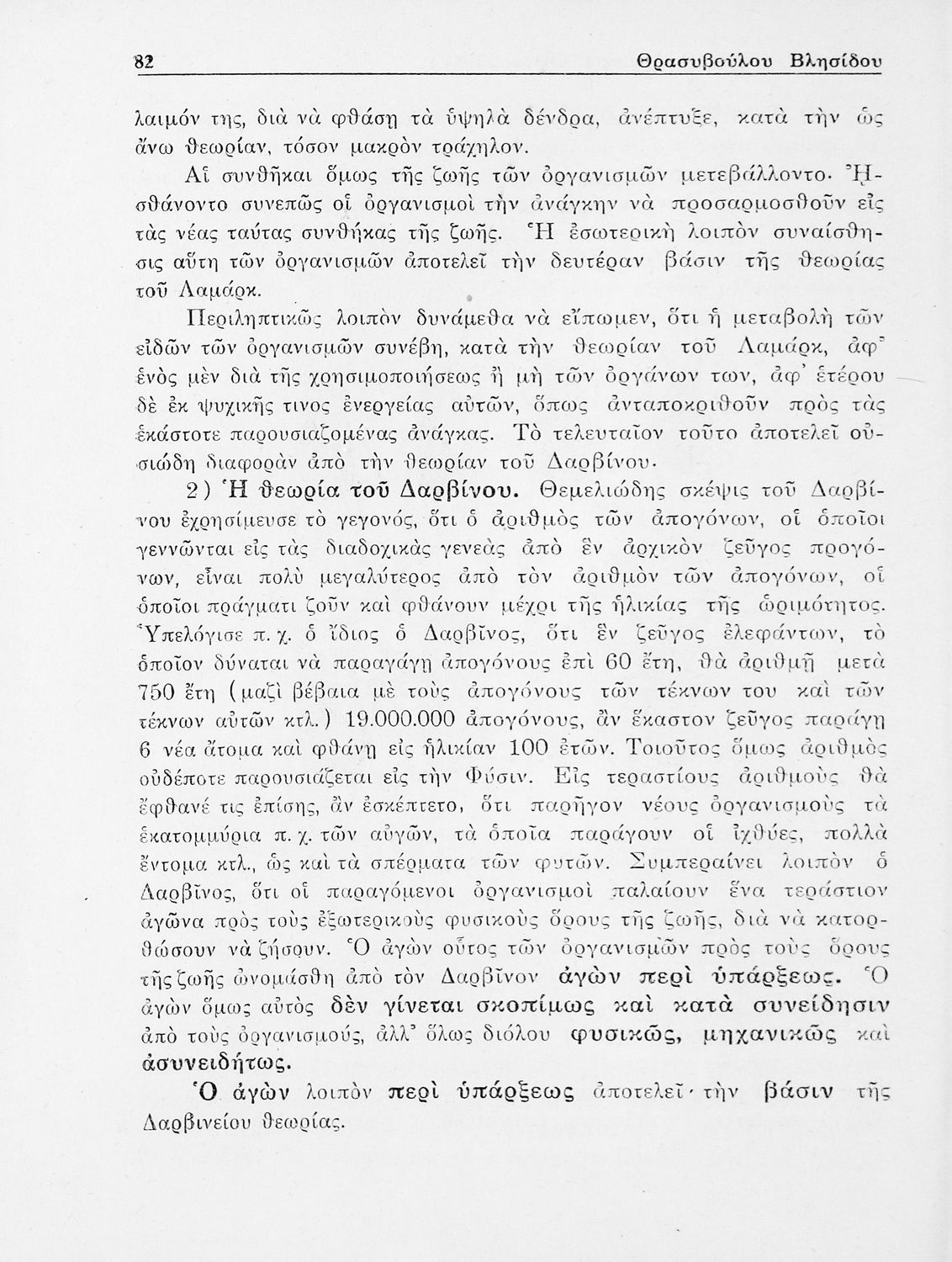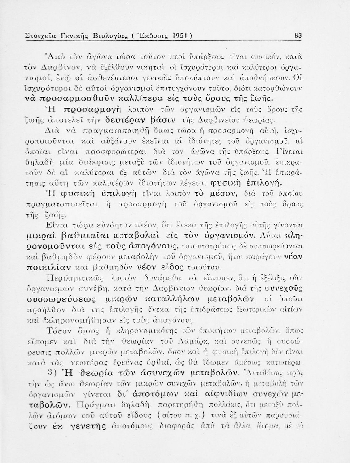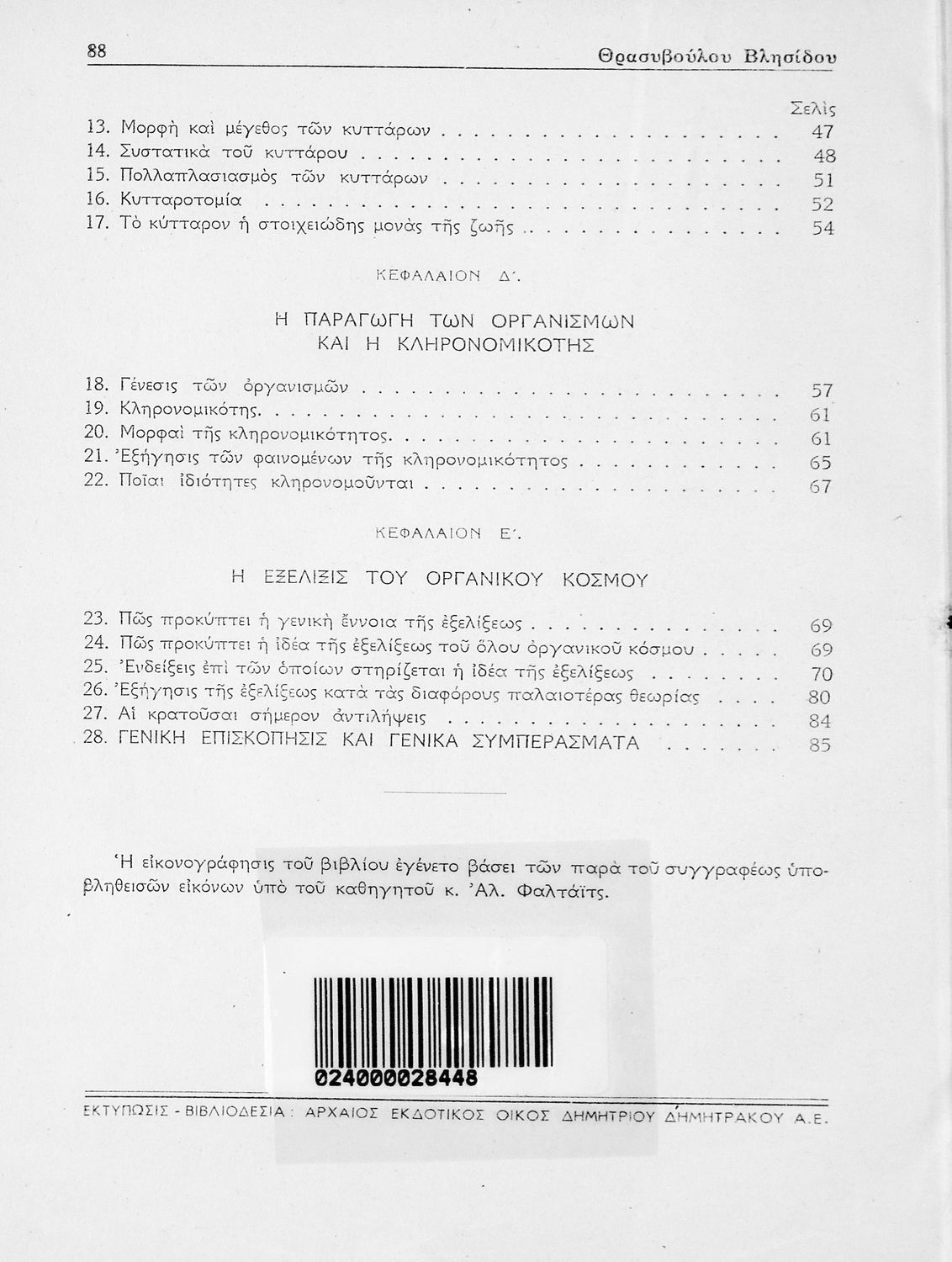 Σχολικό εγχειρίδιο Βιολογίας Δ΄ Γυμνασίου που εστιάζει στις συνθήκες γέννησης, μεταβολής και θανάτου των έμβιων οργανισμών. Ο συγγραφέας ήταν καθηγητής της γενικής Βιολογίας στο Πανεπιστήμιο Αθηνών.