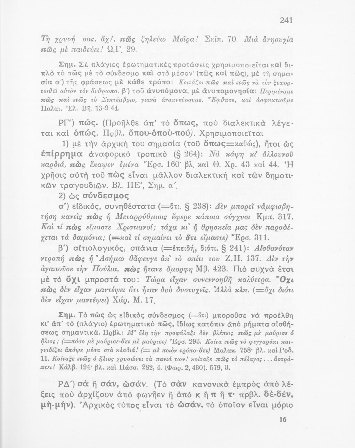 Σχολικό εγχειρίδιο Συντακτικού που γράφηκε από επιτροπή Καθηγητών που ορίστηκε από το Υπουργείο των Θρησκευμάτων και της Εθνικής Παιδείας. Περιλαμβάνει κανόνες και παραδείγματα του συντακτικού της Δημοτικής.