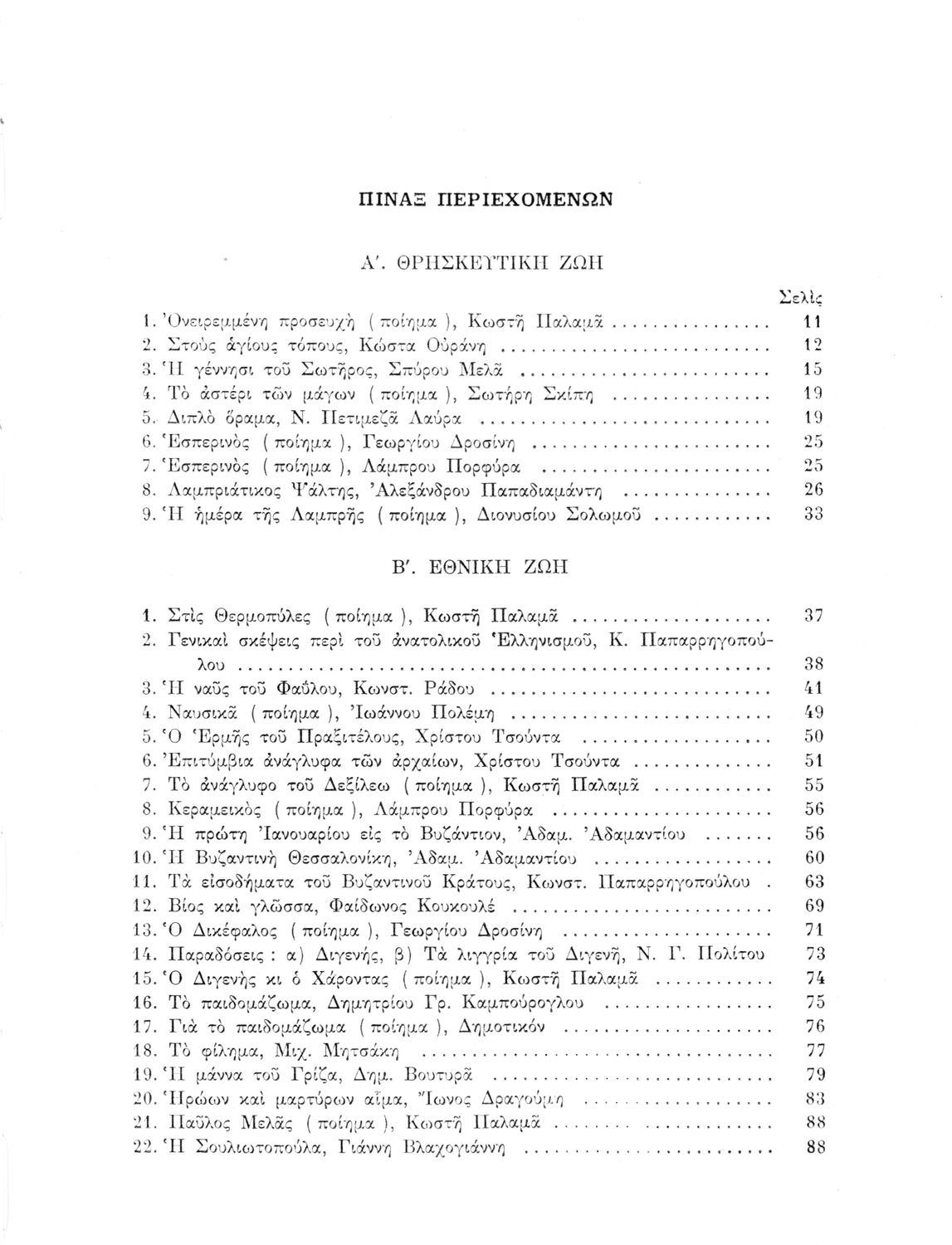 Σχολικό εγχειρίδιο Νέων Ελληνικών Δ΄ Γυμνασίου και Β΄ Αστικού Σχολείου που περιέχει πεζά και ποιήματα Ελλήνων συγγραφέων εμπνευσμένα από τη θρησκευτική και κοινωνική ζωή, την ελληνική μυθολογία, την αρχαία και