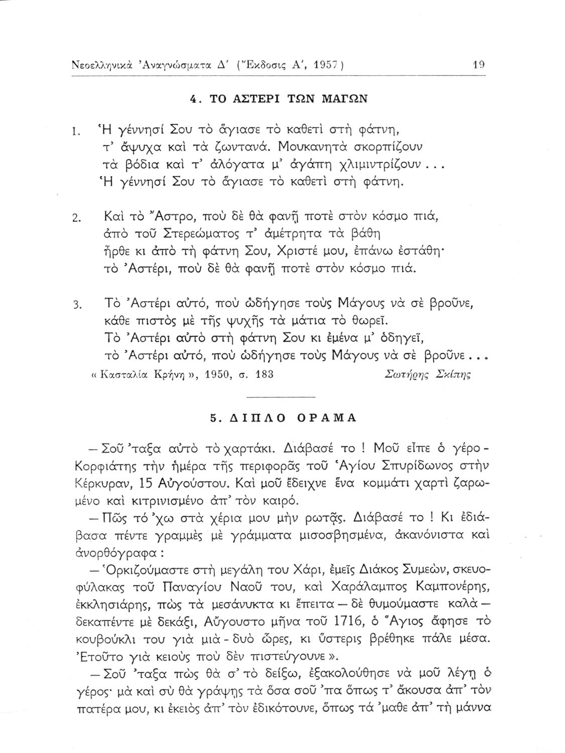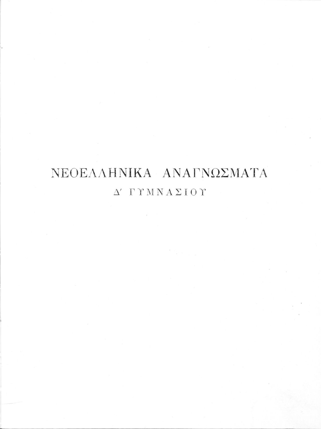 Σχολικό εγχειρίδιο Νέων Ελληνικών Δ΄ Γυμνασίου και Β΄ Αστικού Σχολείου που περιέχει πεζά και ποιήματα Ελλήνων συγγραφέων εμπνευσμένα από τη θρησκευτική και κοινωνική ζωή, την ελληνική μυθολογία, την αρχαία και