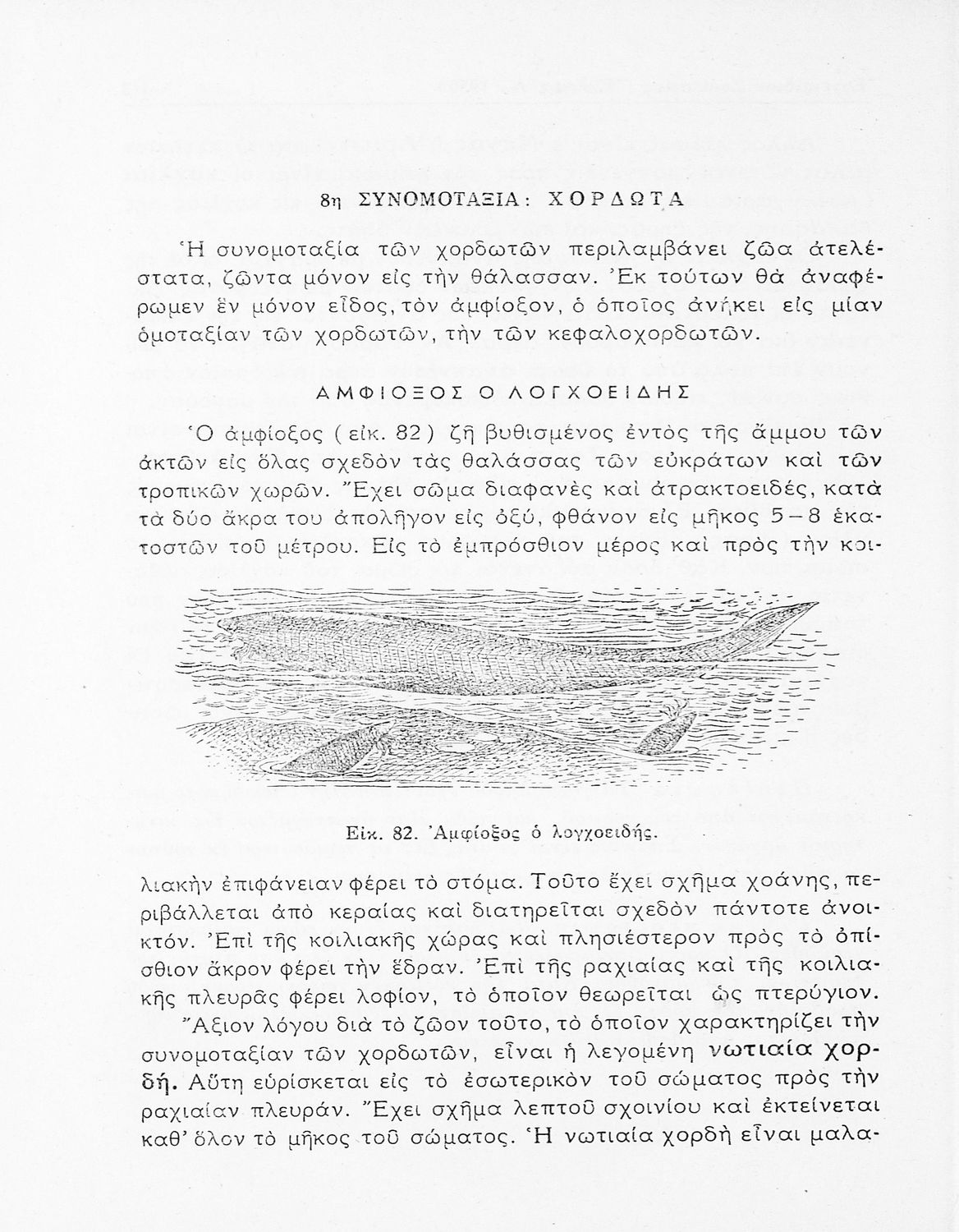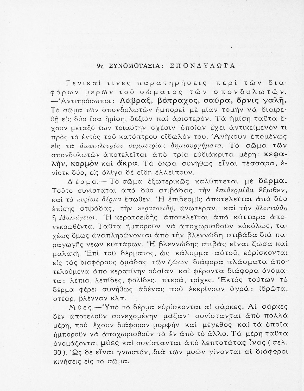 Σχολικό εγχειρίδιο Ζωολογίας για τα Γυμνάσια και τα Διδασκαλεία που εστιάζει στην ανθρώπινη φυσιολογία και παρουσιάζει τα διάφορα ζώα ανάλογα με την συνομοταξία στην οποία ανήκουν.