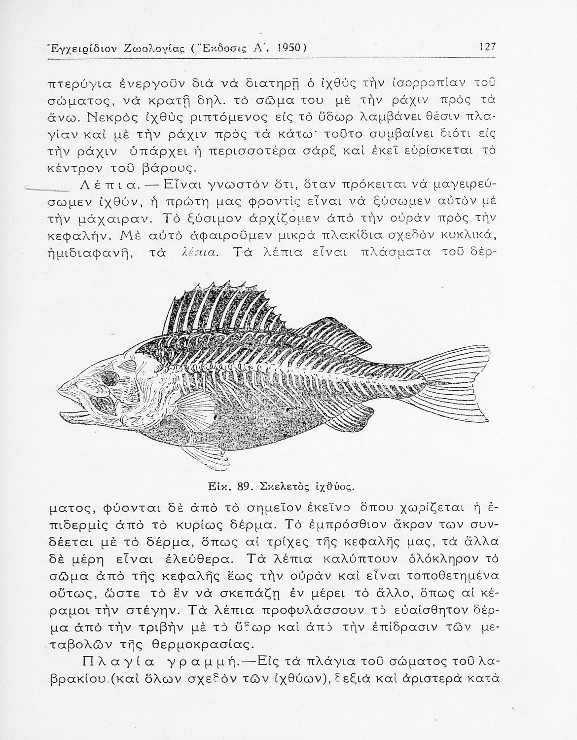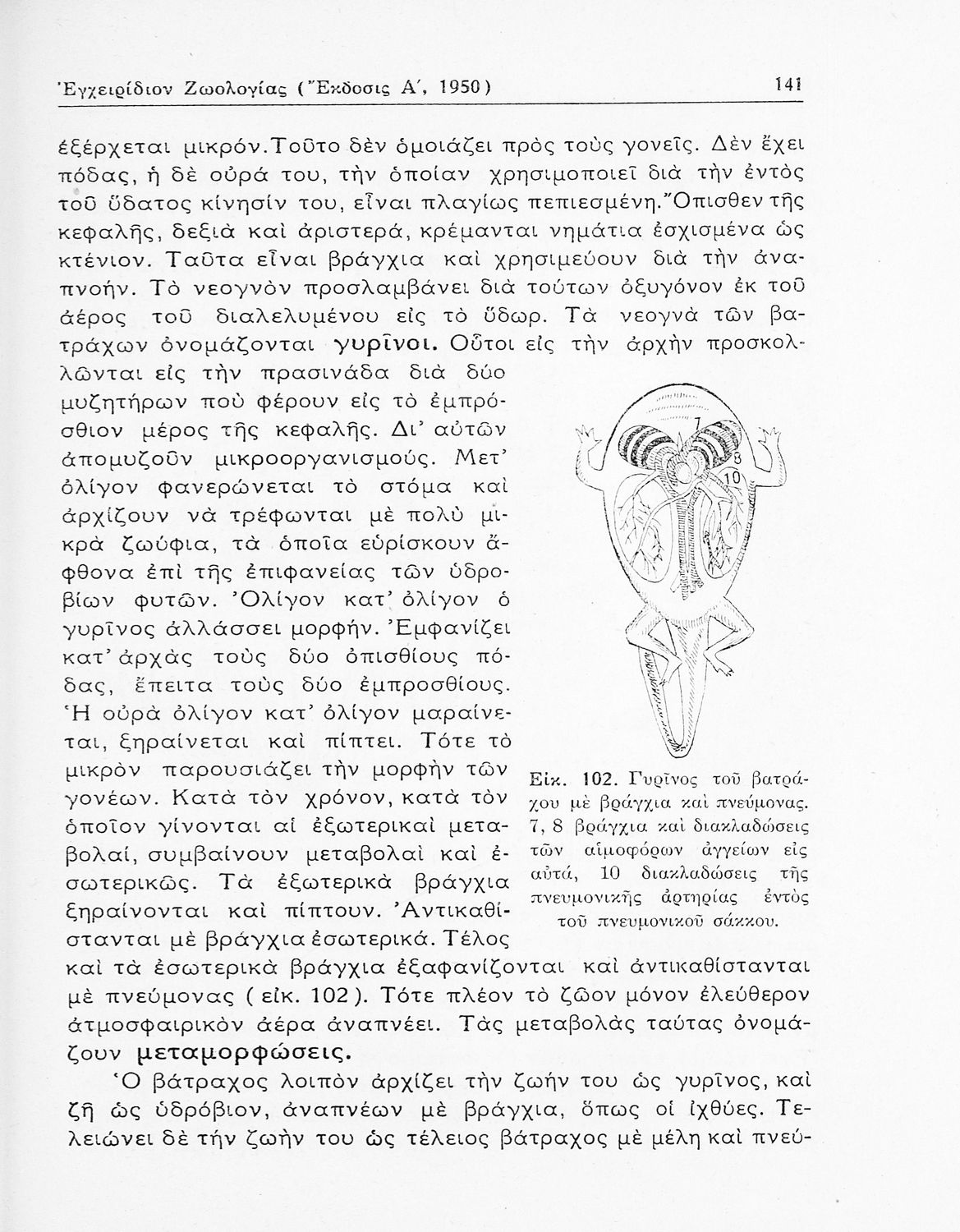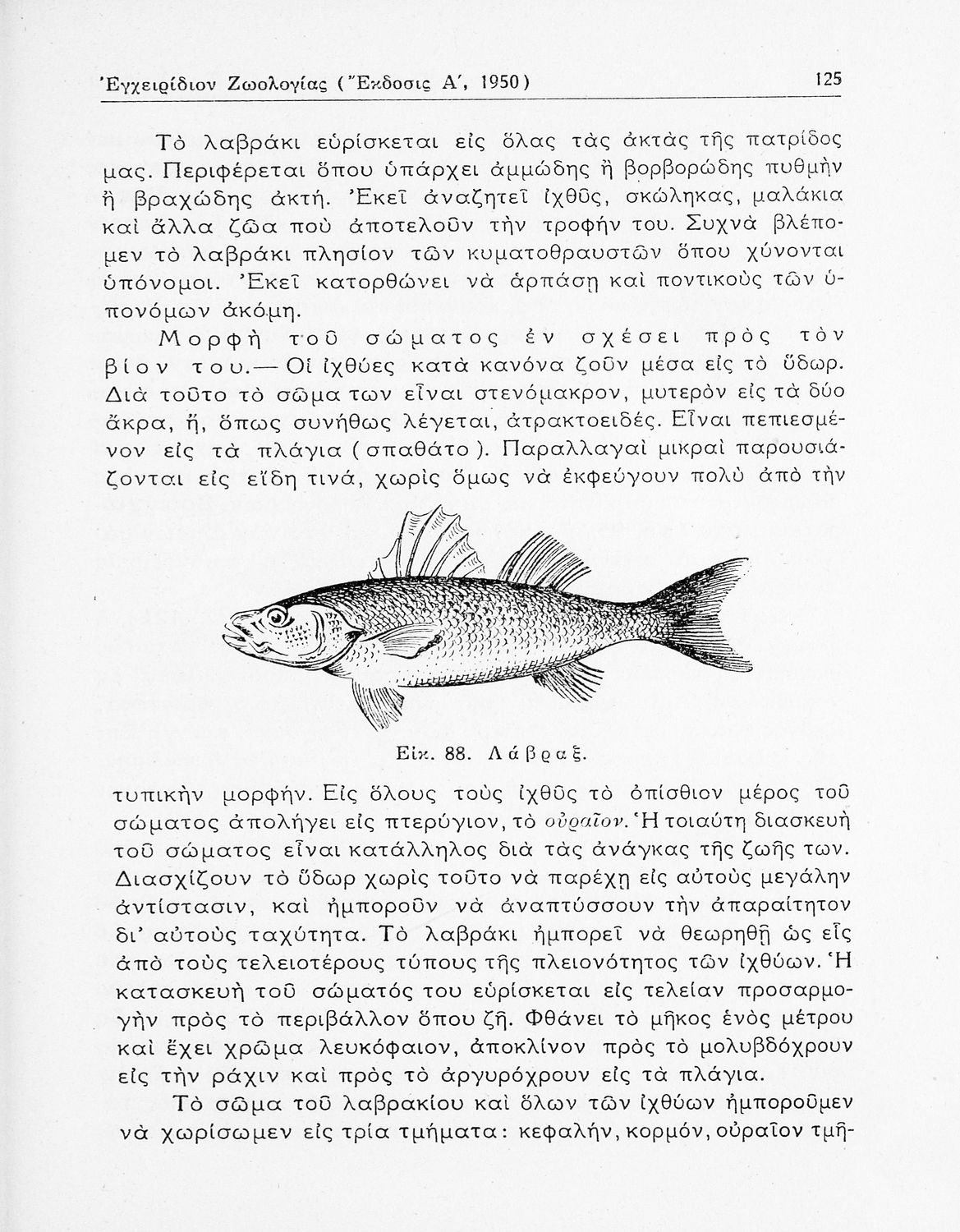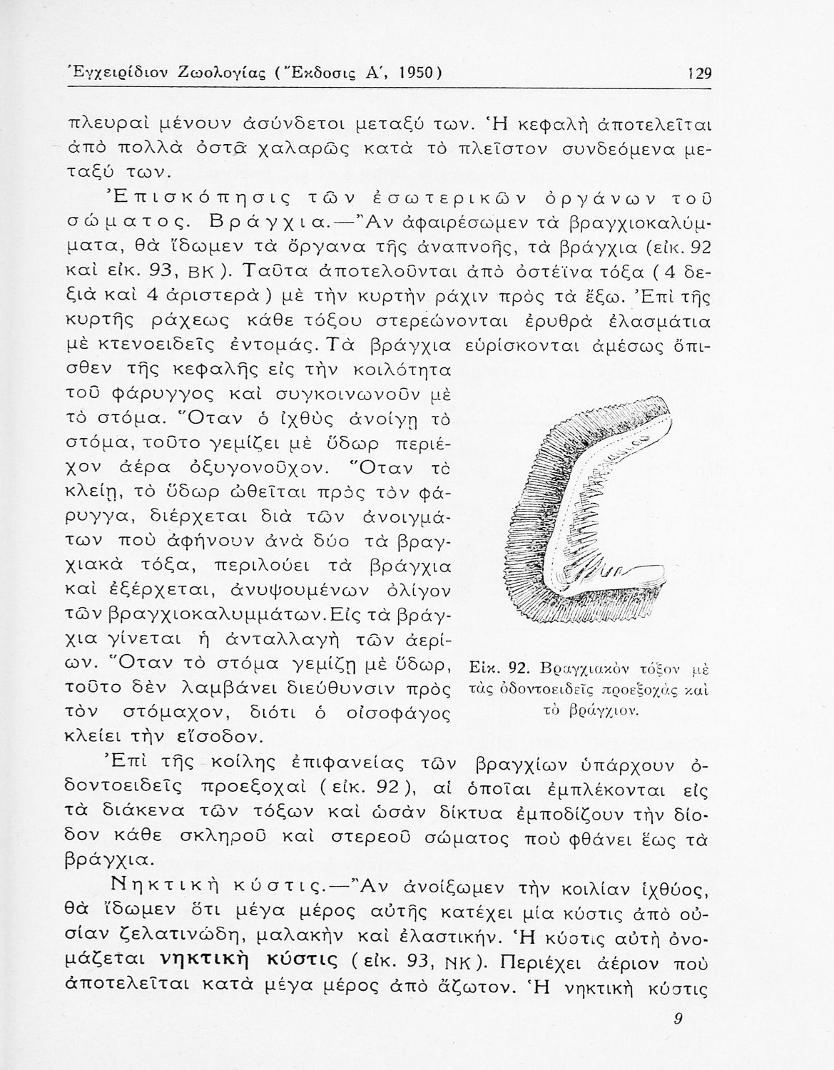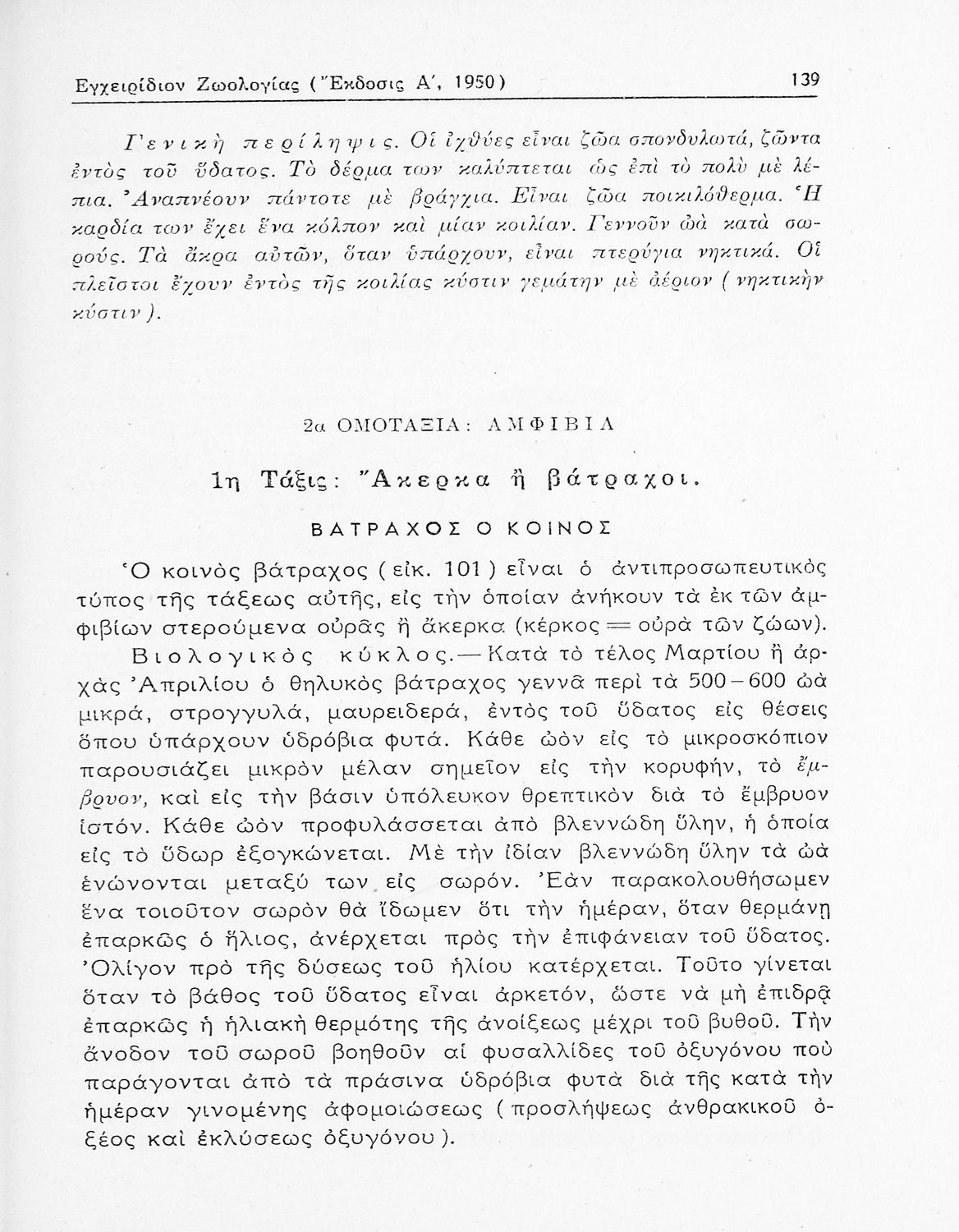 Σχολικό εγχειρίδιο Ζωολογίας που εστιάζει στη φυσιολογία και ανατομία και παρουσιάζει τα διάφορα ζώα ανάλογα με την συνομοταξία στην οποία ανήκουν.
