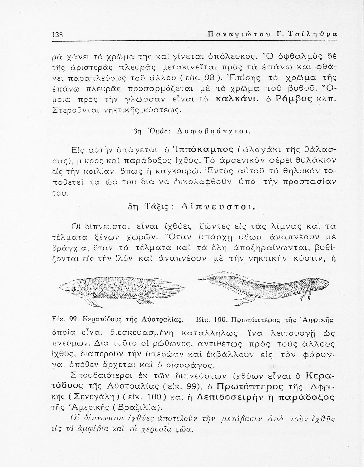 Κωδικός αναγνώρισης: 01-18998 Τίτλος: Εγχειρίδιον ζωολογίας Συγγραφέας: Π. Γ. Τσιλήθρας Εικονογράφος: Α. Τάσσος Μέγεθος και υπόστρωμα: Σχολικό εγχειρίδιο, 20εκ., σκληρό εξώφυλλο, 268 σελίδες. Σκίτσα (ασπρόμαυρα και έγχρωμα). |