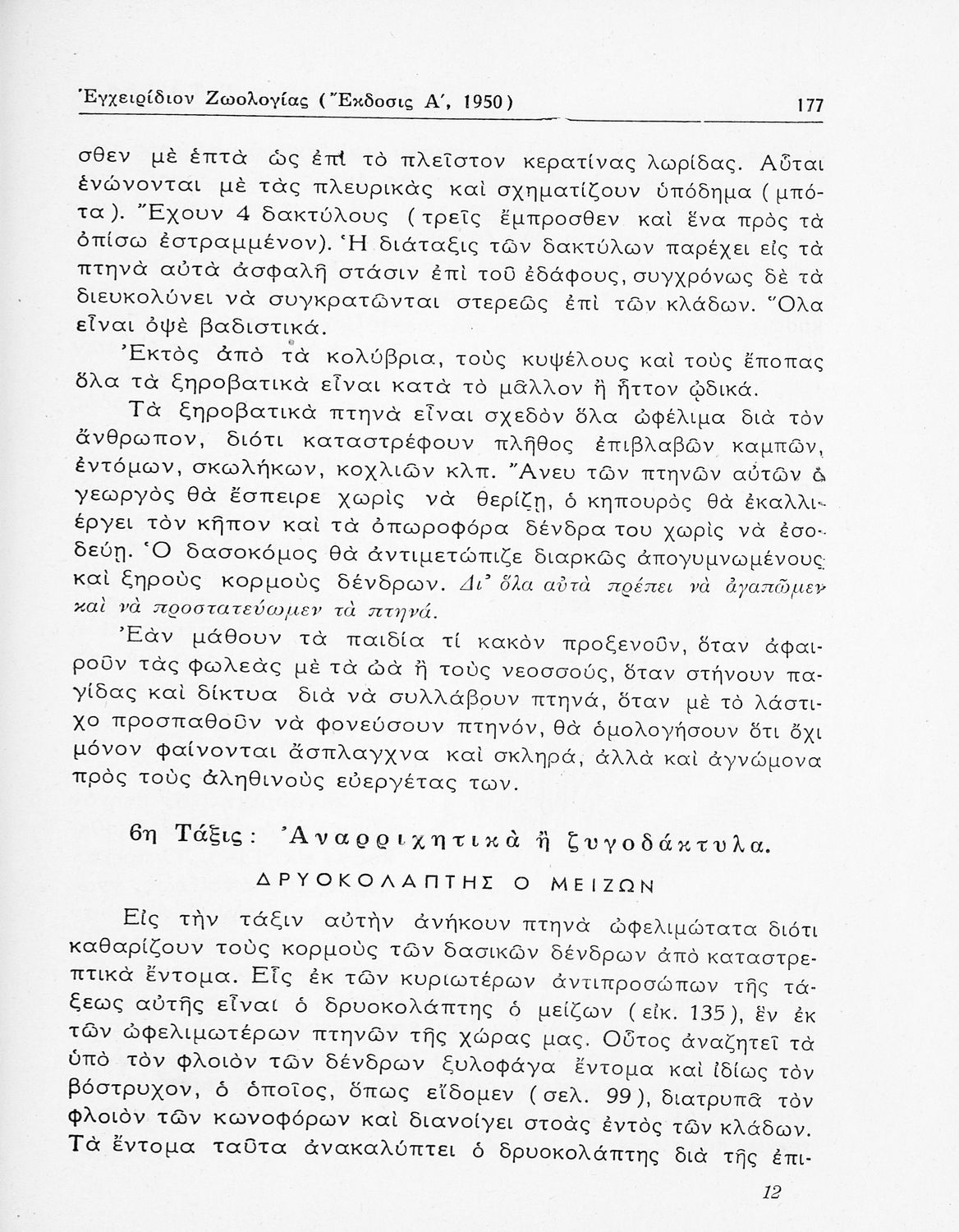 Σχολικό εγχειρίδιο Ζωολογίας που εστιάζει στη φυσιολογία και ανατομία και παρουσιάζει τα διάφορα ζώα ανάλογα με την συνομοταξία στην οποία ανήκουν.