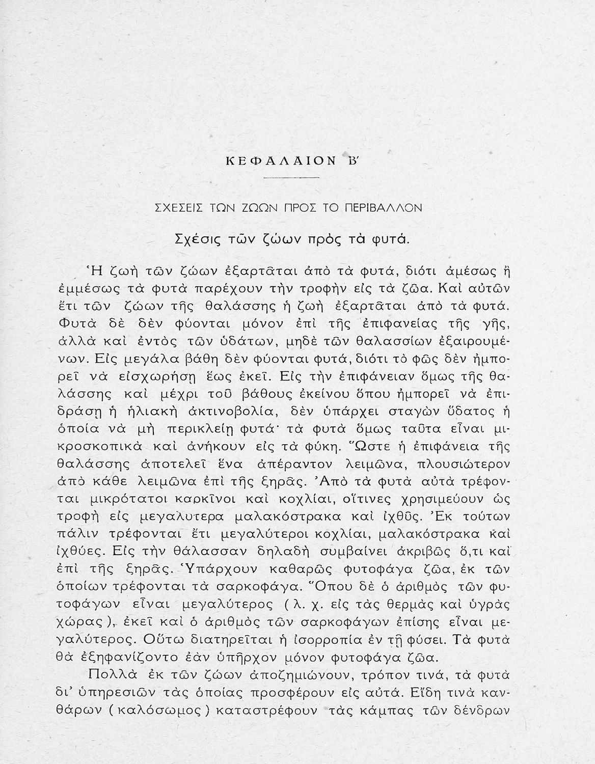 Σχολικό εγχειρίδιο Ζωολογίας για τα Γυμνάσια και τα Διδασκαλεία που εστιάζει στην ανθρώπινη φυσιολογία και παρουσιάζει τα διάφορα ζώα ανάλογα με την συνομοταξία στην οποία ανήκουν.