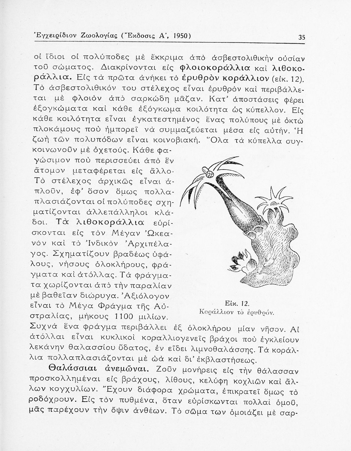Σχολικό εγχειρίδιο Ζωολογίας για τα Γυμνάσια και τα Διδασκαλεία που εστιάζει στην ανθρώπινη φυσιολογία και παρουσιάζει τα διάφορα ζώα ανάλογα με την συνομοταξία στην οποία ανήκουν.