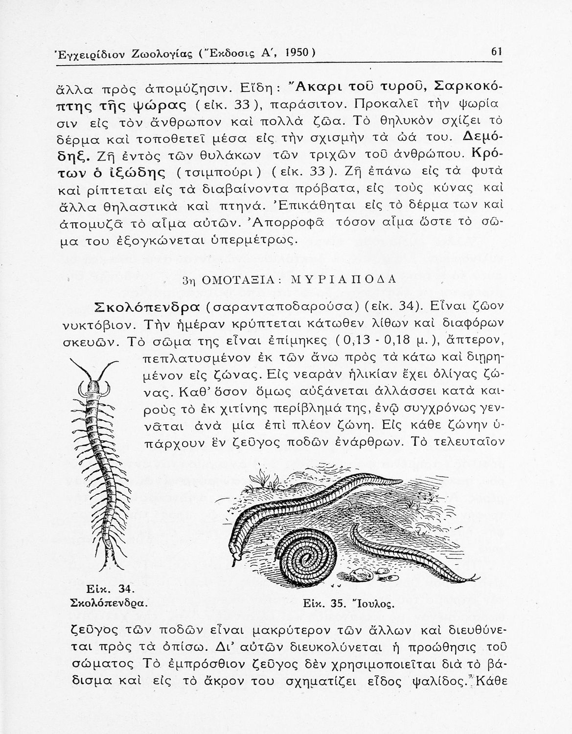 Σχολικό εγχειρίδιο Ζωολογίας που εστιάζει στη φυσιολογία και ανατομία και παρουσιάζει τα διάφορα ζώα ανάλογα με την συνομοταξία στην οποία ανήκουν.