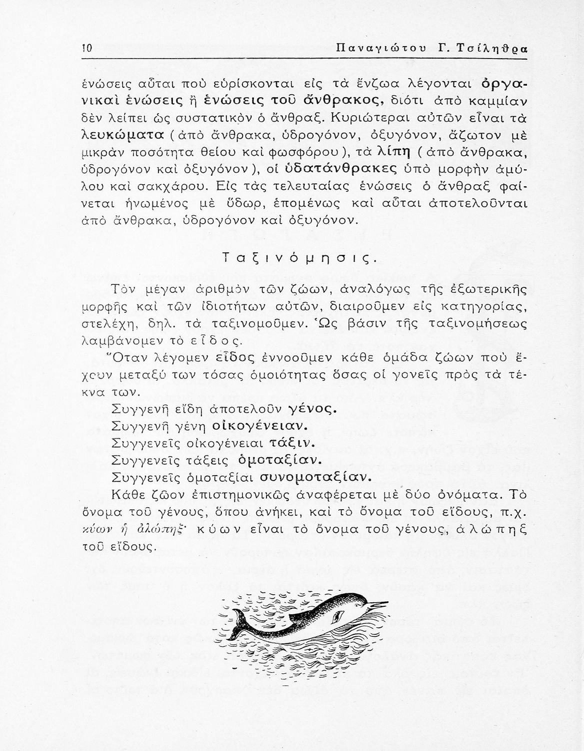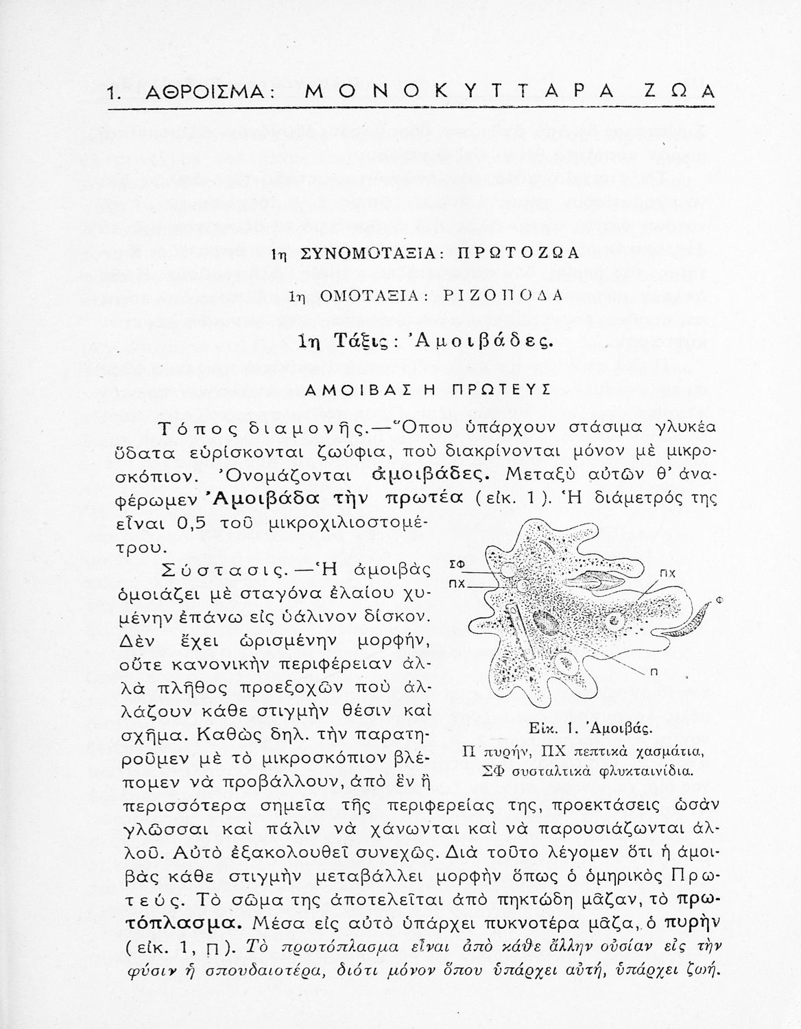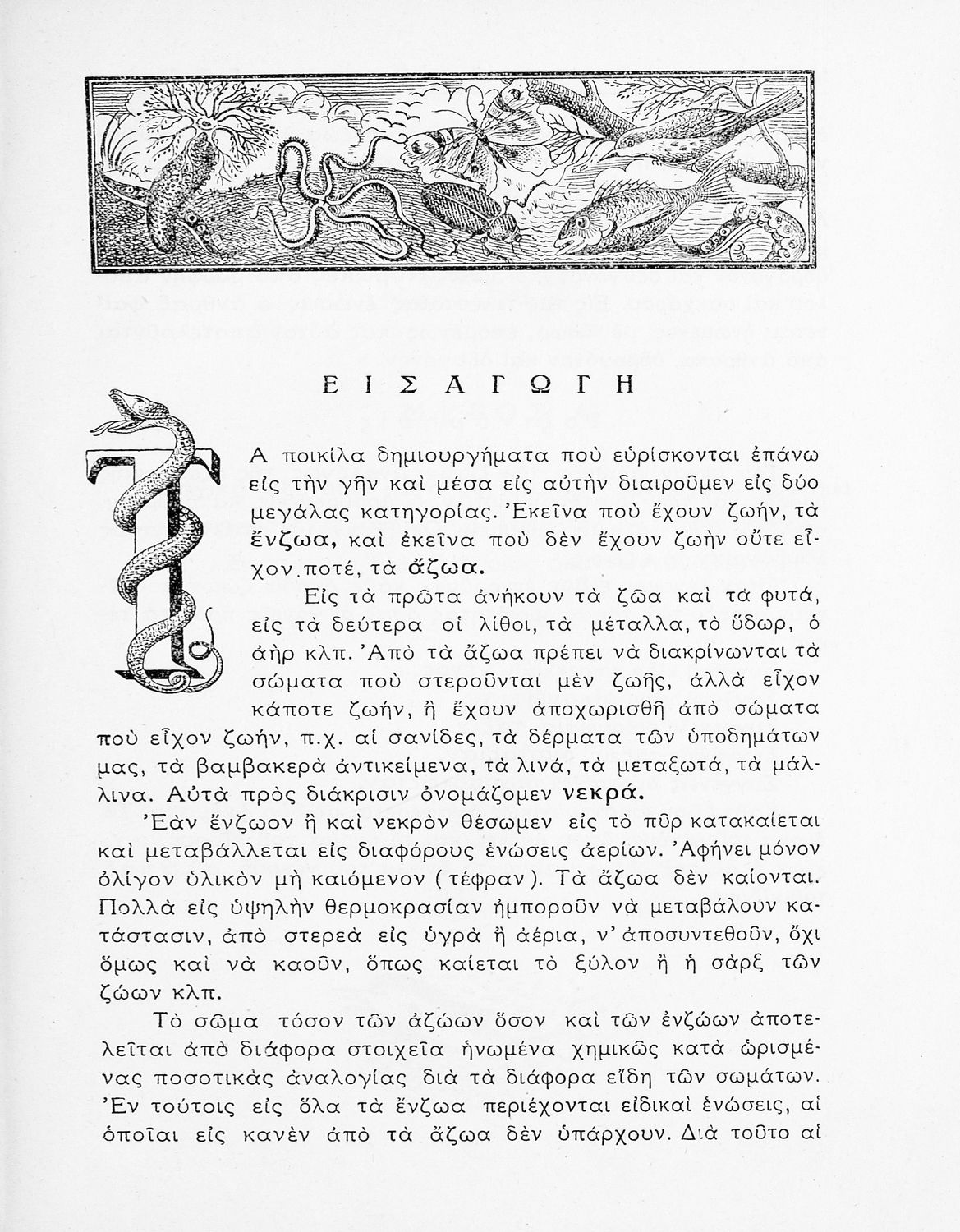 Σχολικό εγχειρίδιο Ζωολογίας για τα Γυμνάσια και τα Διδασκαλεία που εστιάζει στην ανθρώπινη φυσιολογία και παρουσιάζει τα διάφορα ζώα ανάλογα με την συνομοταξία στην οποία ανήκουν.
