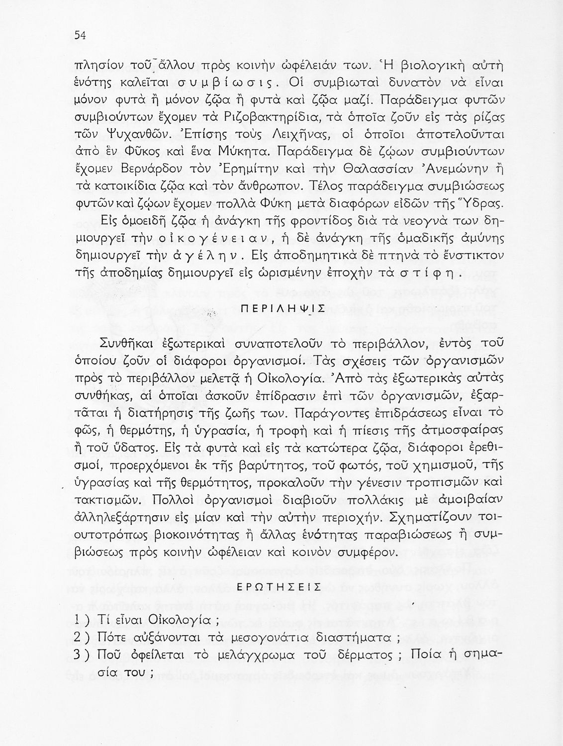 Σχολικό εγχειρίδιο Βιολογίας Δ΄ Γυμνασίου που εστιάζει στις συνθήκες γέννησης, μεταβολής και θανάτου των έμβιων οργανισμών. Ο συγγραφέας ήταν καθηγητής της γενικής Βιολογίας στο Πανεπιστήμιο Αθηνών.