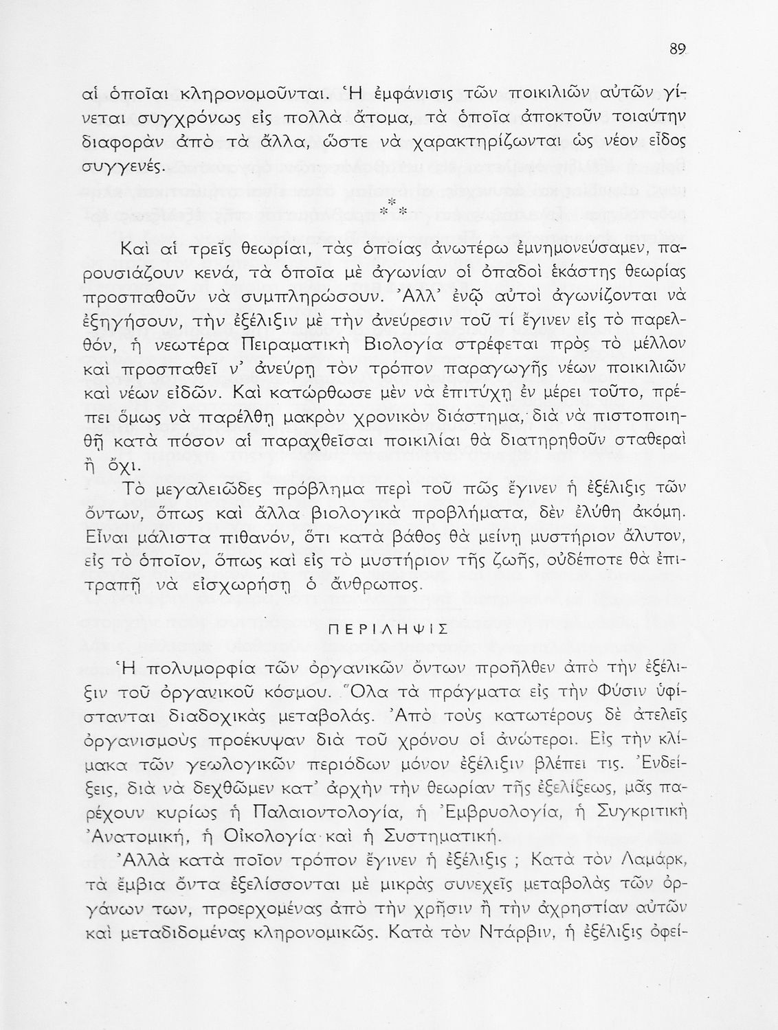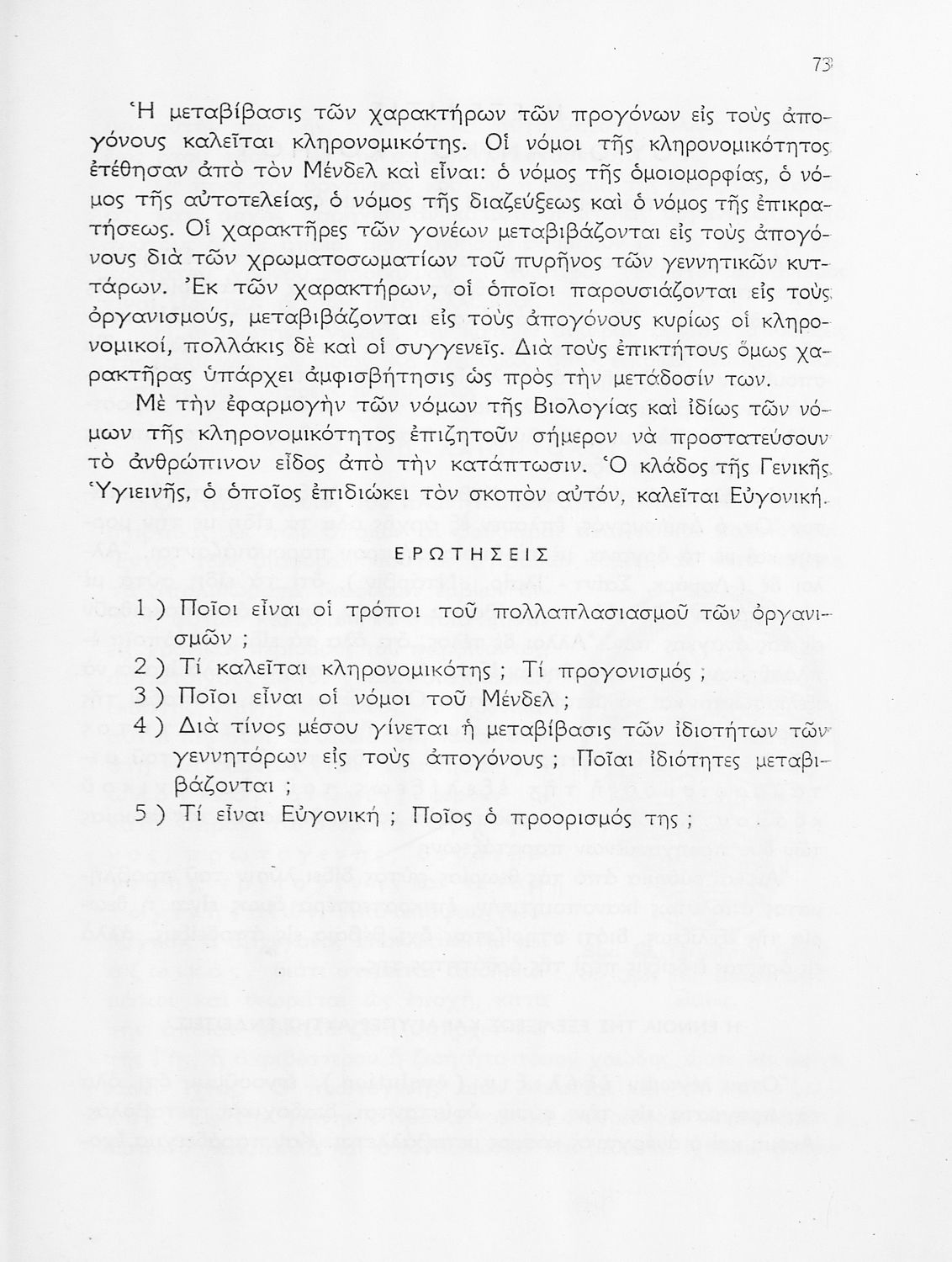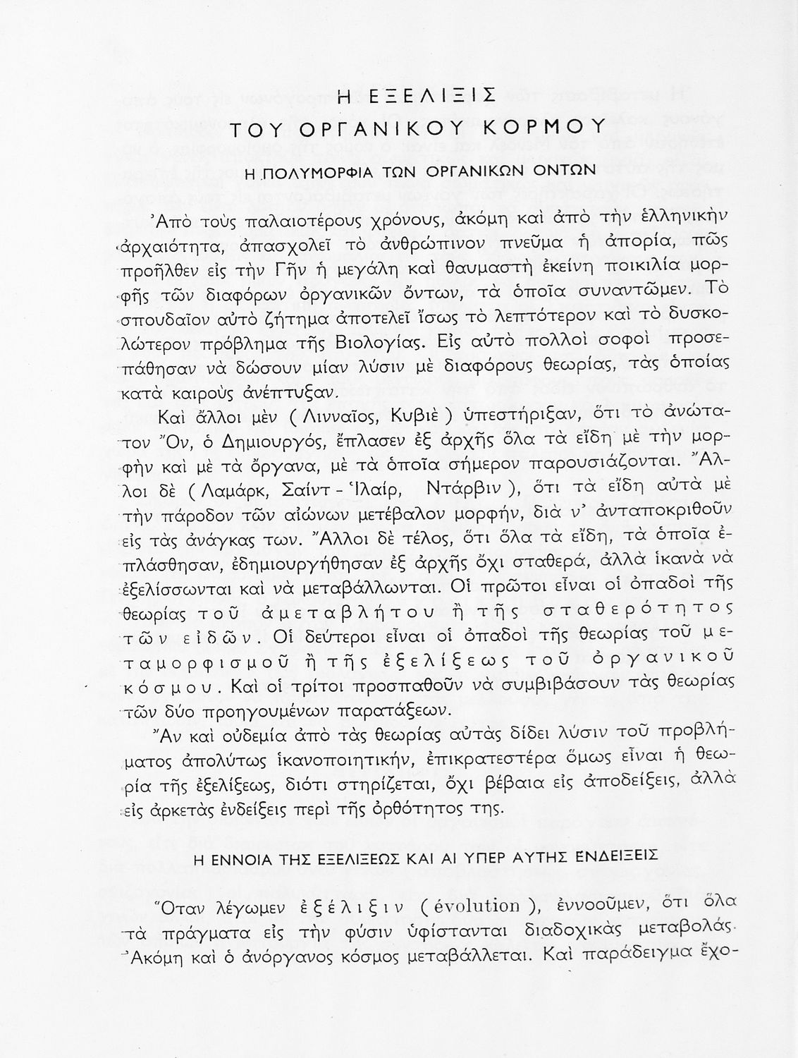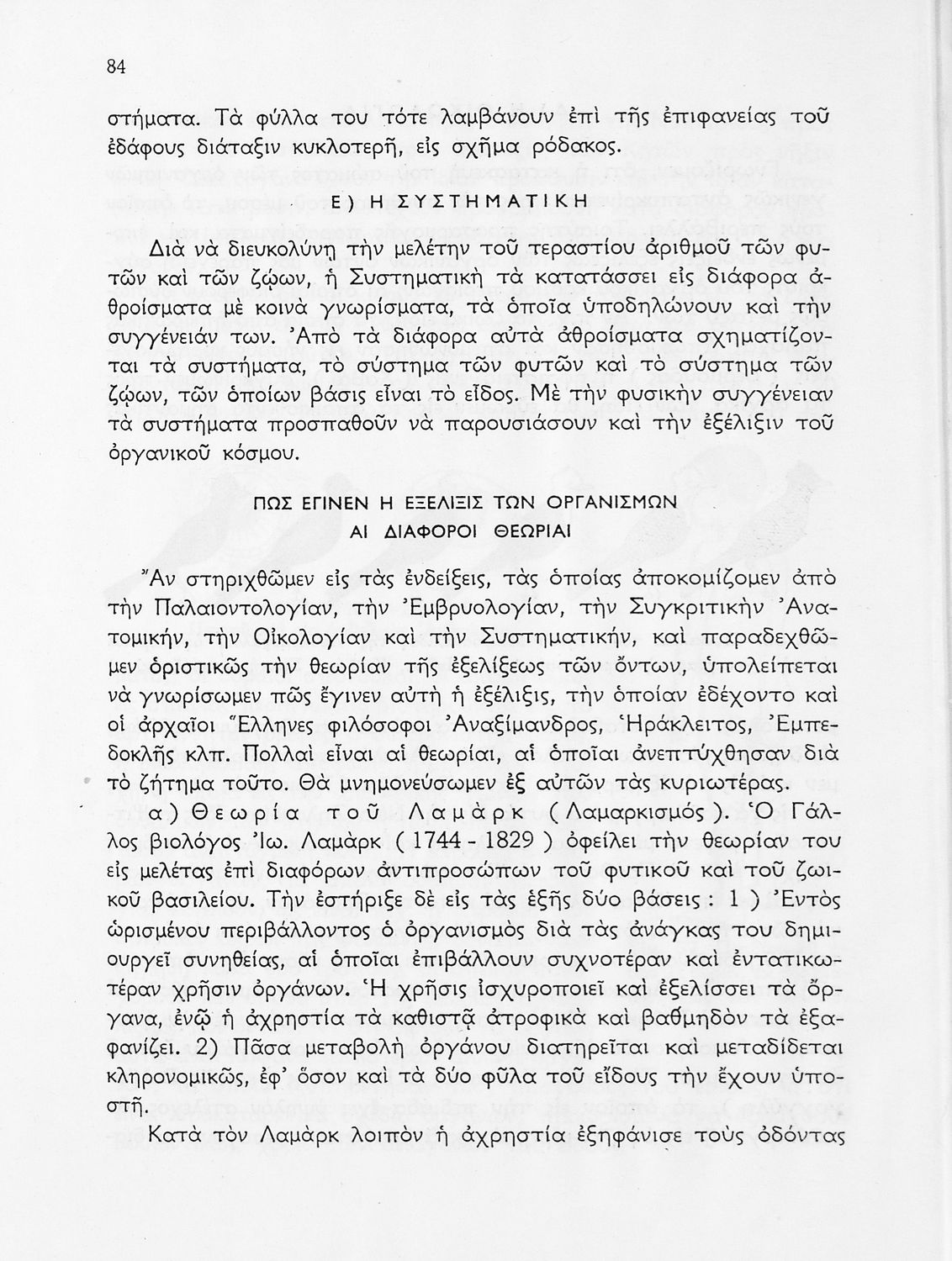 Σχολικό εγχειρίδιο Βιολογίας Δ΄ Γυμνασίου που εστιάζει στις συνθήκες γέννησης, μεταβολής και θανάτου των έμβιων οργανισμών. Ο συγγραφέας ήταν καθηγητής της γενικής Βιολογίας στο Πανεπιστήμιο Αθηνών.