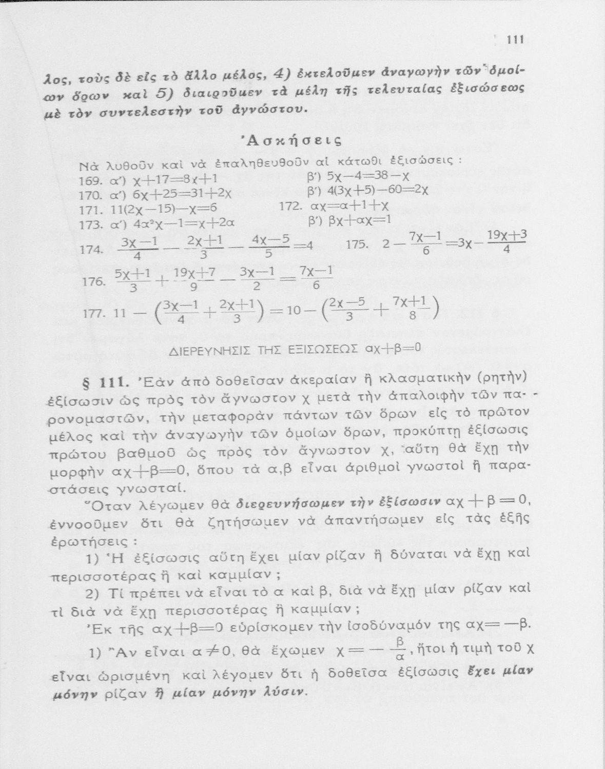 Άλγεβρα δια τας ανωτέρας τάξεις των Γυμνασίων