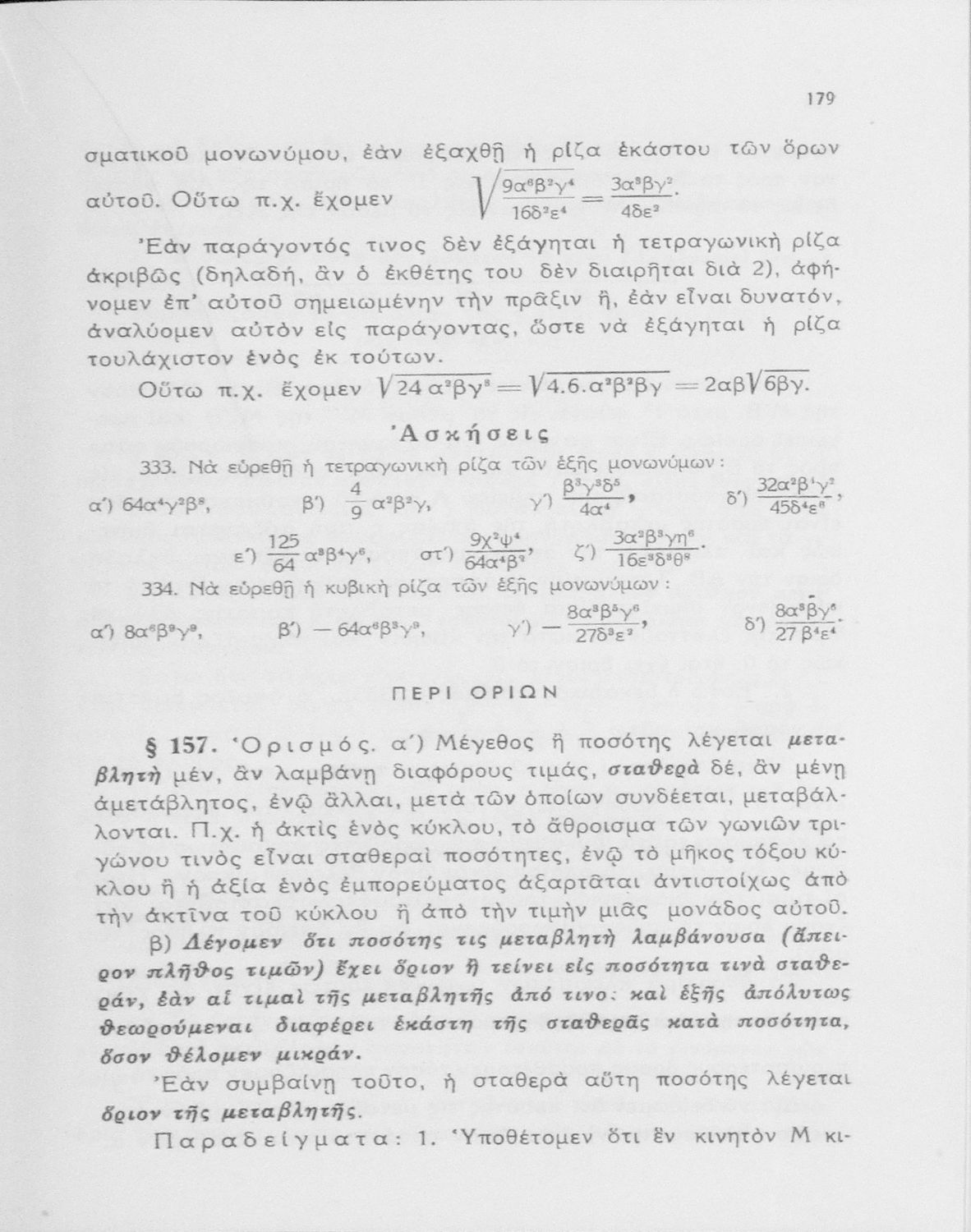 Άλγεβρα δια τας ανωτέρας τάξεις των Γυμνασίων