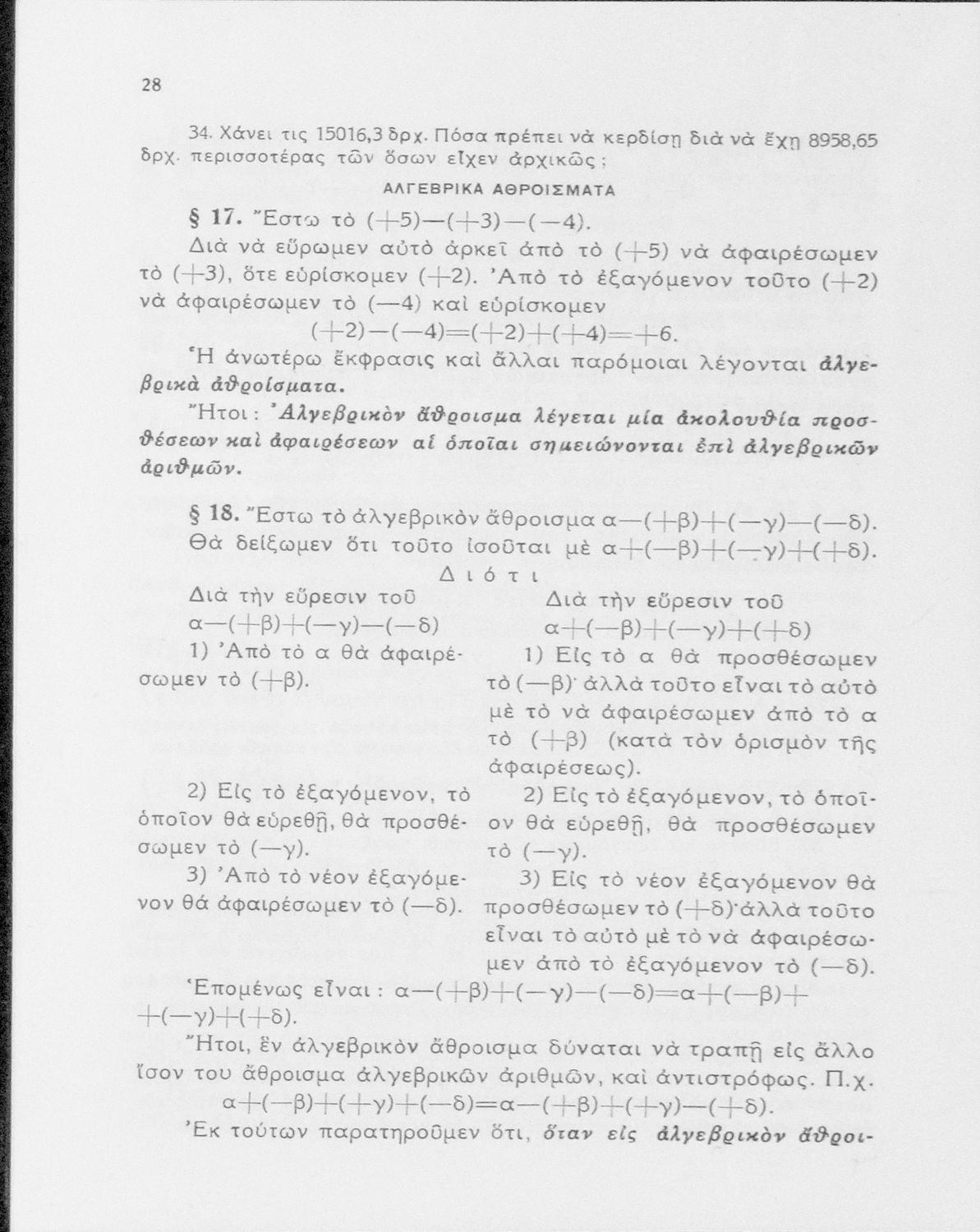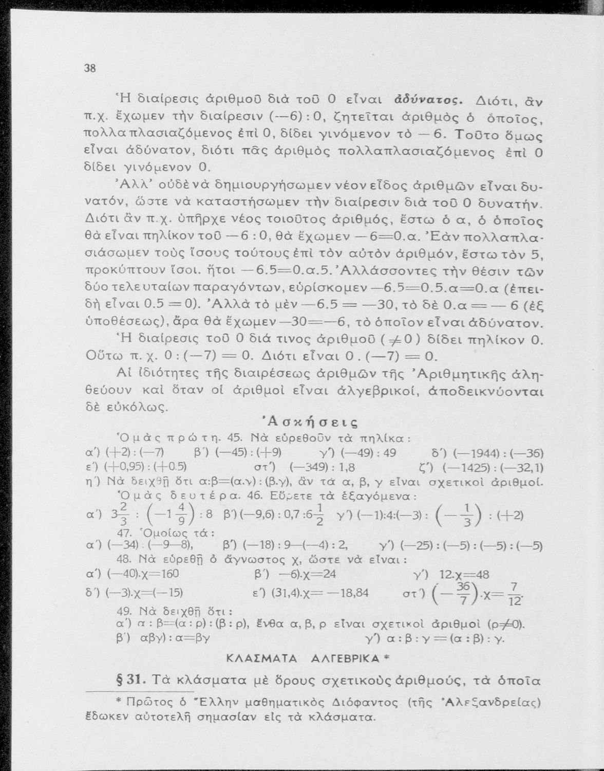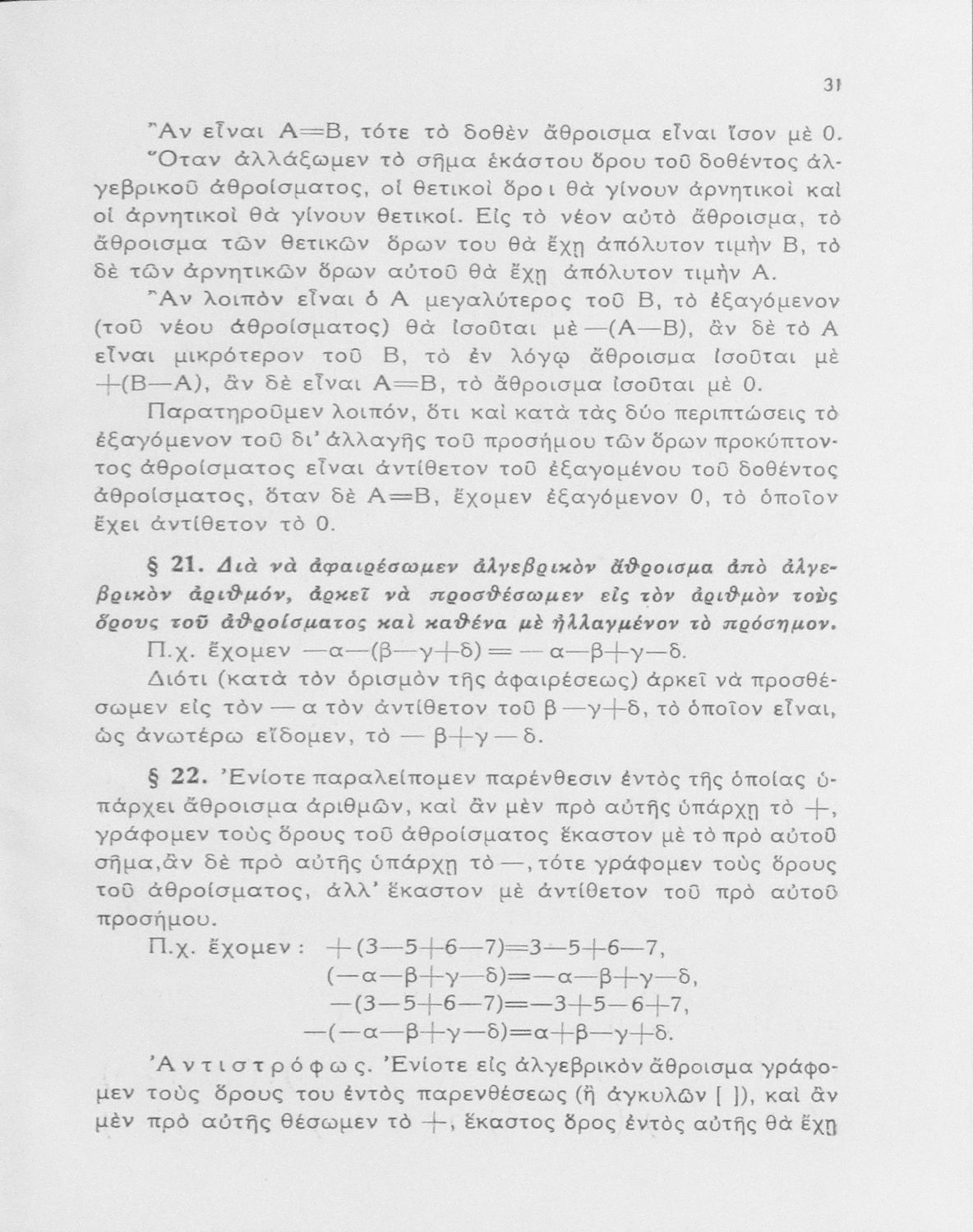 Άλγεβρα δια τας ανωτέρας τάξεις των Γυμνασίων