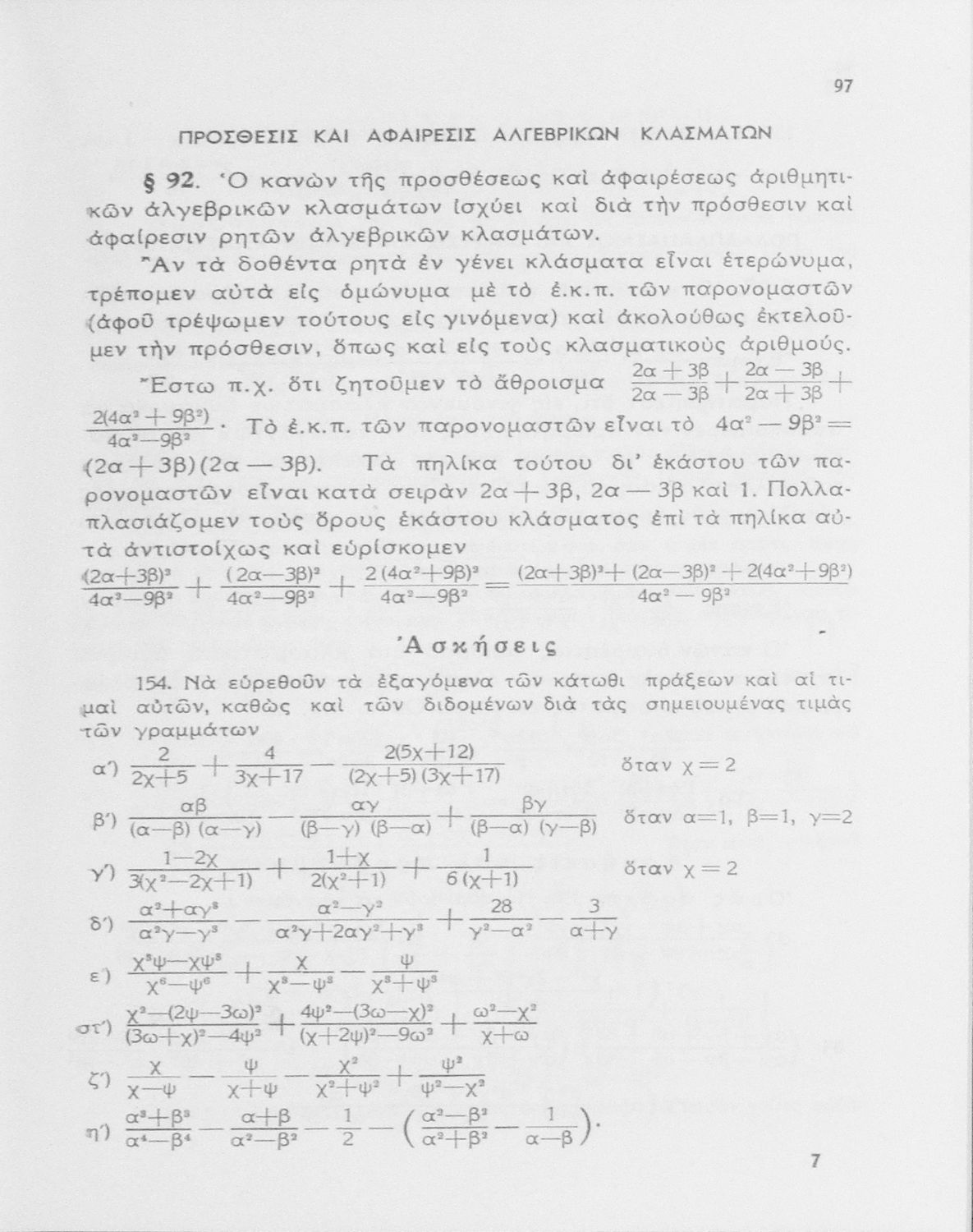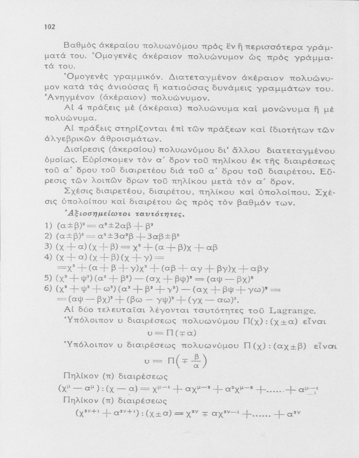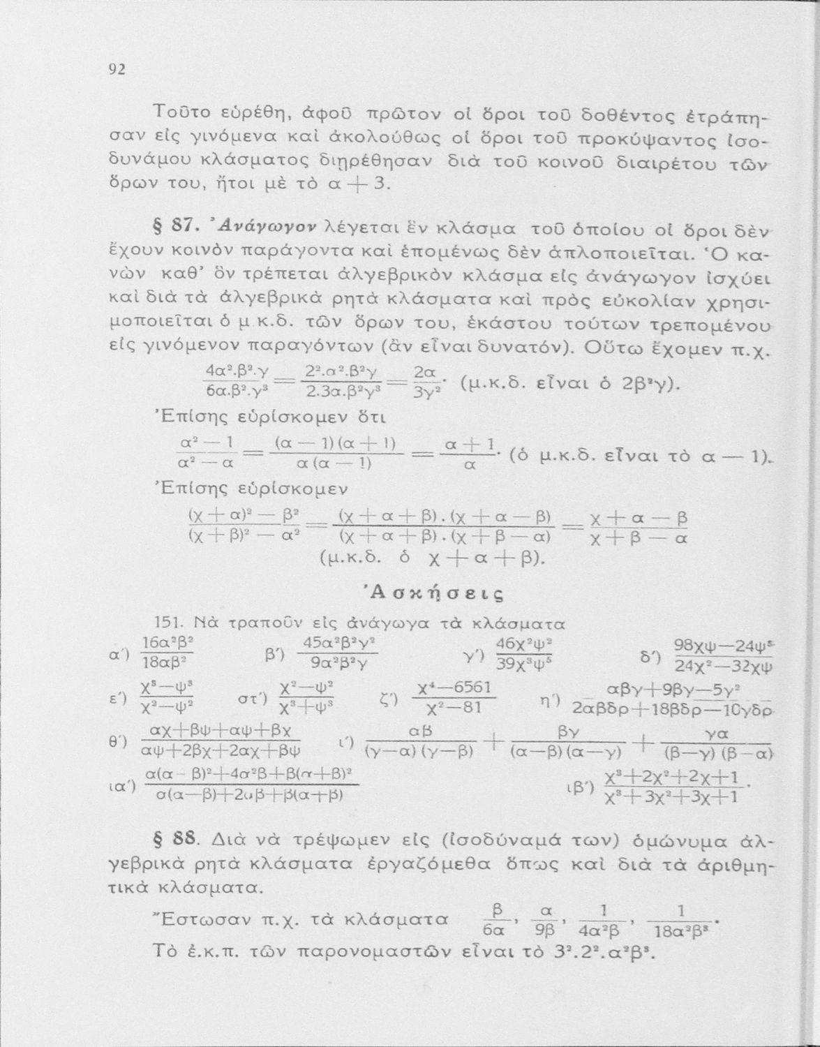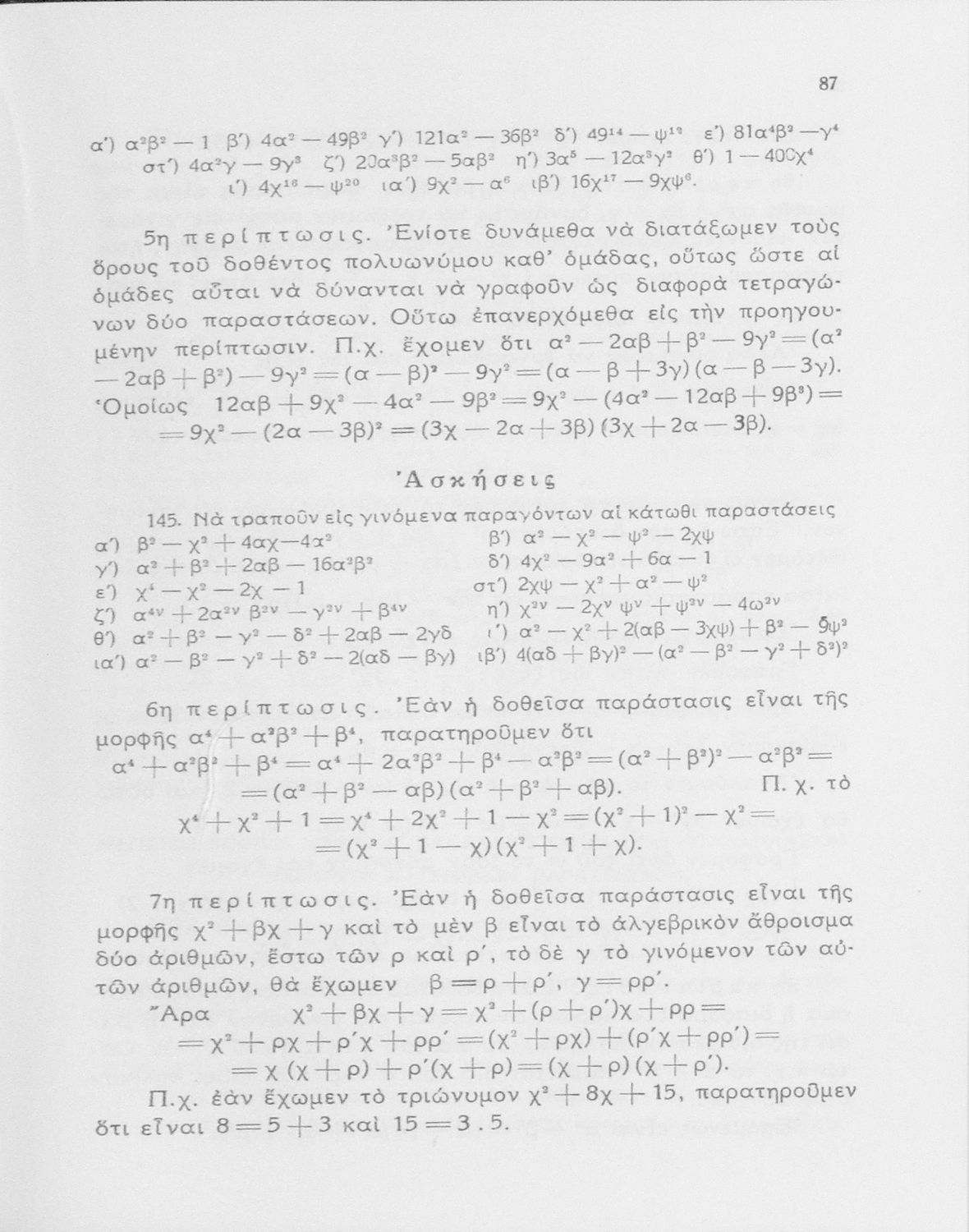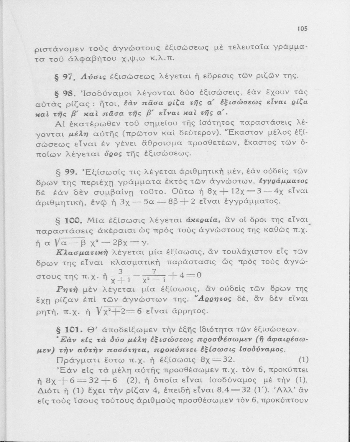 Άλγεβρα δια τας ανωτέρας τάξεις των Γυμνασίων