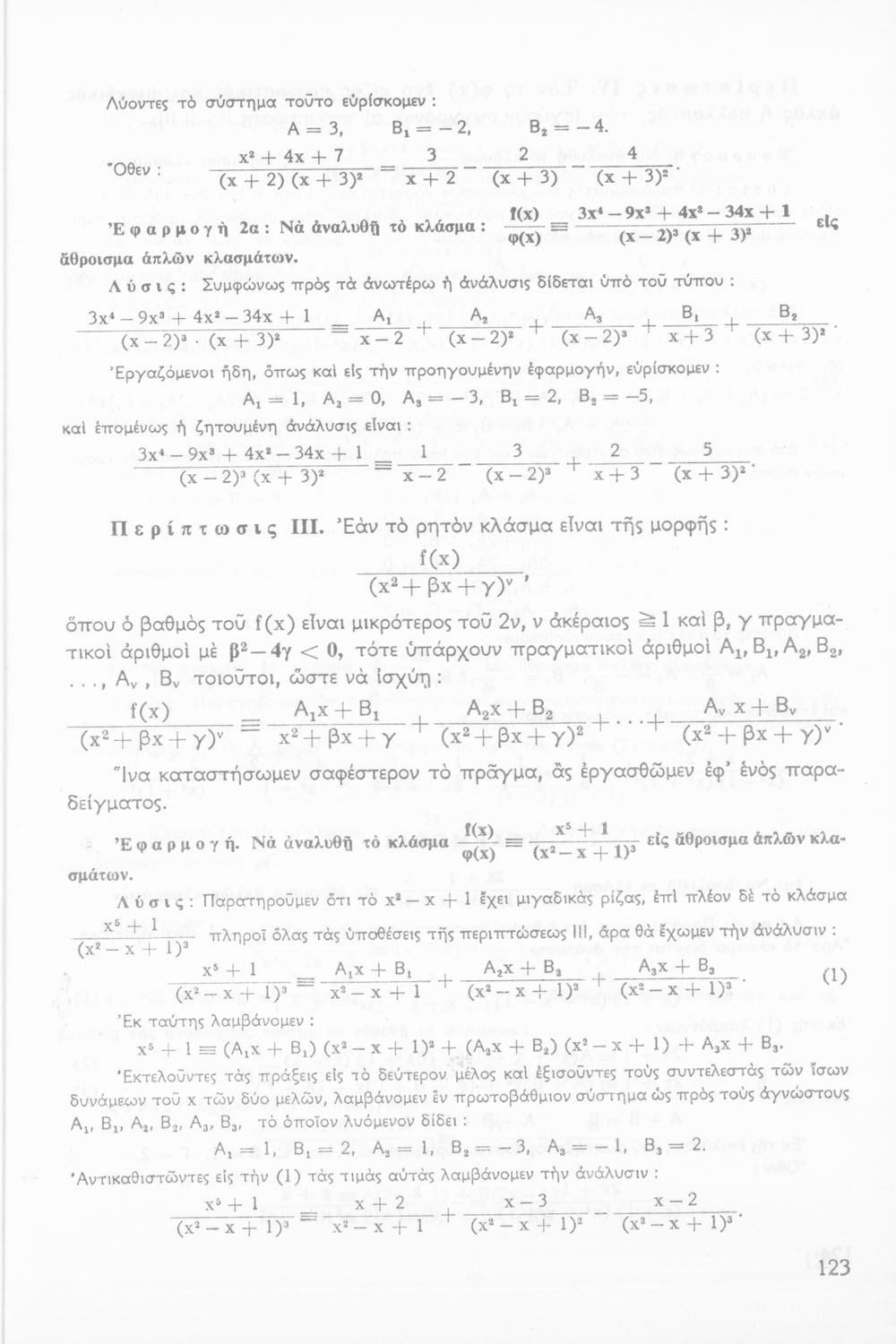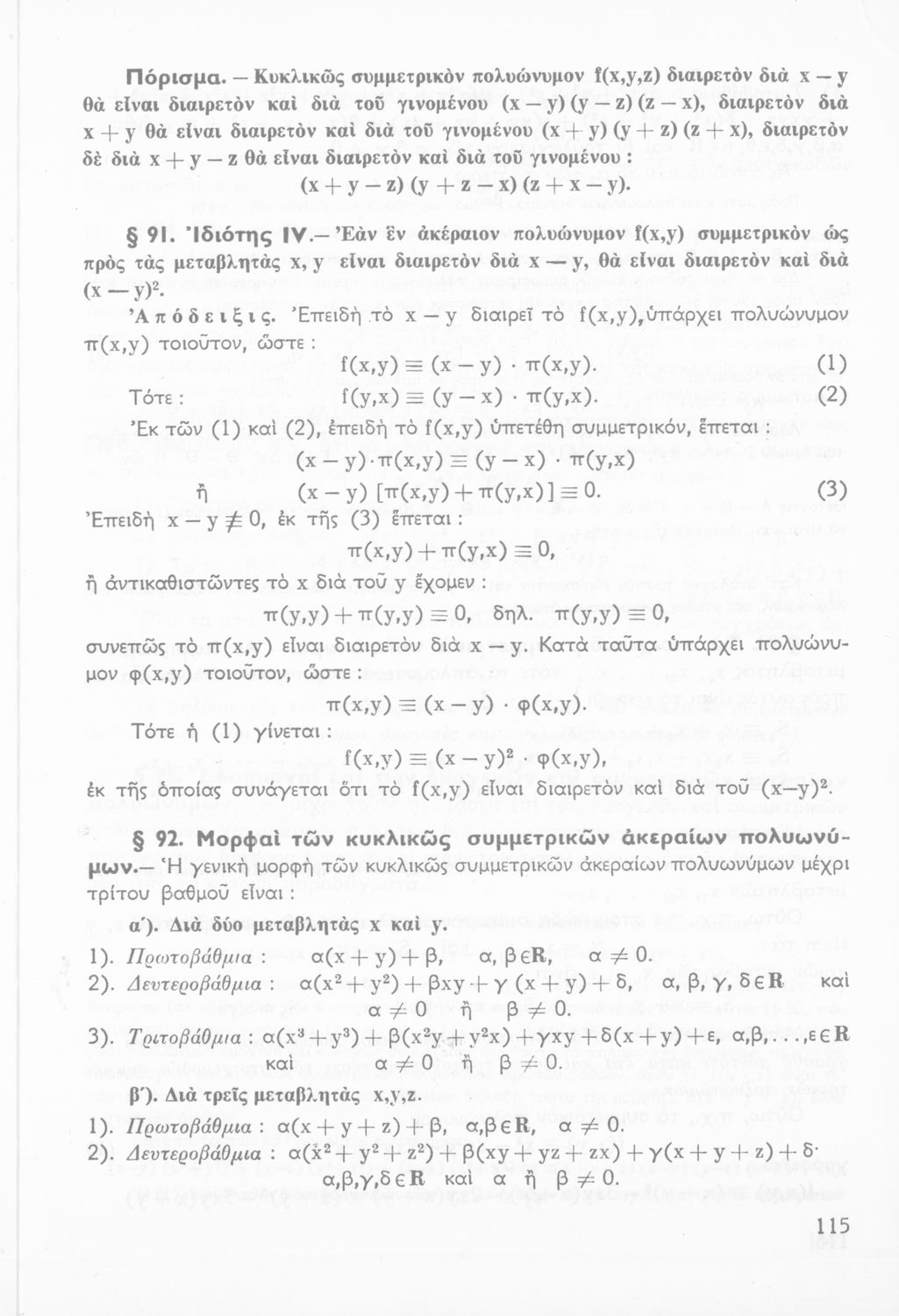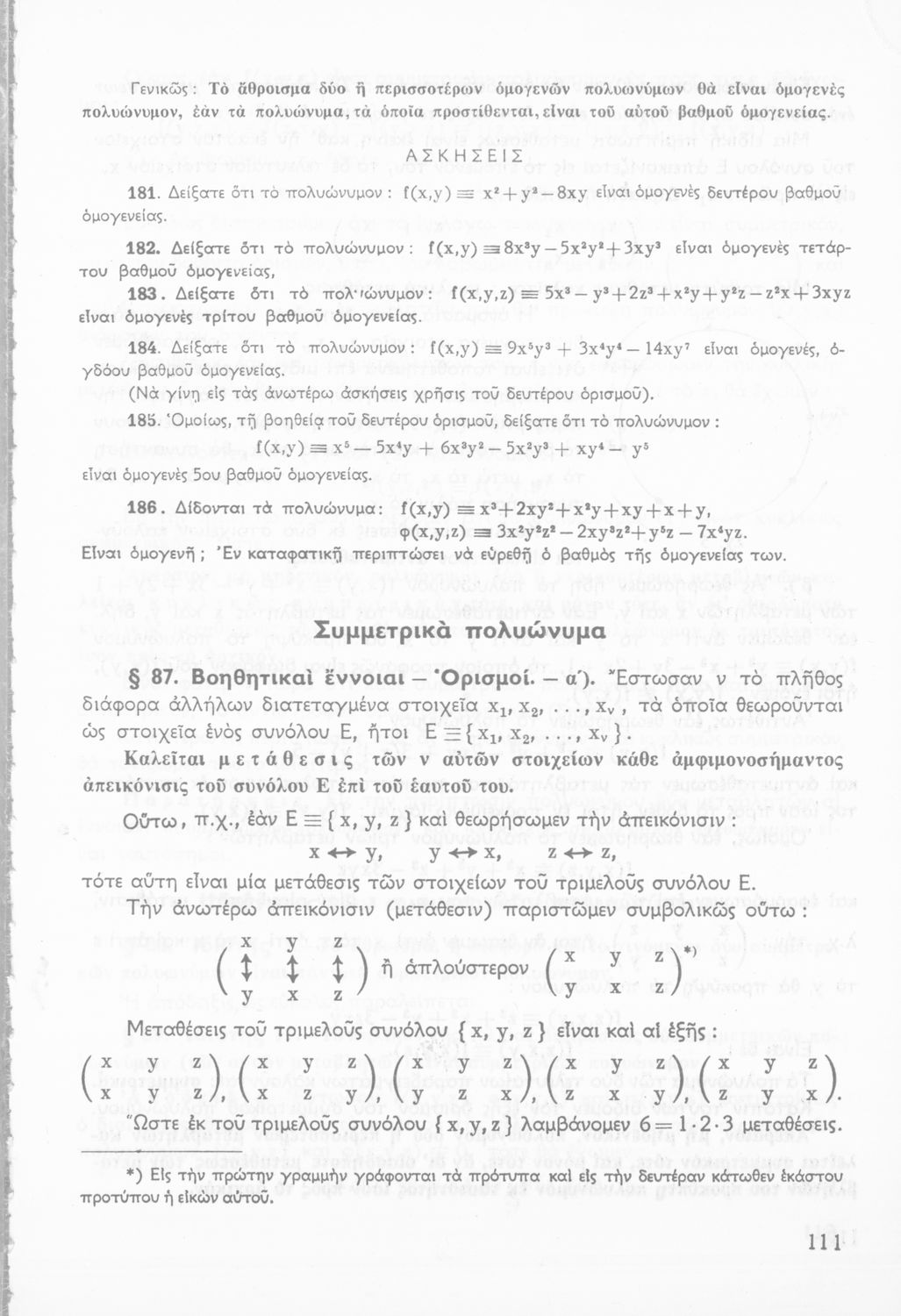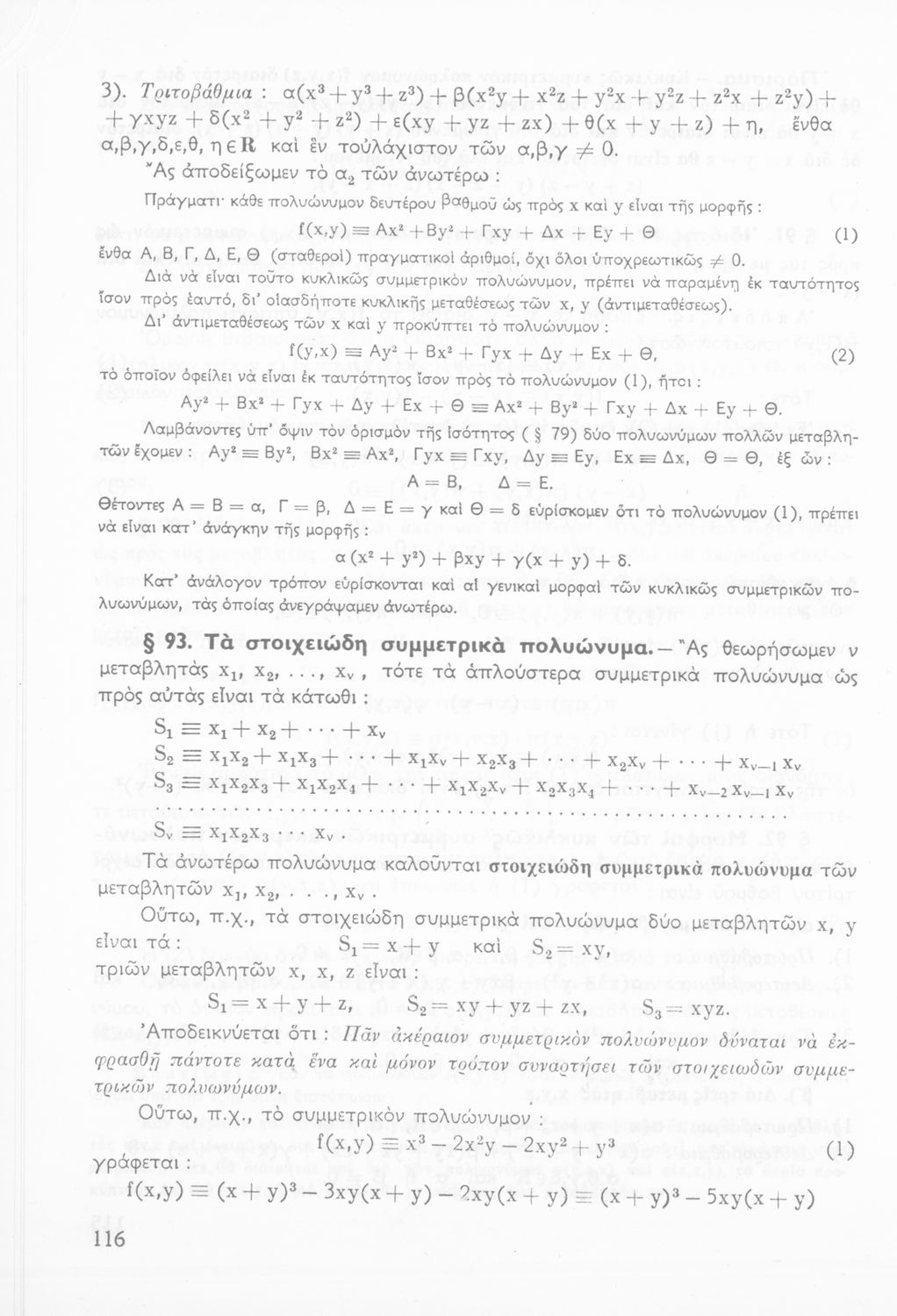 Σχολικό εγχειρίδιο Μαθηματικών Γυμνασίου που είναι χωρισμένο σε θεωρήματα, παραδείγματα και ασκήσεις και περιλαμβάνει στοιχεία Ανώτερης Άλγεβρας και Μαθηματικής Ανάλυσης.