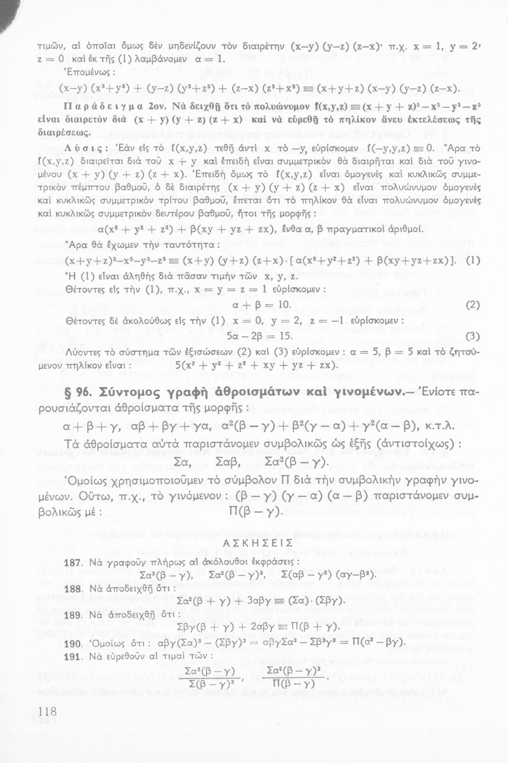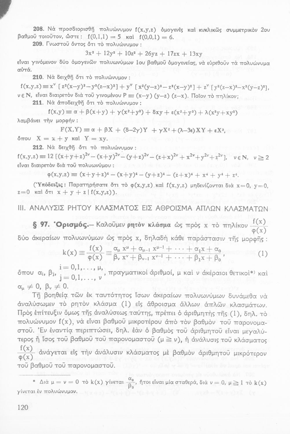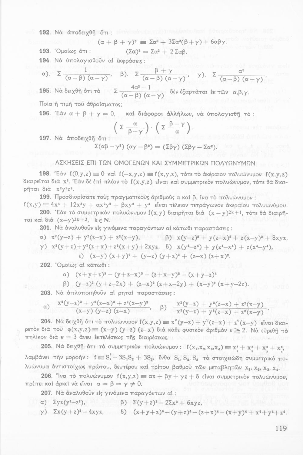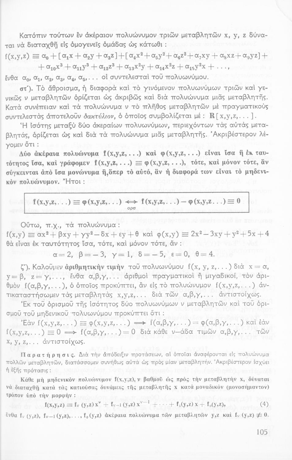 Σχολικό εγχειρίδιο Μαθηματικών Γυμνασίου που είναι χωρισμένο σε θεωρήματα, παραδείγματα και ασκήσεις και περιλαμβάνει στοιχεία Ανώτερης Άλγεβρας και Μαθηματικής Ανάλυσης.