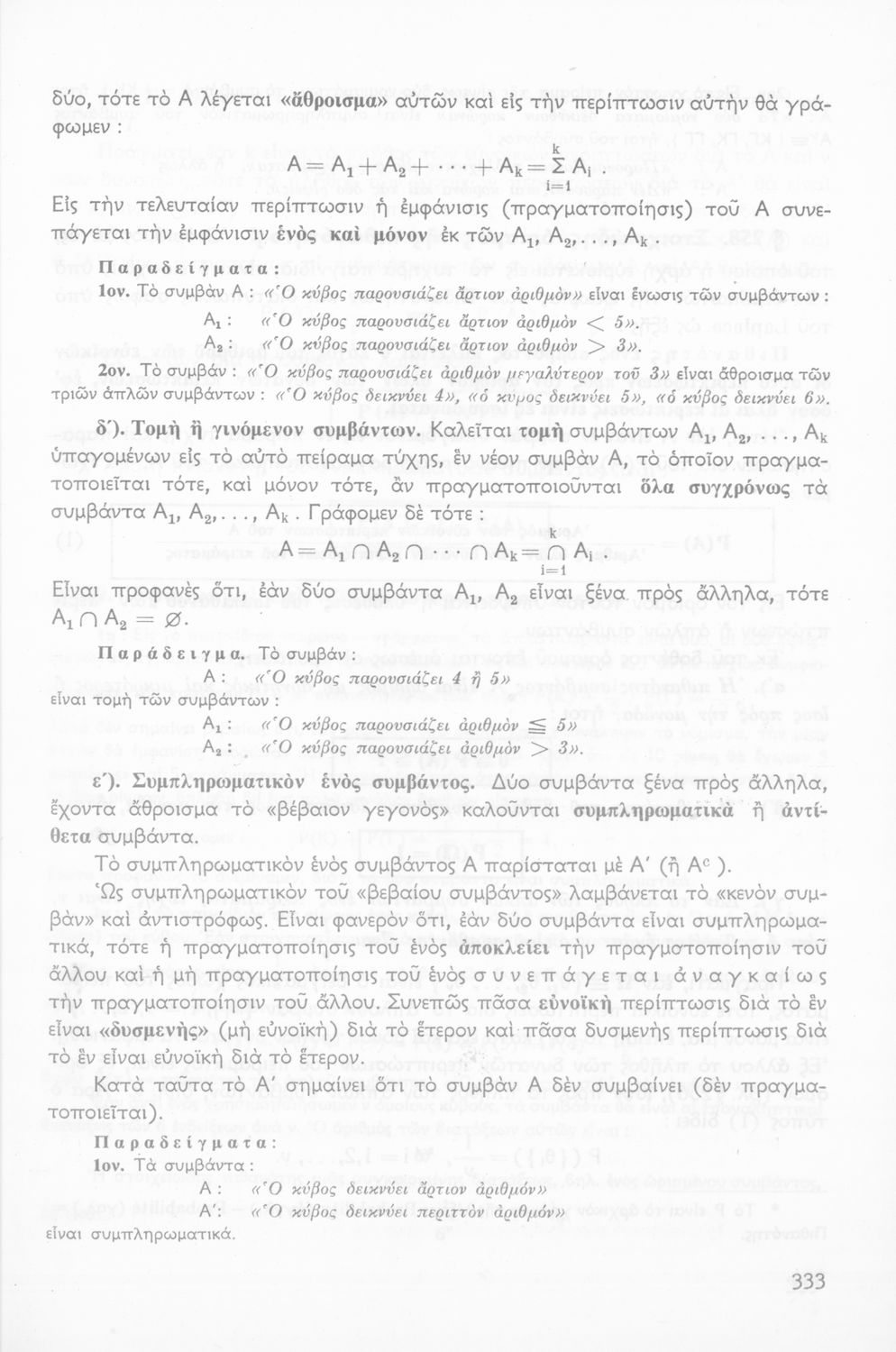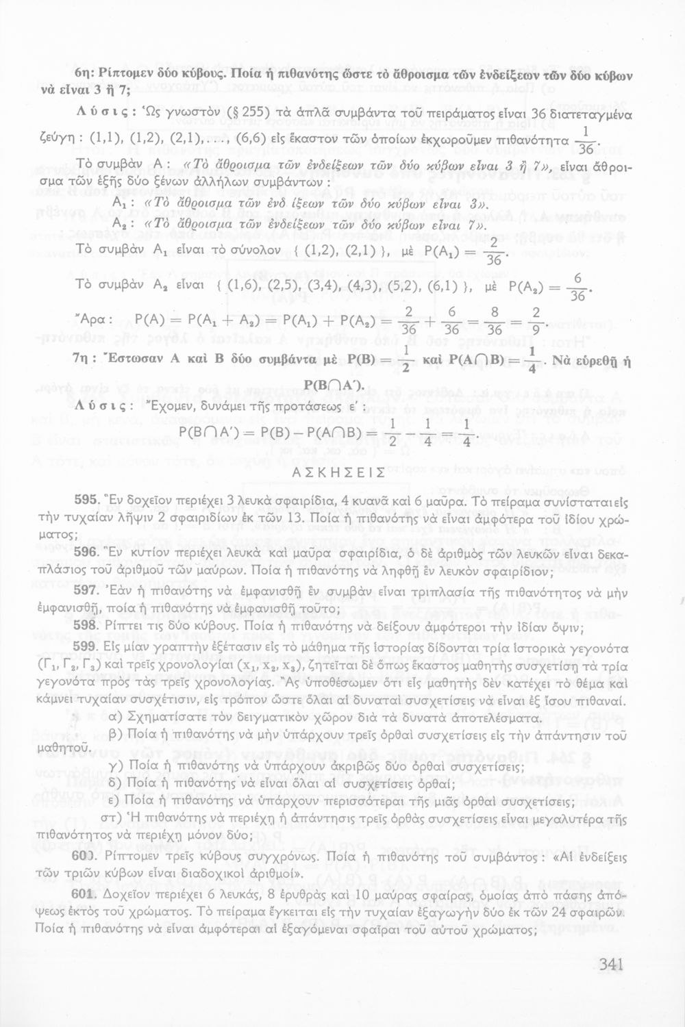 Σχολικό εγχειρίδιο Μαθηματικών ΣΤ΄ Γυμνασίου που είναι χωρισμένο σε θεωρήματα, παραδείγματα και ασκήσεις και περιλαμβάνει στοιχεία Ανώτερης Άλγεβρας και Μαθηματικής Ανάλυσης.