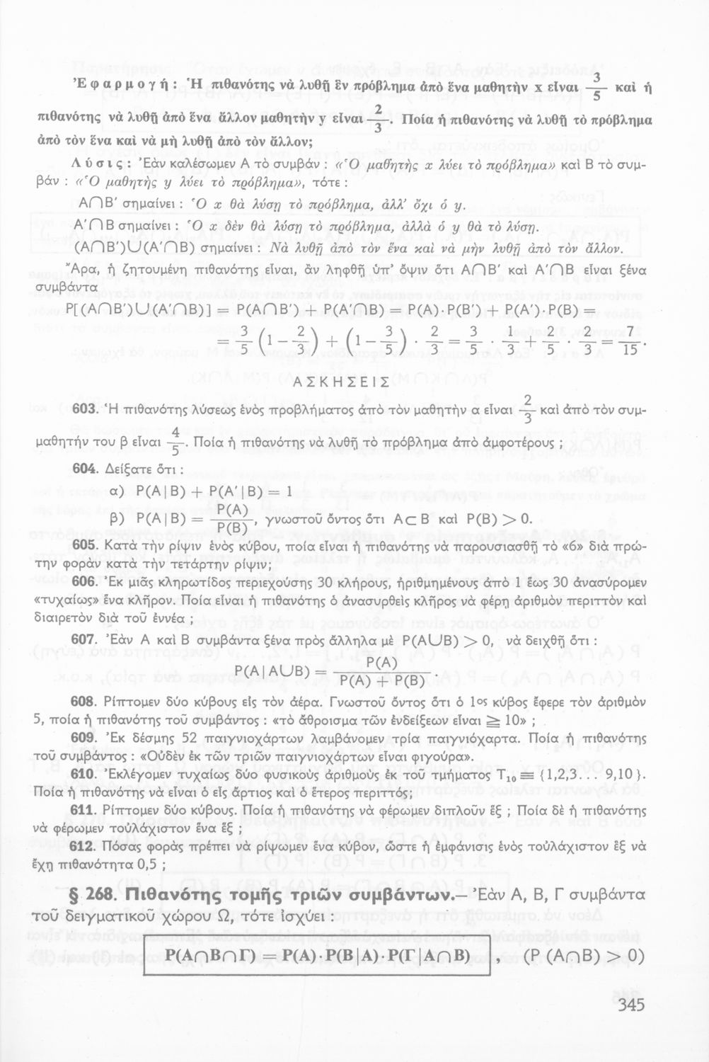 Σχολικό εγχειρίδιο Μαθηματικών ΣΤ΄ Γυμνασίου που είναι χωρισμένο σε θεωρήματα, παραδείγματα και ασκήσεις και περιλαμβάνει στοιχεία Ανώτερης Άλγεβρας και Μαθηματικής Ανάλυσης.