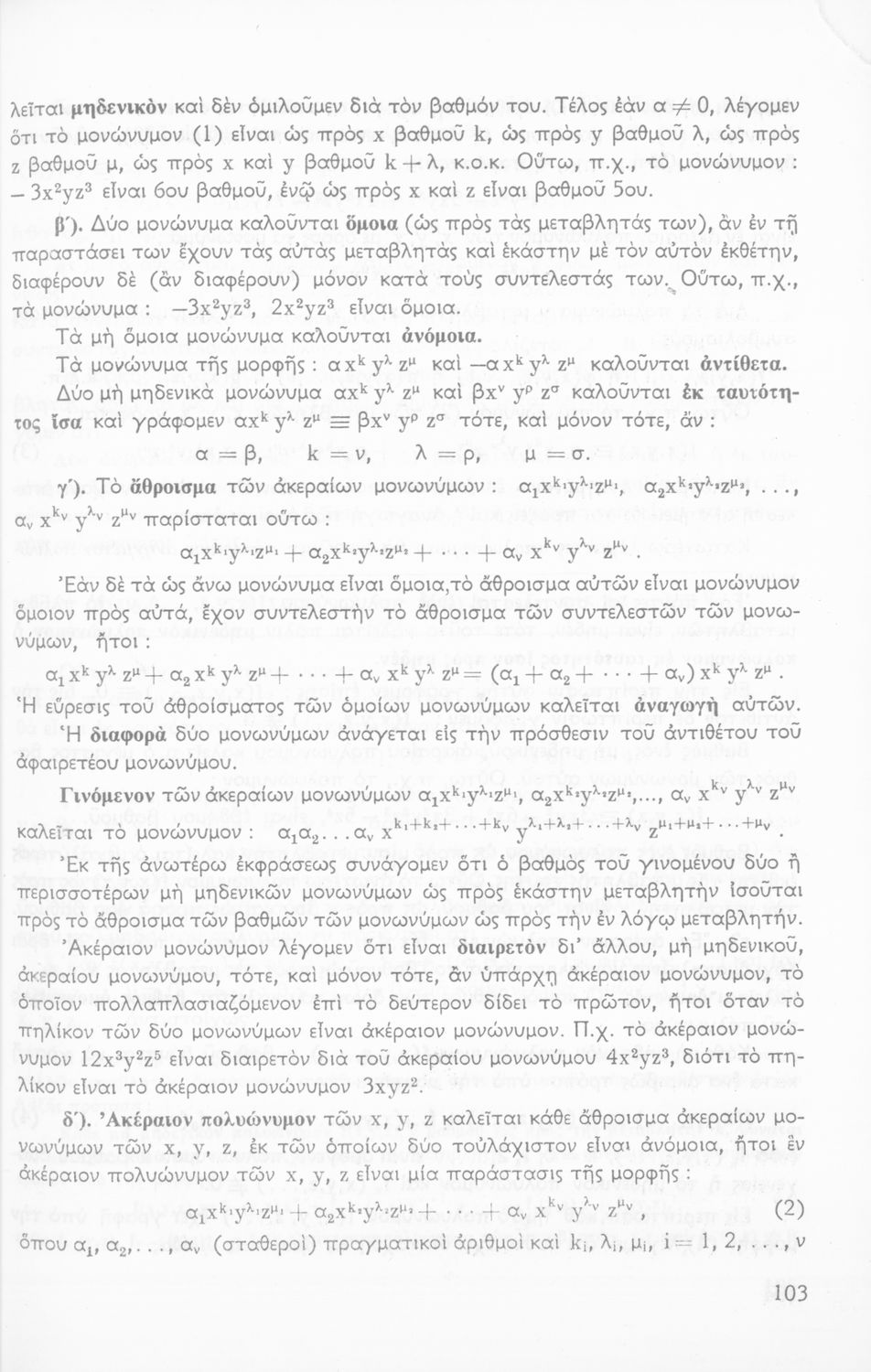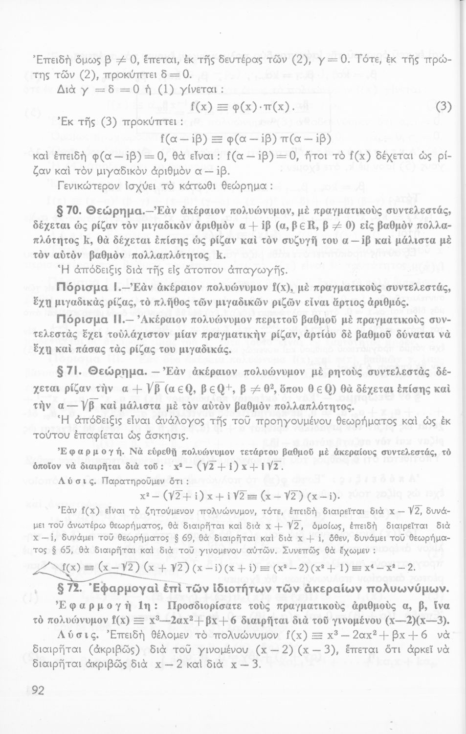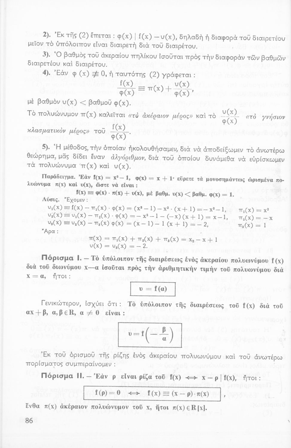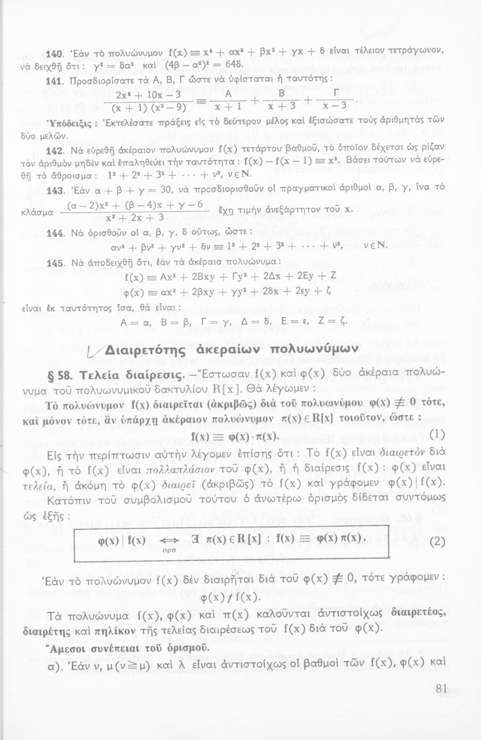 Σχολικό εγχειρίδιο Μαθηματικών Γυμνασίου που είναι χωρισμένο σε θεωρήματα, παραδείγματα και ασκήσεις και περιλαμβάνει στοιχεία Ανώτερης Άλγεβρας και Μαθηματικής Ανάλυσης.