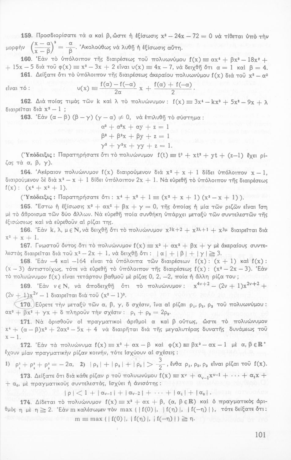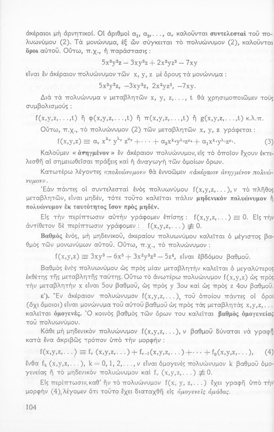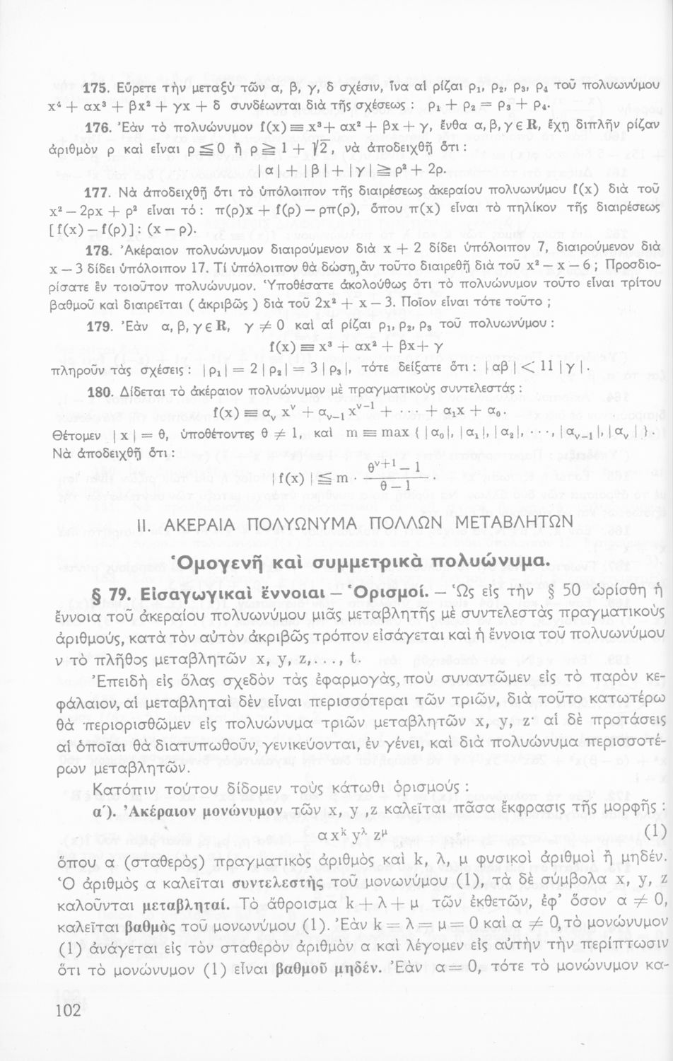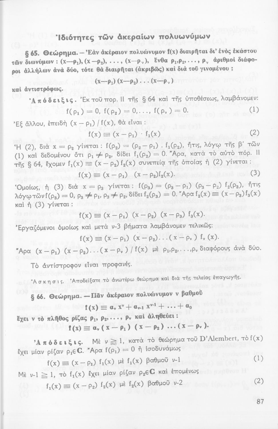 Σχολικό εγχειρίδιο Μαθηματικών Γυμνασίου που είναι χωρισμένο σε θεωρήματα, παραδείγματα και ασκήσεις και περιλαμβάνει στοιχεία Ανώτερης Άλγεβρας και Μαθηματικής Ανάλυσης.