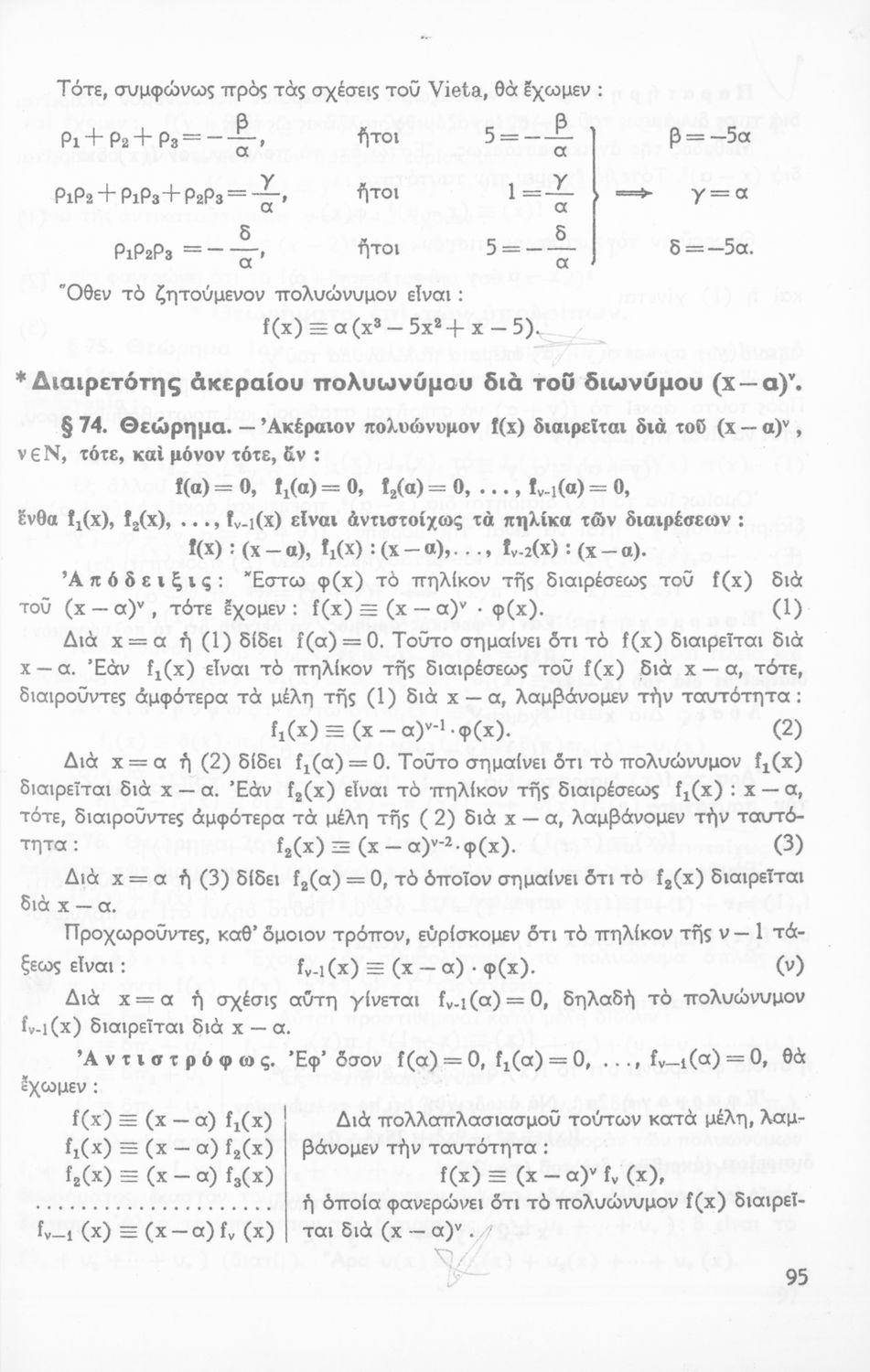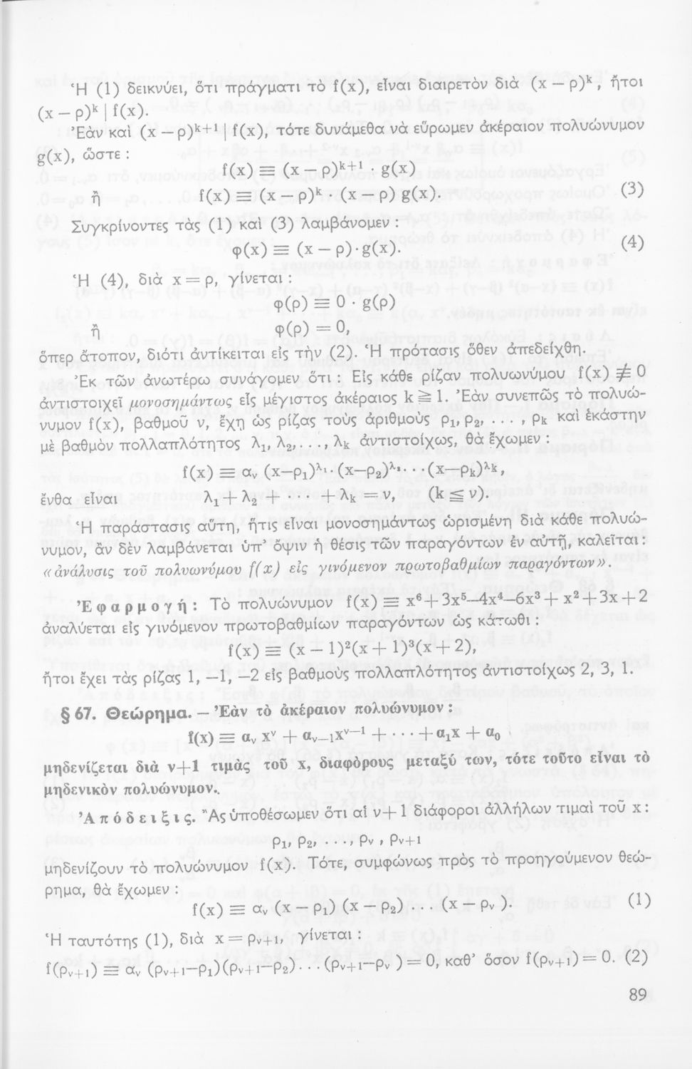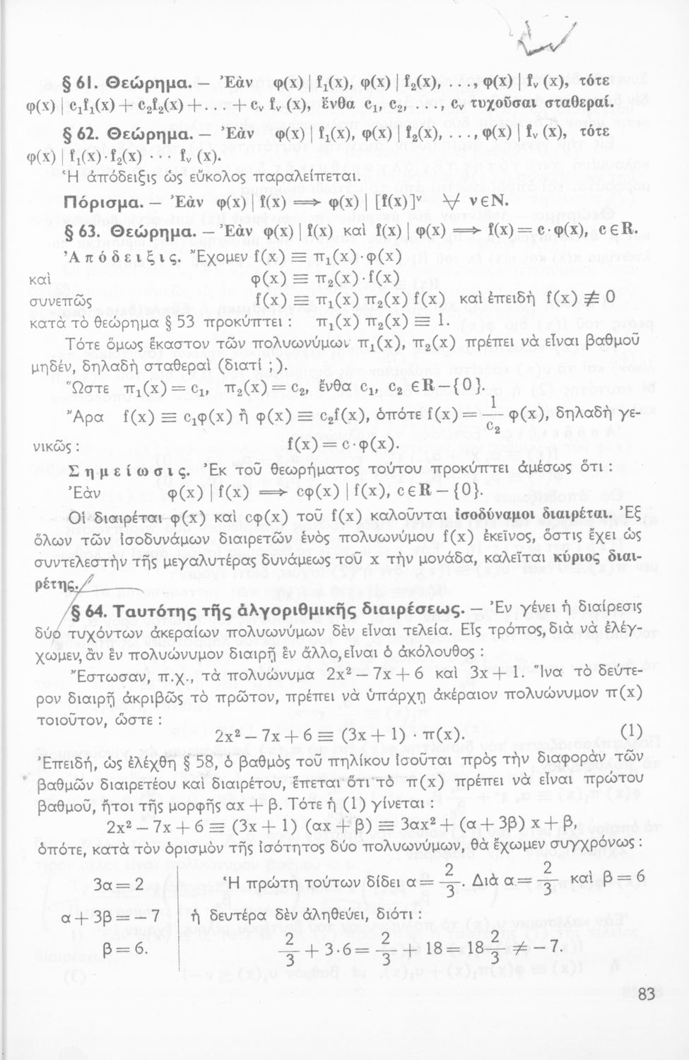 Σχολικό εγχειρίδιο Μαθηματικών ΣΤ΄ Γυμνασίου που είναι χωρισμένο σε θεωρήματα, παραδείγματα και ασκήσεις και περιλαμβάνει στοιχεία Ανώτερης Άλγεβρας και Μαθηματικής Ανάλυσης.