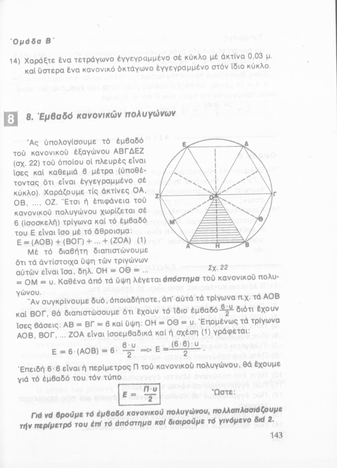 Σχολικό εγχειρίδιο Μαθηματικών ΣΤ΄ Δημοτικού που περιλαμβάνει ασκήσεις λογιστικού χαρακτήρα και ασκήσεις μέτρησης γεωμετρικών σχημάτων. Φέρει το σύμβολο της δικτατορίας.
