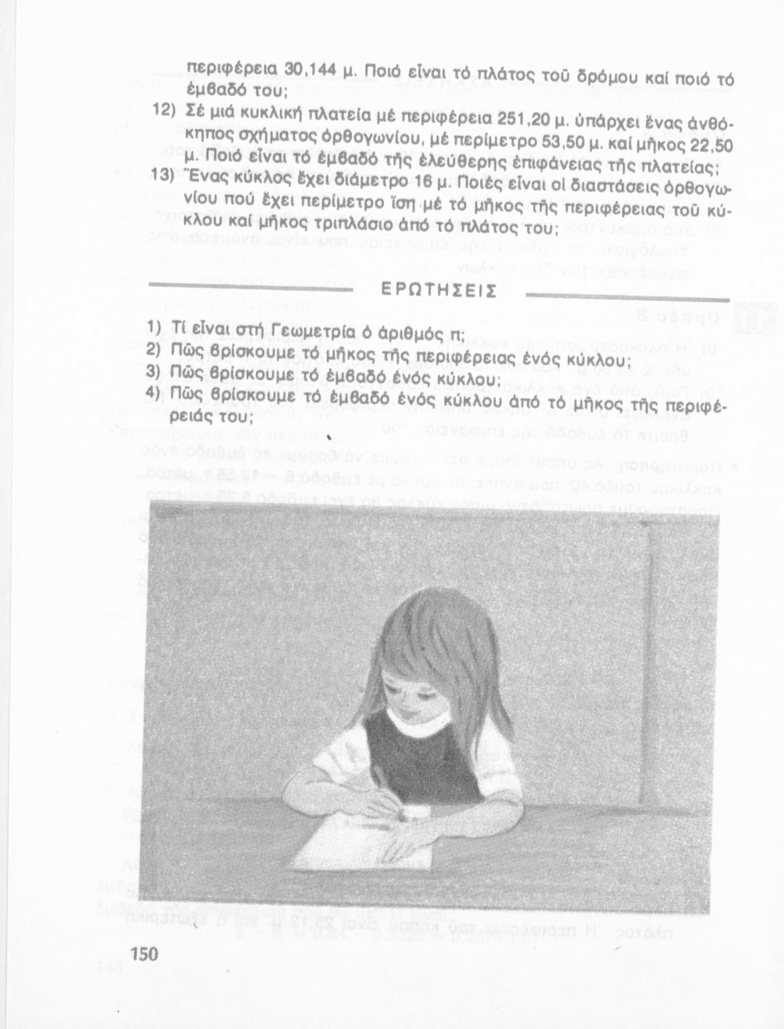 Σχολικό εγχειρίδιο Μαθηματικών ΣΤ΄ Δημοτικού που περιλαμβάνει ασκήσεις λογιστικού χαρακτήρα και ασκήσεις μέτρησης γεωμετρικών σχημάτων.