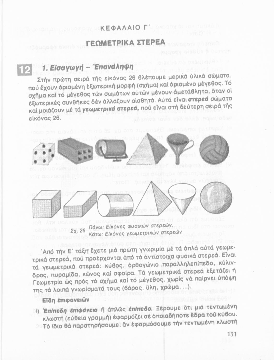 Σχολικό εγχειρίδιο Γεωμετρίας για την ΣΤ΄ Δημοτικού που εστιάζει στα γεωμετρικά σχήματα και σώματα και τον τρόπο μέτρησής τους.