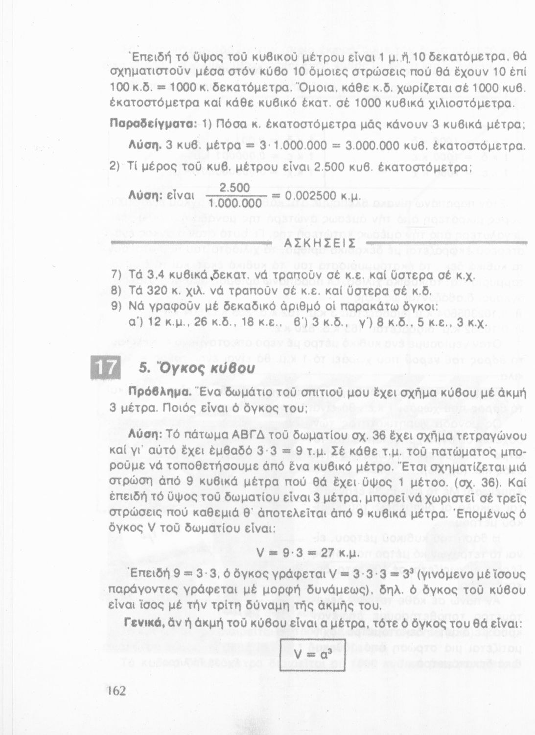 Σχολικό εγχειρίδιο Μαθηματικών ΣΤ΄ Δημοτικού που περιλαμβάνει ασκήσεις λογιστικού χαρακτήρα και ασκήσεις μέτρησης γεωμετρικών σχημάτων. Φέρει το σύμβολο της δικτατορίας.
