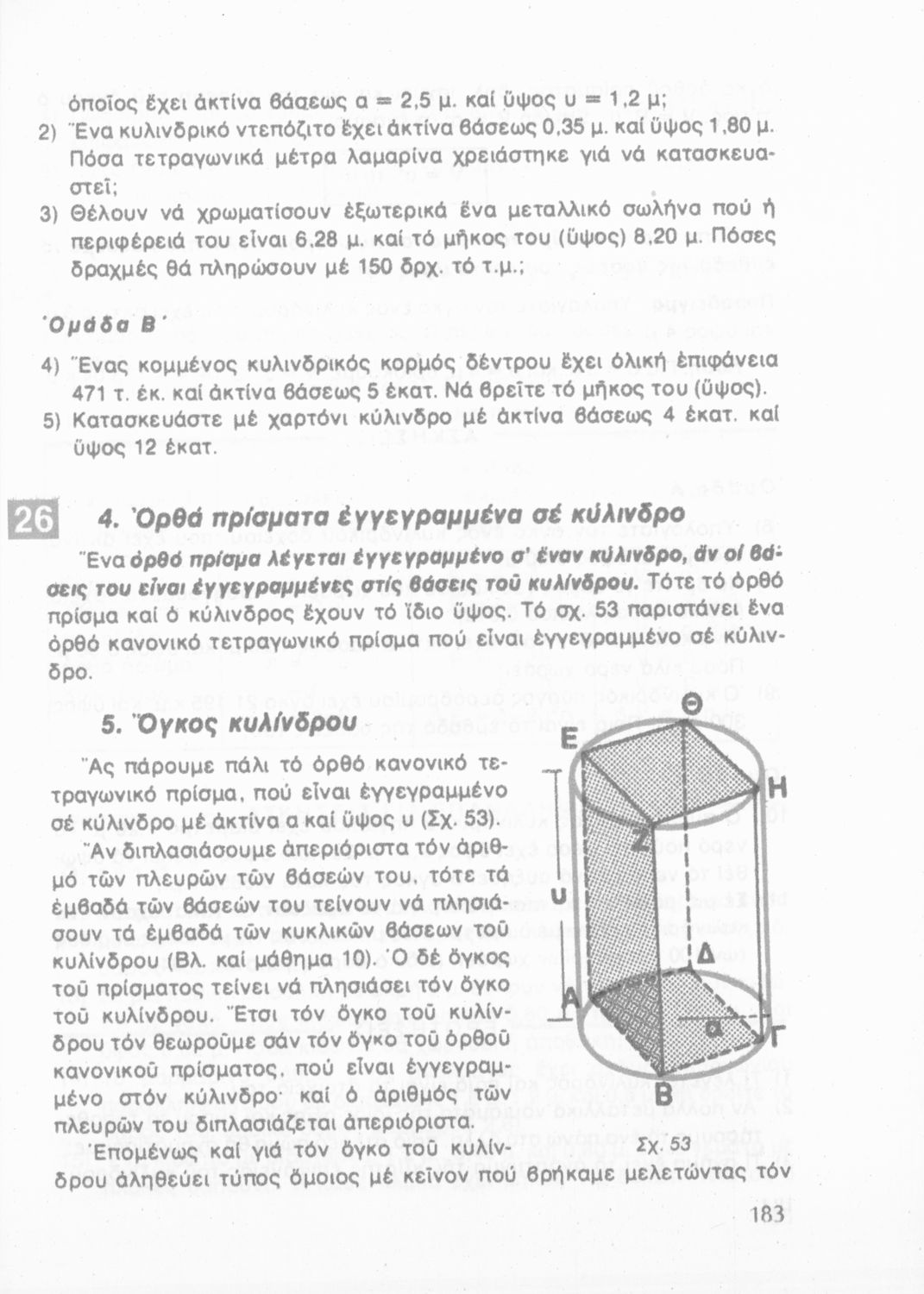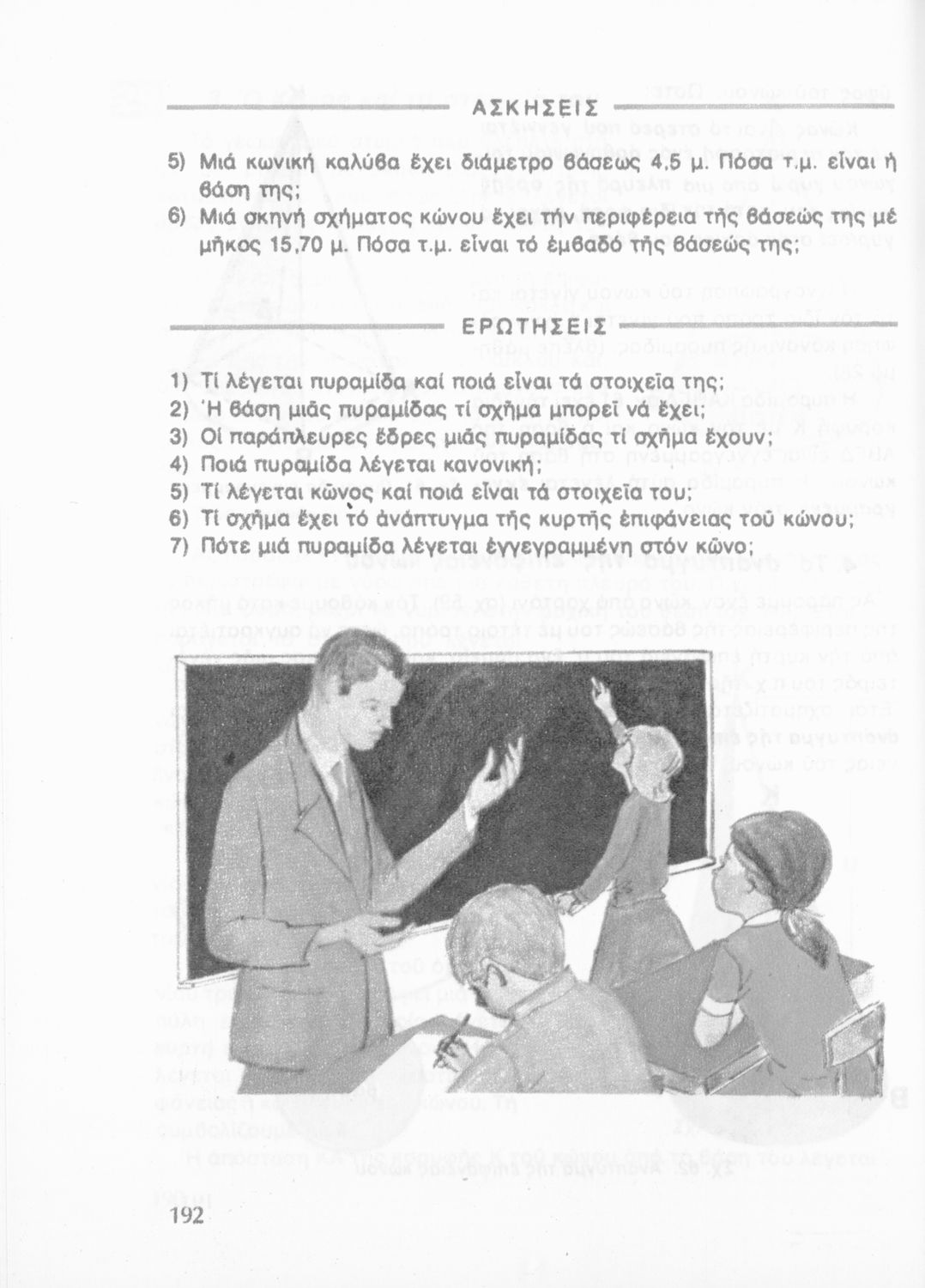 Σχολικό εγχειρίδιο Μαθηματικών ΣΤ΄ Δημοτικού που περιλαμβάνει ασκήσεις λογιστικού χαρακτήρα και ασκήσεις μέτρησης γεωμετρικών σχημάτων. Φέρει το σύμβολο της δικτατορίας.
