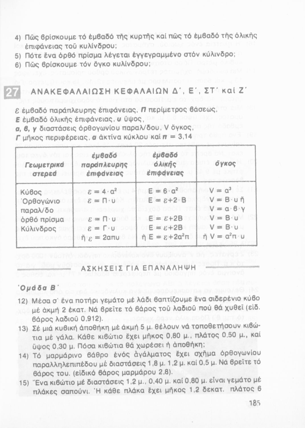 Σχολικό εγχειρίδιο Μαθηματικών ΣΤ΄ Δημοτικού που περιλαμβάνει ασκήσεις λογιστικού χαρακτήρα και ασκήσεις μέτρησης γεωμετρικών σχημάτων.