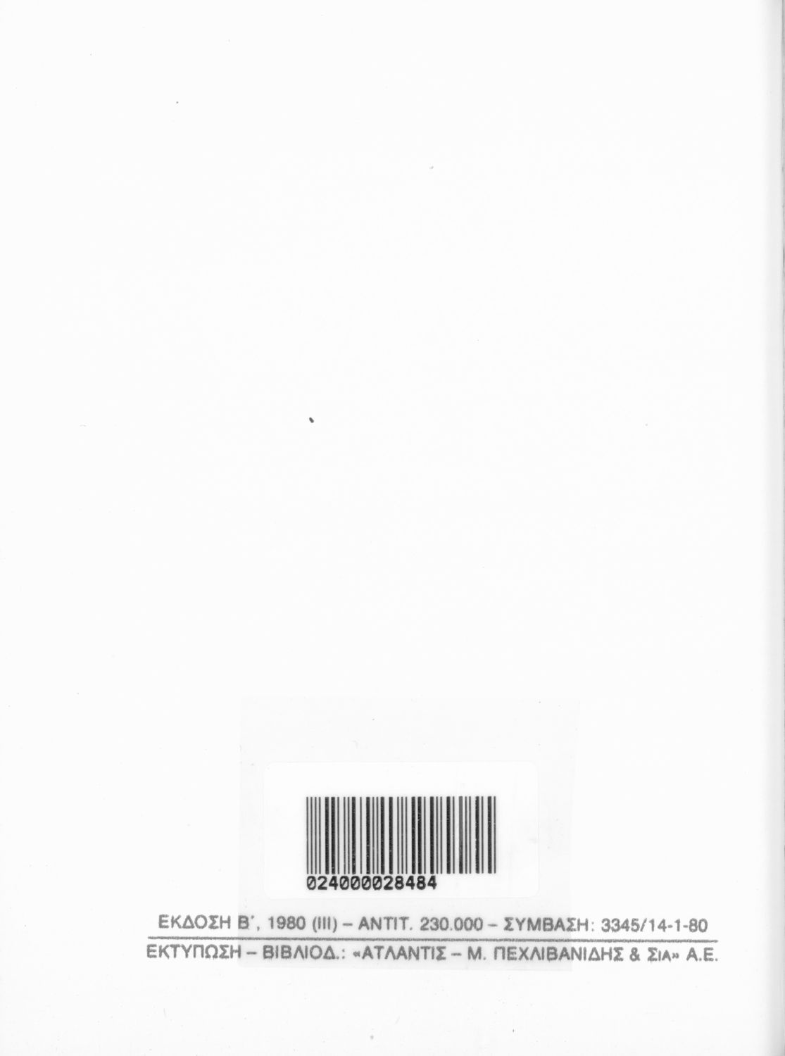 Εκδότης: Οργανισμός Εκδόσεως Διδακτικών Βιβλίων Έτος έκδοσης: 1980 Τόπος έκδοσης: Αθήνα Έκδοση: 2η Υπουργική απόφαση / Σύμβαση: 3345/14-1-1980 Έτος έγκρισης: 1980 |
