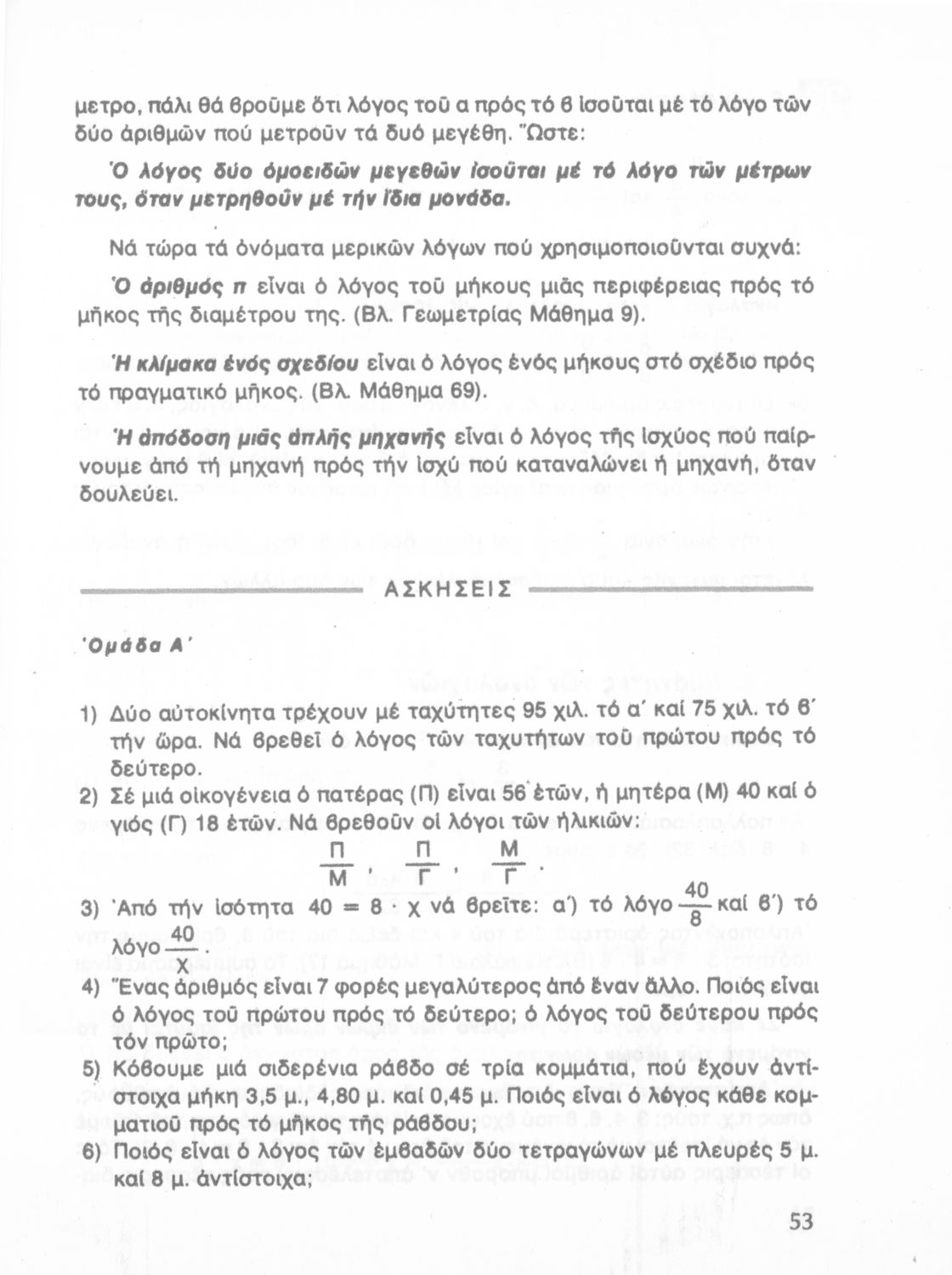 Σχολικό εγχειρίδιο Μαθηματικών ΣΤ΄ Δημοτικού που περιλαμβάνει ασκήσεις λογιστικού χαρακτήρα και ασκήσεις μέτρησης γεωμετρικών σχημάτων. Φέρει το σύμβολο της δικτατορίας.