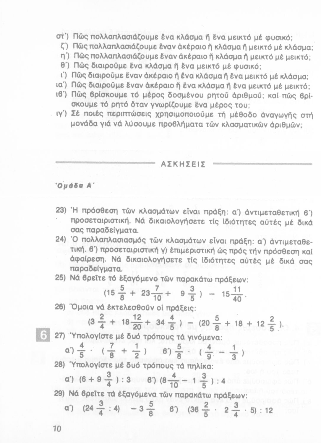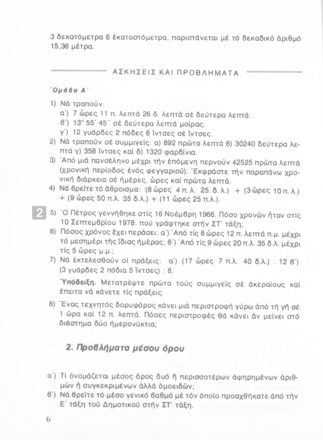 Βαθμίδα εκπαίδευσης: Δευτεροβάθμια Τάξη: ΣΤ' Δημοτικού Μάθημα: Μαθηματικά Γλώσσα: Δημοτική Παρουσίαση περιεχομένου: Σχολικό εγχειρίδιο Μαθηματικών ΣΤ΄ Δημοτικού που συνδυάζει Αριθμητική και Γεωμετρία και εστιάζει στις πράξεις με ακέραιους και συμμιγείς αριθμούς και τη μέτρηση γεωμετρικών στερεών. |