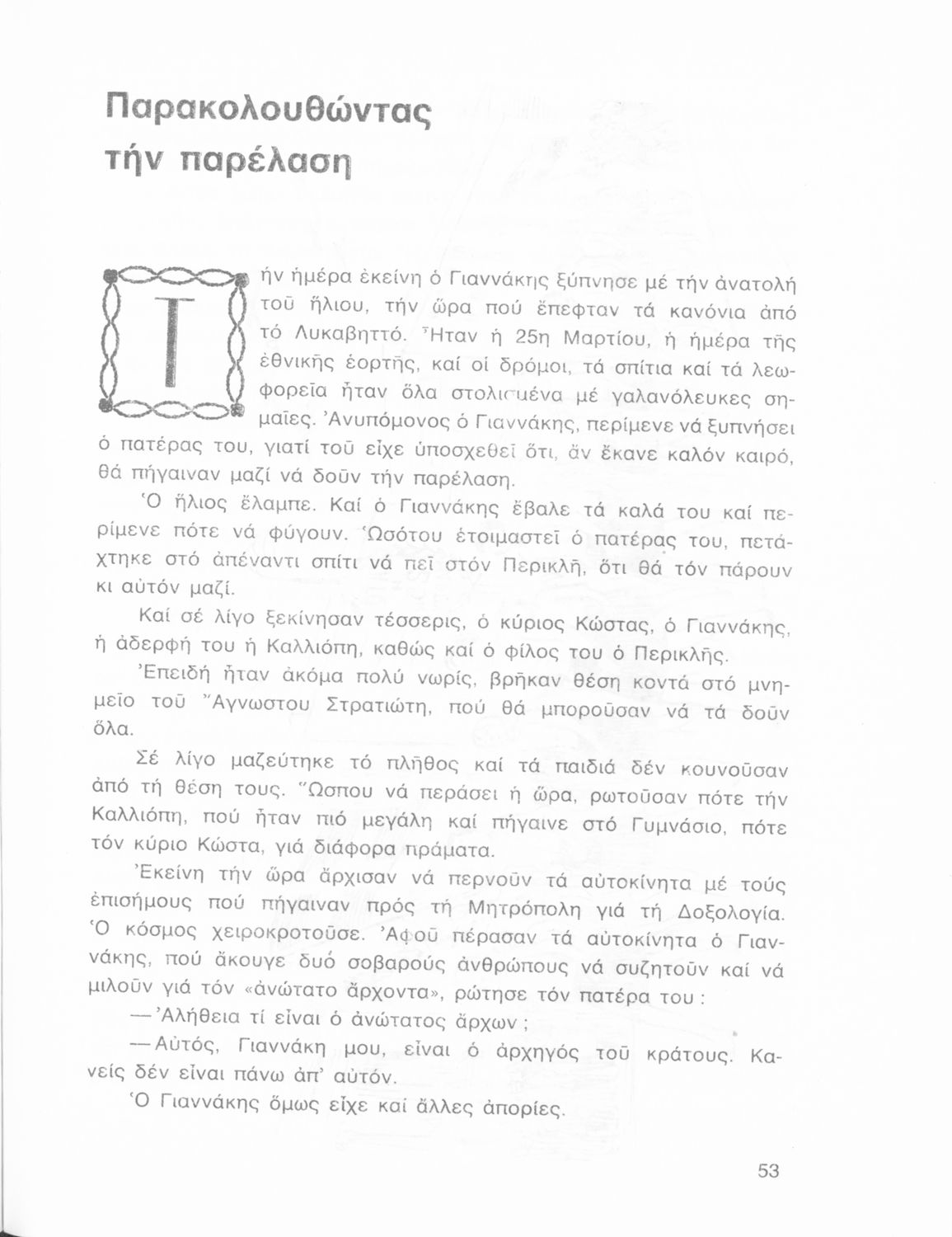 LDR 01468 2200217 4500 035 ## _a01-19011 040 ## _aΙνστιτούτο Εκπαιδευτικής Πολιτικής 041 ## _ael 100 ## _aΑγνή Ρουσοπούλου 110 ## _a19011 245 0# _aΑγωγή του Πολίτη ΣΤ΄ Δημοτικού 250 ## _a4η Έκδοση 260 ## _aΑθήνα _bΟργανισμός Εκδόσεως Διδακτικών Βιβλίων _c1978 300 ## _a102 _bΕικόνες (έγχρωμες) 520 ## _aΣχολικό εγχειρίδιο Αγωγής του Πολίτη ΣΤ΄ Δημοτικού που εστιάζει στα καθήκοντα πολίτη, τις βασικές αρχές του δημοκρατικού πολιτεύματος, τους νόμους, το ρόλο της κυβέρνησης, και της δικαιοσύνης, τη λειτουργία των θεσμών και την αξία των ανθρώπινων δικαιωμάτων. Αποσκοπεί στην κατανόηση της έννοιας του Δίκαιου και του Πολίτη. 521 ## _aΣΤ' Δημοτικού 522 ## _aΕλλάδα 546 ## _aΔημοτική 583 ## _a2964/3-1-1978 _c1978 650 #4 _aΒουλή _aΔημοκρατία _aΔίκαιο _aΔικαίωμα _aΕλευθερία _aΙσότητα _aΣύνταγμα 700 ## _aΓεράσιμος Γρηγόρης, Τζένη Καρακάλλου