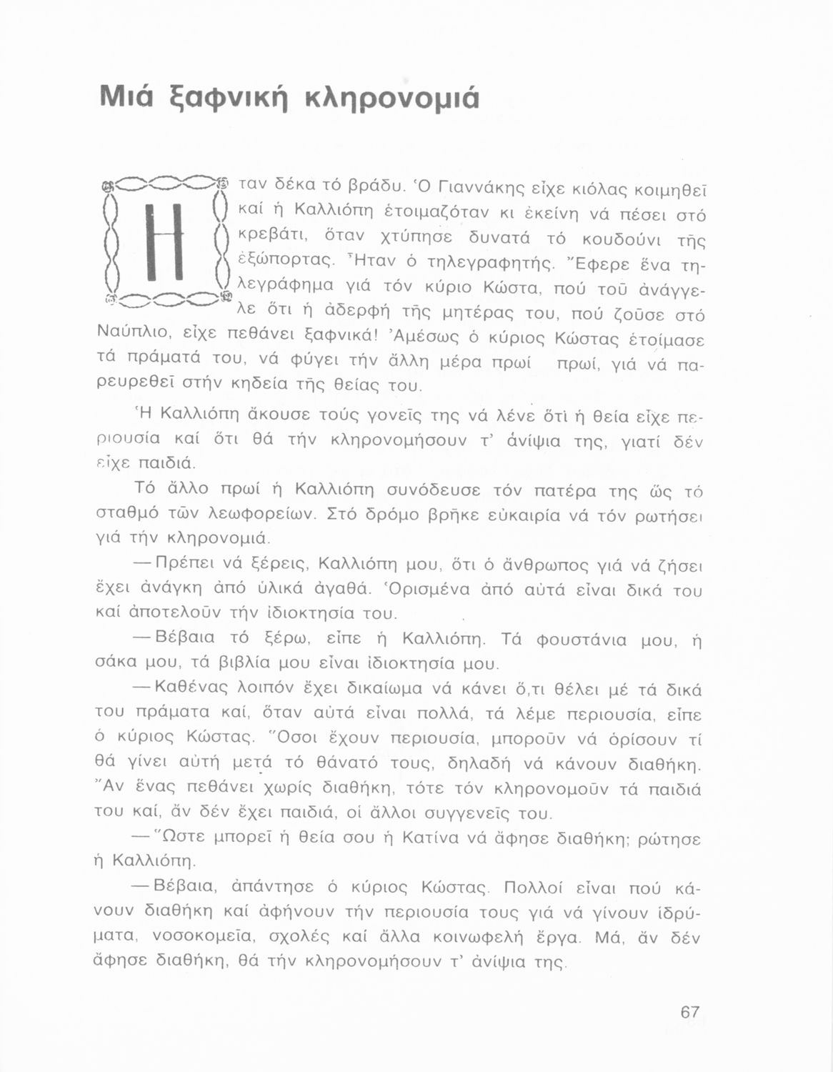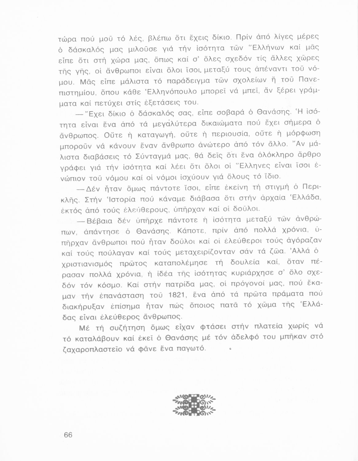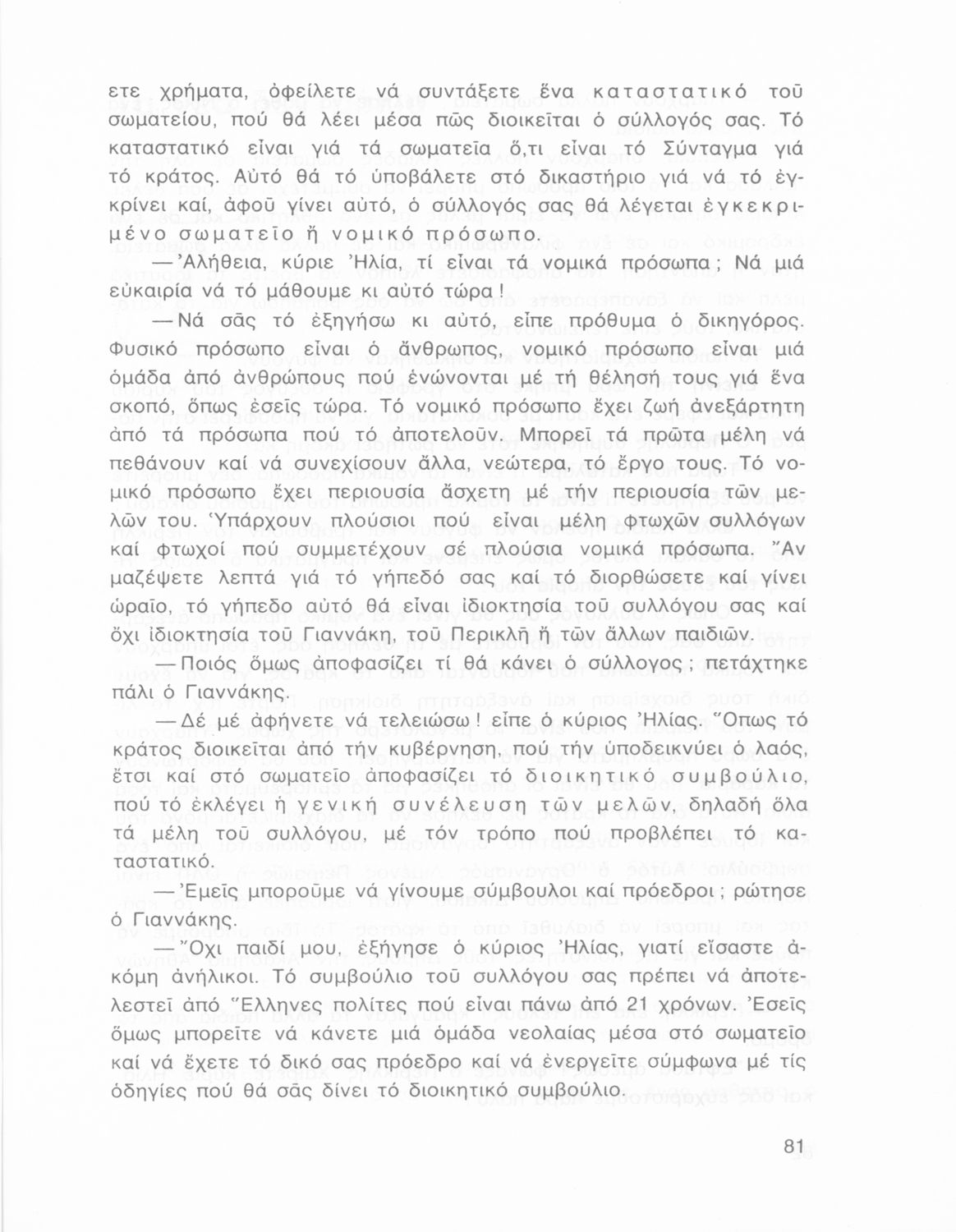 Σχολικό εγχειρίδιο Αγωγής του Πολίτη ΣΤ΄ Δημοτικού που εστιάζει στα καθήκοντα πολίτη, τις βασικές αρχές του δημοκρατικού πολιτεύματος, τους νόμους, το ρόλο της κυβέρνησης, και της δικαιοσύνης, τη λειτουργία των θεσμών και την αξία των ανθρώπινων δικαιωμάτων. Αποσκοπεί στην κατανόηση της έννοιας του Δίκαιου και του Πολίτη.