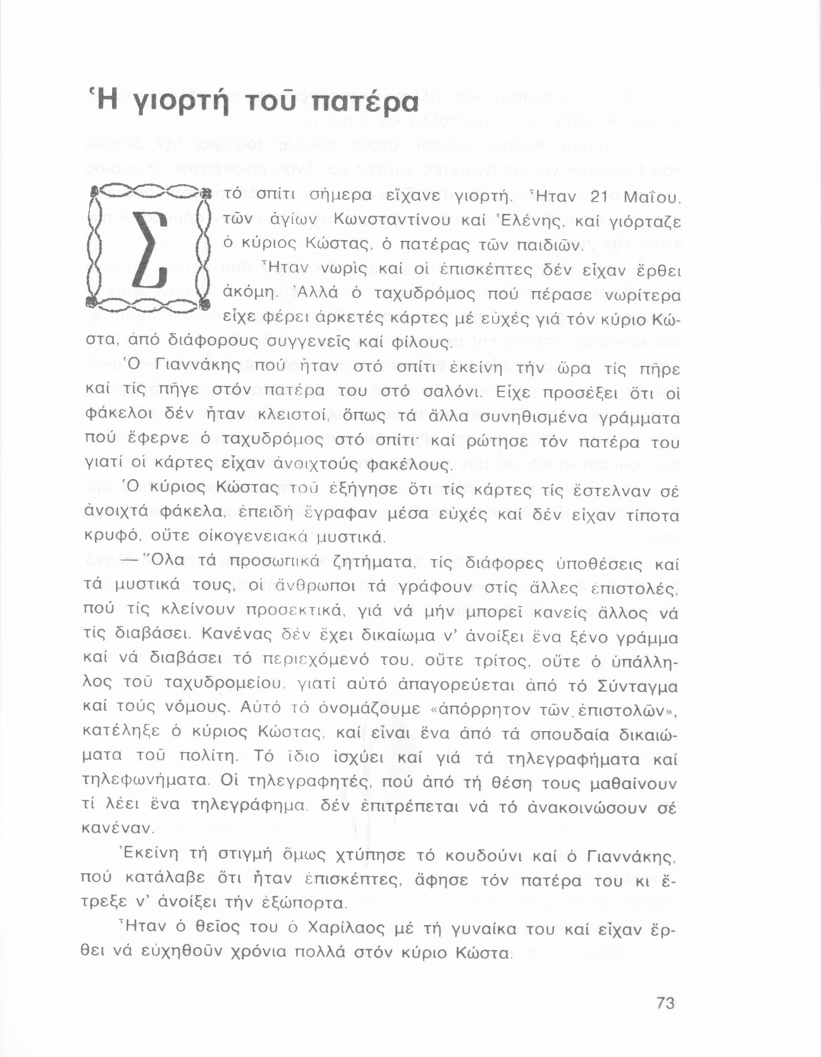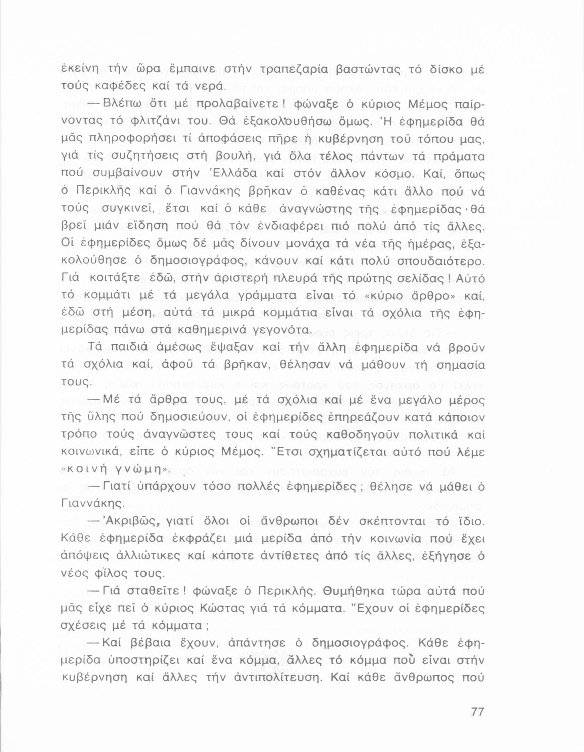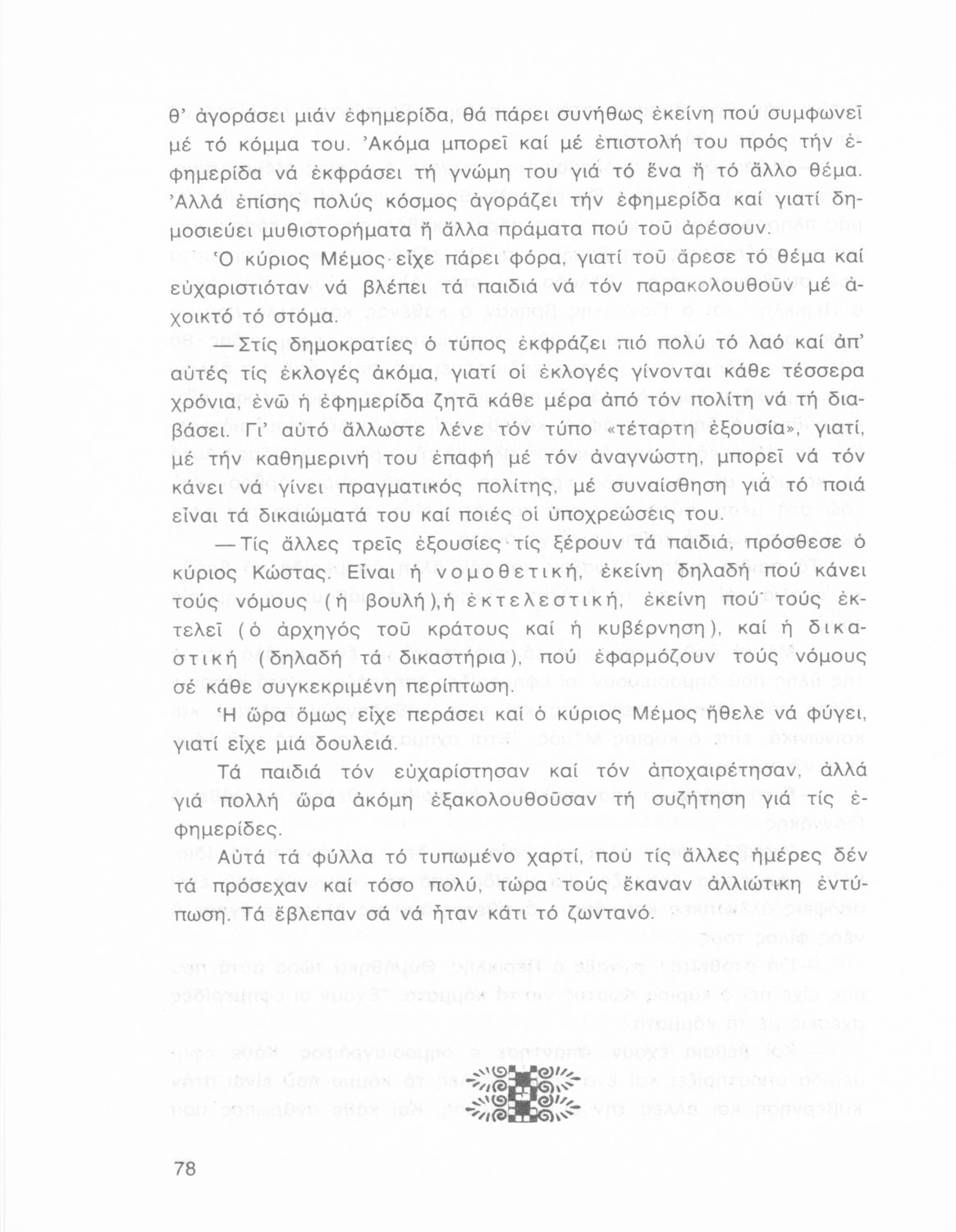 LDR 01468 2200217 4500 035 ## _a01-19011 040 ## _aΙνστιτούτο Εκπαιδευτικής Πολιτικής 041 ## _ael 100 ## _aΑγνή Ρουσοπούλου 110 ## _a19011 245 0# _aΑγωγή του Πολίτη ΣΤ΄ Δημοτικού 250 ## _a4η Έκδοση 260 ## _aΑθήνα _bΟργανισμός Εκδόσεως Διδακτικών Βιβλίων _c1978 300 ## _a102 _bΕικόνες (έγχρωμες) 520 ## _aΣχολικό εγχειρίδιο Αγωγής του Πολίτη ΣΤ΄ Δημοτικού που εστιάζει στα καθήκοντα πολίτη, τις βασικές αρχές του δημοκρατικού πολιτεύματος, τους νόμους, το ρόλο της κυβέρνησης, και της δικαιοσύνης, τη λειτουργία των θεσμών και την αξία των ανθρώπινων δικαιωμάτων. Αποσκοπεί στην κατανόηση της έννοιας του Δίκαιου και του Πολίτη. 521 ## _aΣΤ' Δημοτικού 522 ## _aΕλλάδα 546 ## _aΔημοτική 583 ## _a2964/3-1-1978 _c1978 650 #4 _aΒουλή _aΔημοκρατία _aΔίκαιο _aΔικαίωμα _aΕλευθερία _aΙσότητα _aΣύνταγμα 700 ## _aΓεράσιμος Γρηγόρης, Τζένη Καρακάλλου