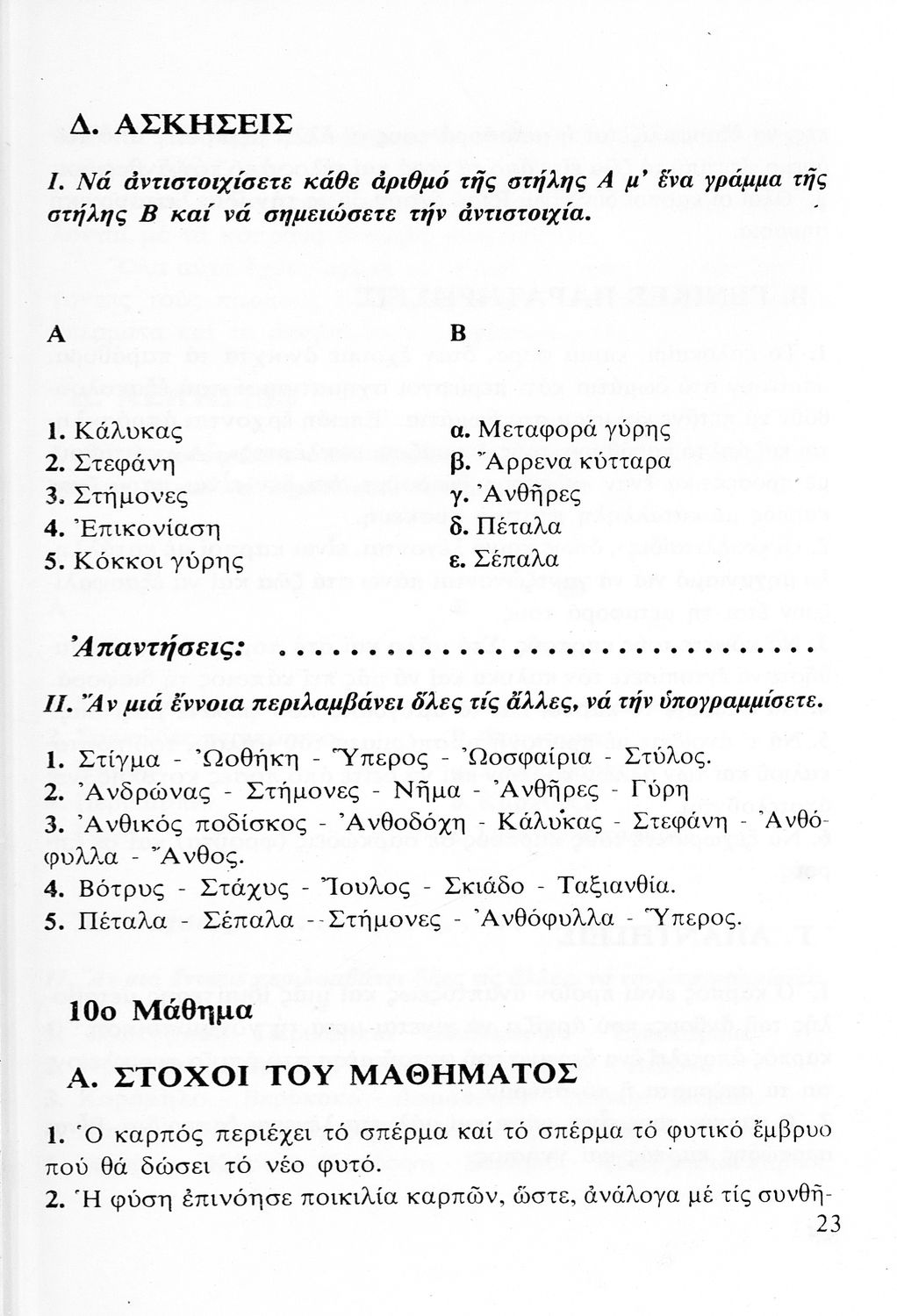 Μεθοδικές Οδηγίες για το μάθημα της Βοτανικής - Ζωολογίας