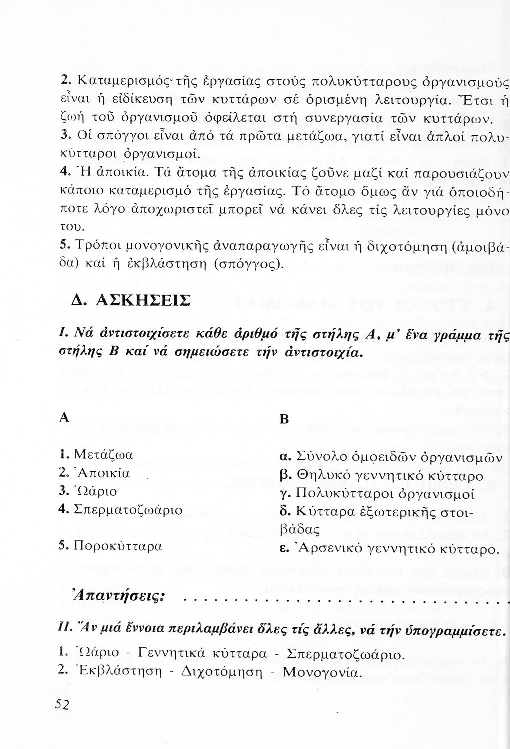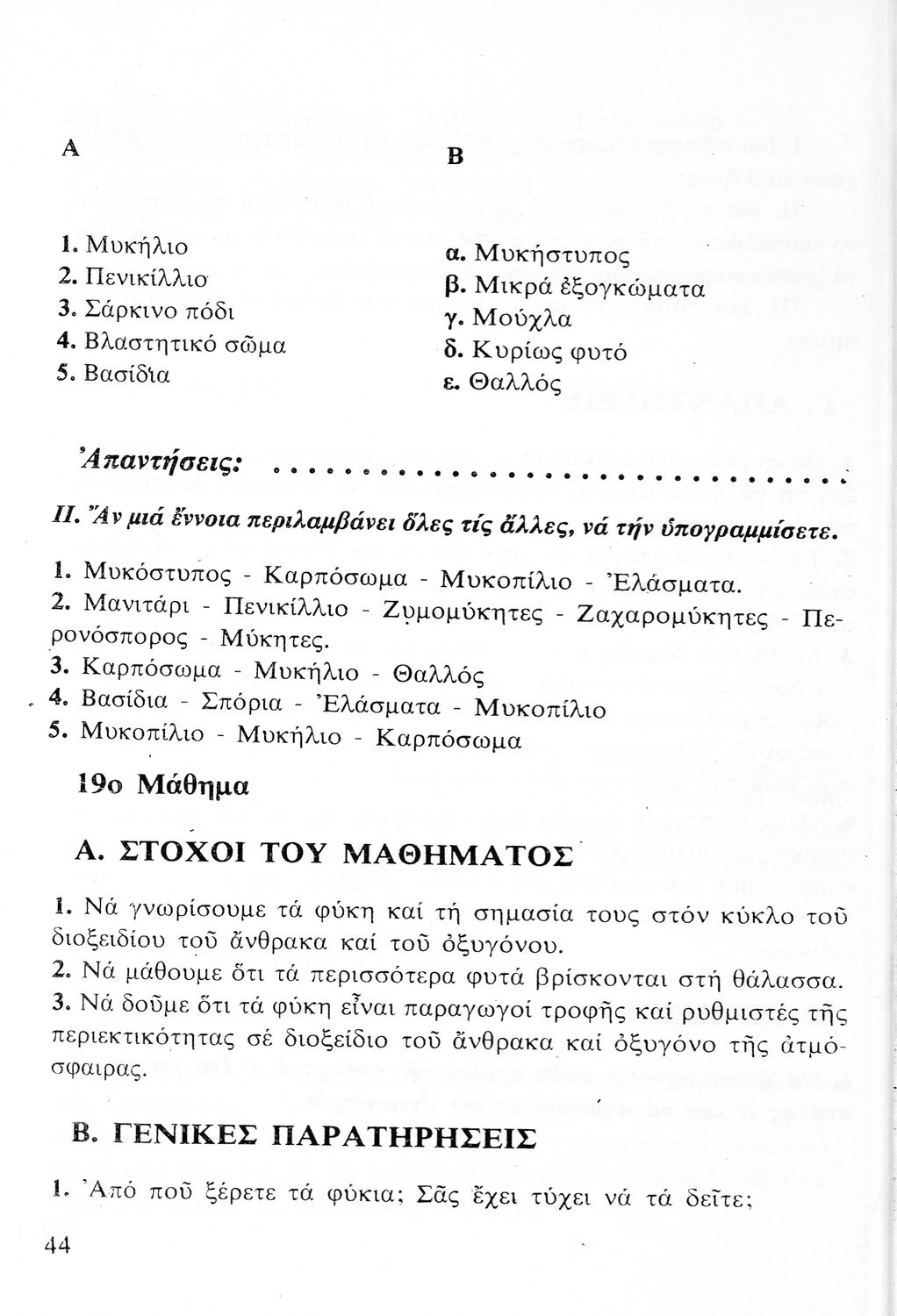 Μάθημα: Βοτανική, Ζωολογία