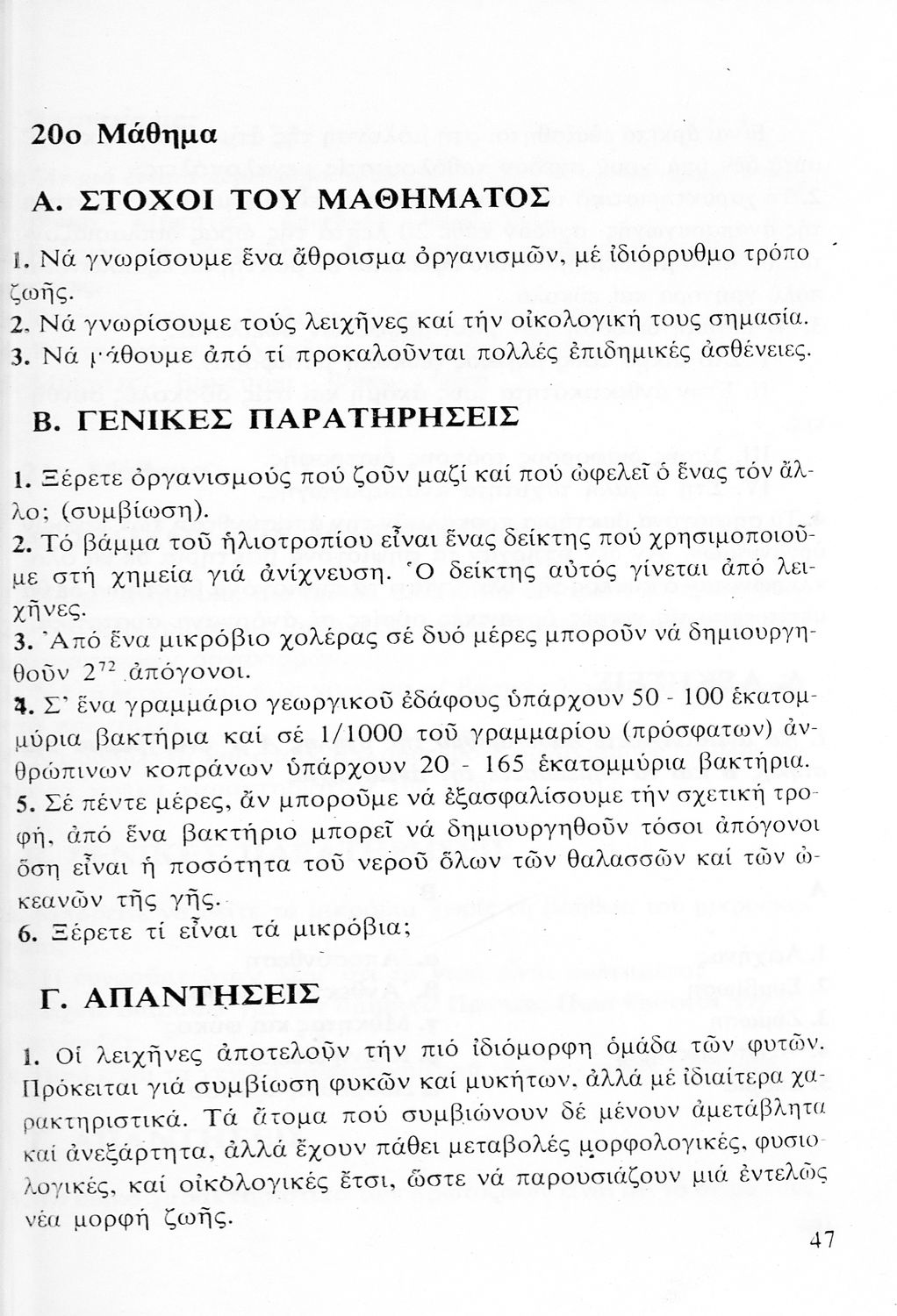 Παρουσίαση περιεχομένου: Παιδαγωγικό βοήθημα Βοτανικής/Ζωολογίας για την Α΄ Γυμνασίου που είναι χωρισμένο σε 38 μαθήματα και περιλαμβάνει τους στόχους του μαθήματος, γενικές παρατηρήσεις, απαντήσεις και ασκήσεις.