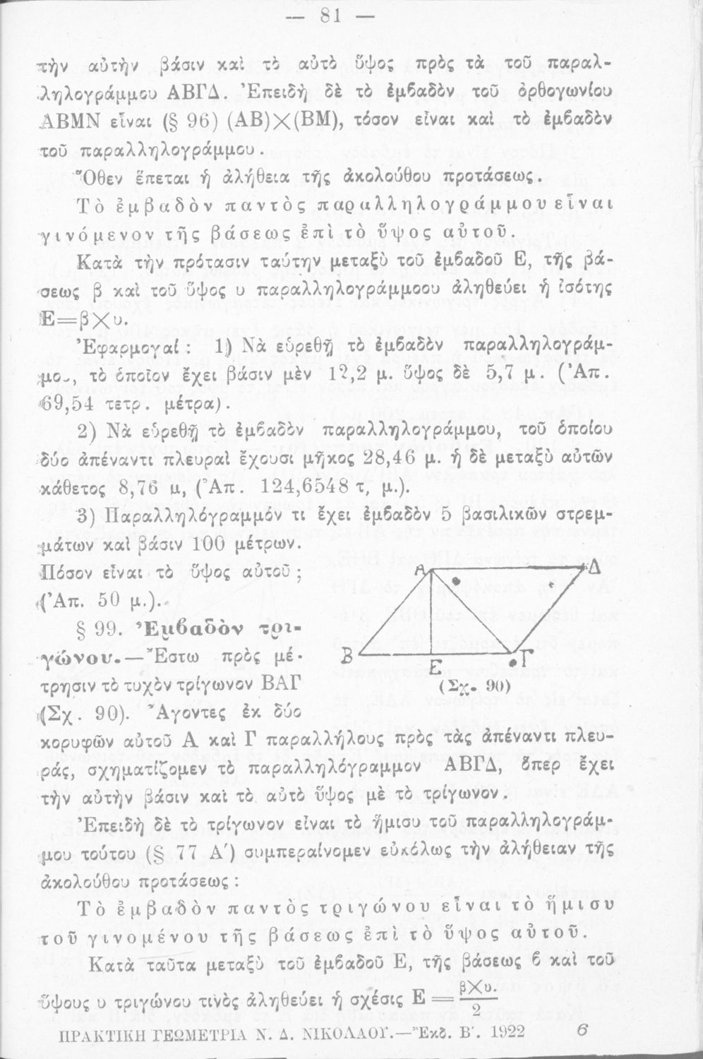 Σχολικό εγχειρίδιο Γεωμετρίας για τα Ελληνικά Σχολεία και Παρθεναγωγεία με έντονο πρακτικό προσανατολισμό.