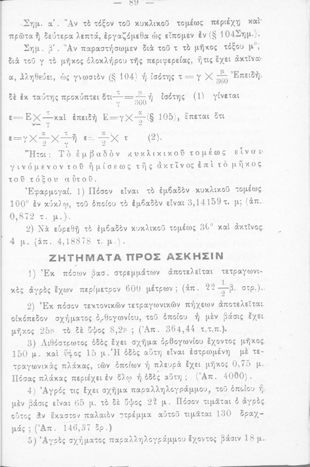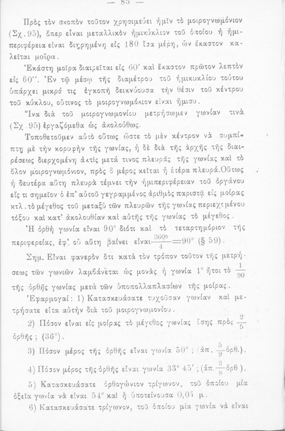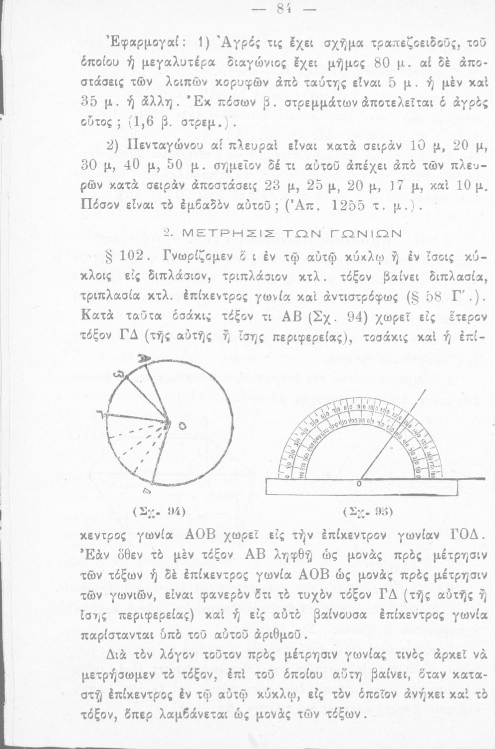 Σχολικό εγχειρίδιο Γεωμετρίας για την Α΄, Β΄ και Γ΄ τάξη των Ελληνικών και Αστικών Σχολείων και Παρθεναγωγείων που είναι χωρισμένο σε Επιπεδομετρία και Στερεομετρία και περιλαμβάνει θεωρία και ασκήσεις.
