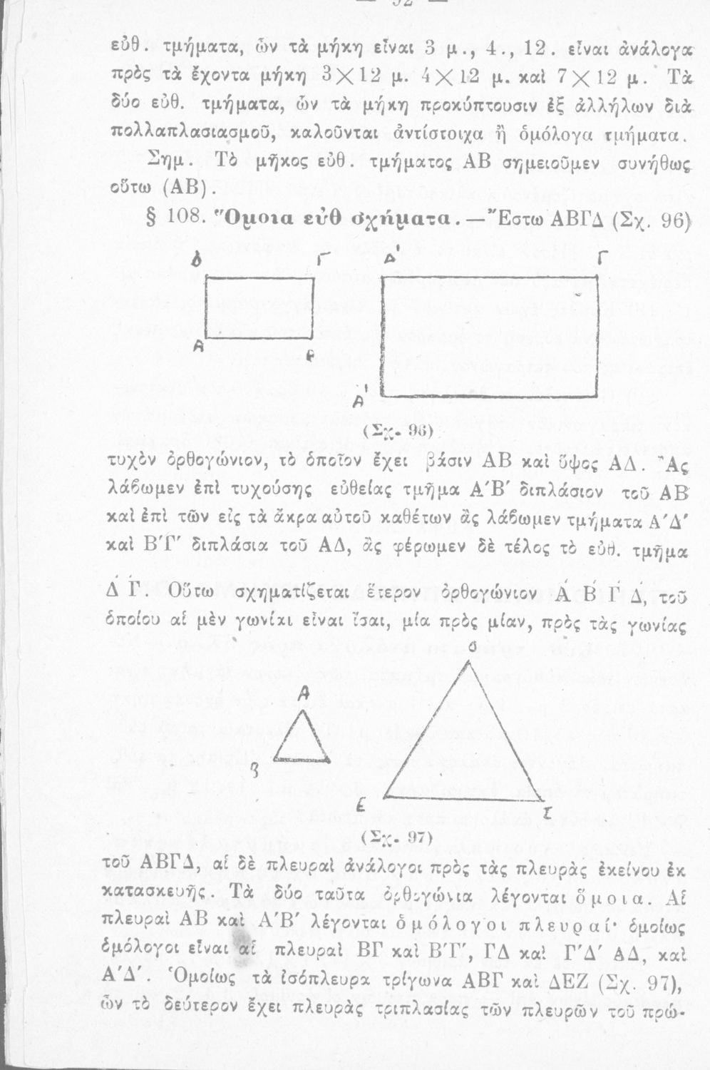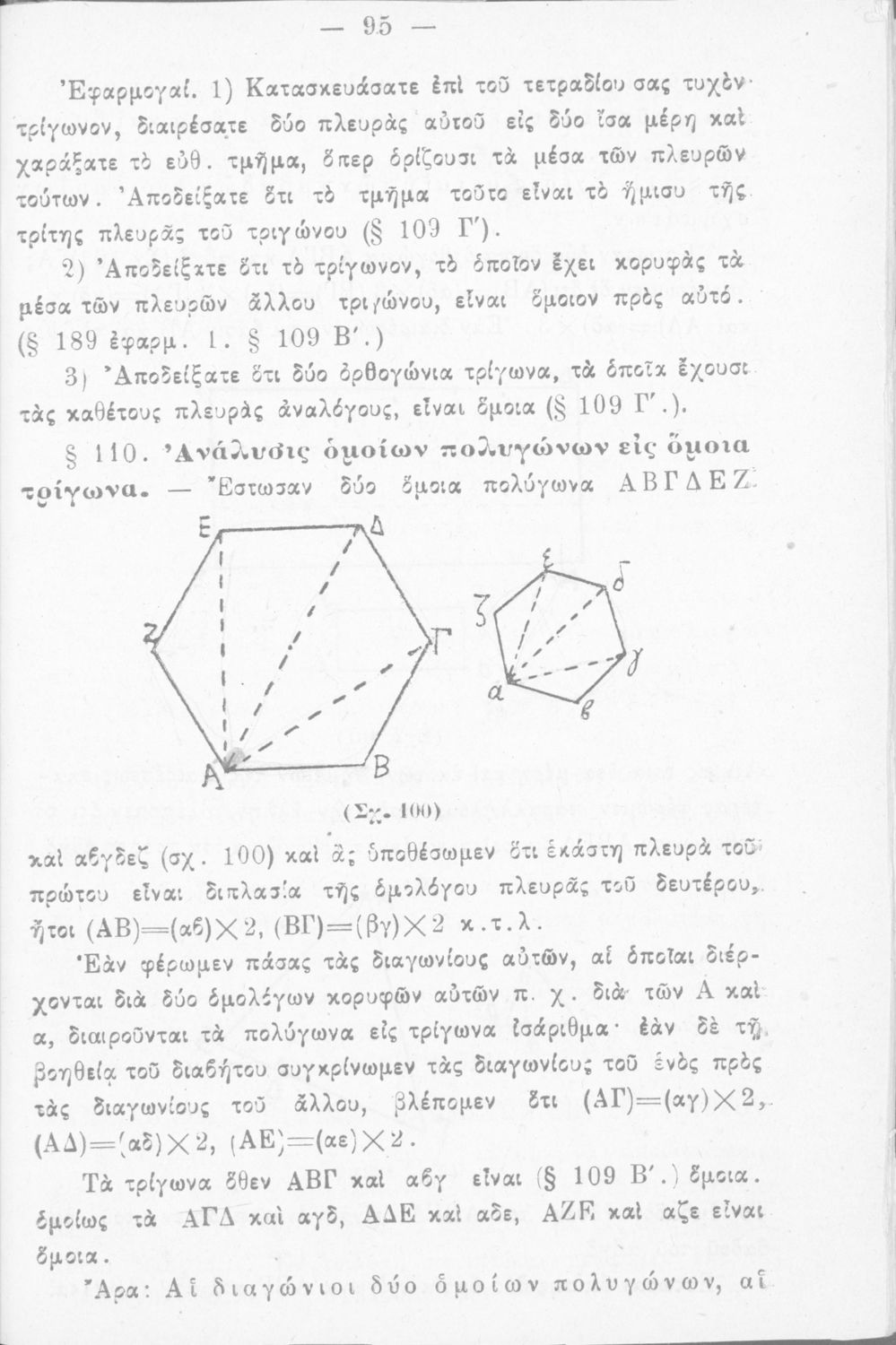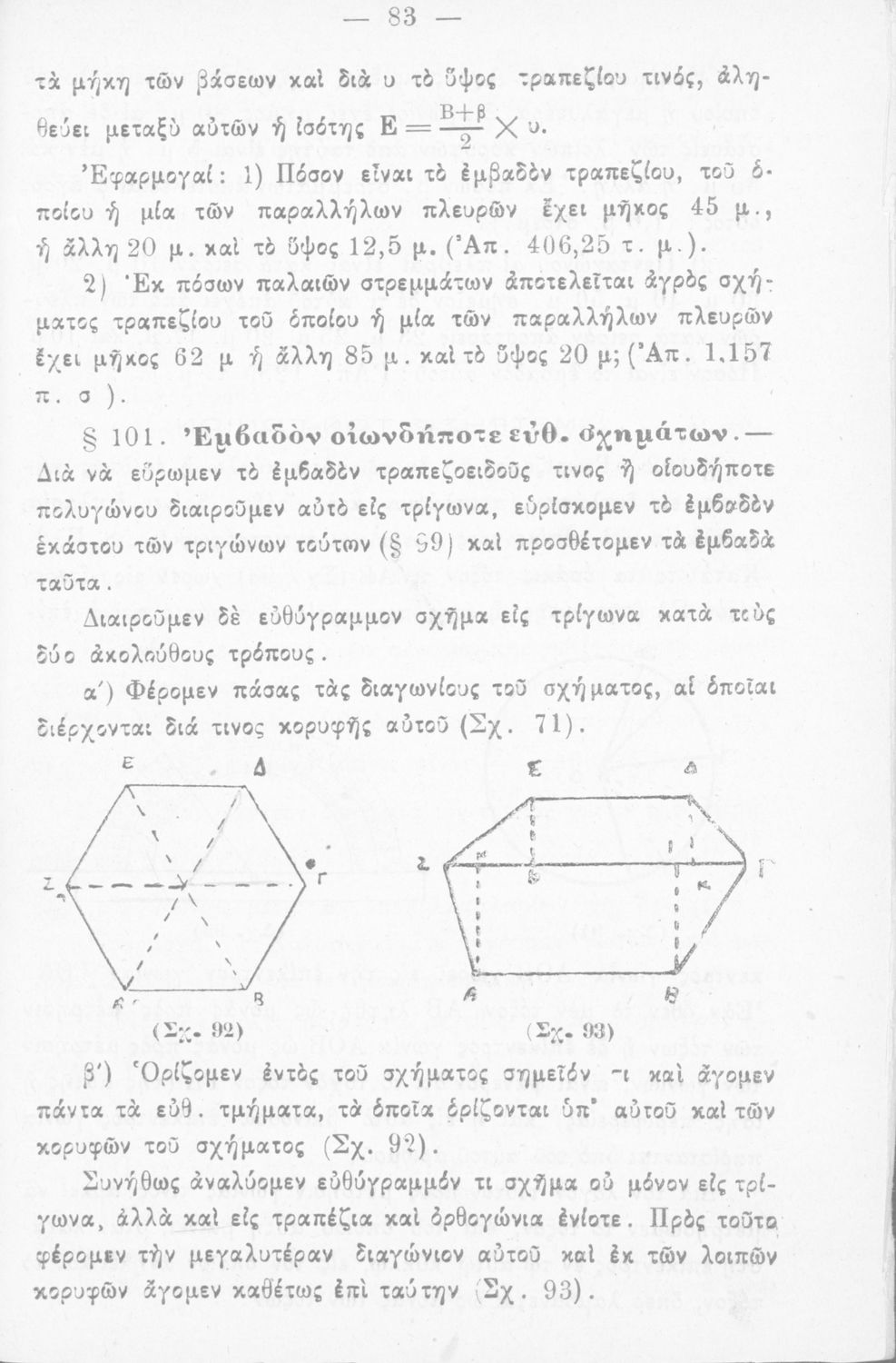 Σχολικό εγχειρίδιο Γεωμετρίας για την Α΄, Β΄ και Γ΄ τάξη των Ελληνικών και Αστικών Σχολείων και Παρθεναγωγείων που είναι χωρισμένο σε Επιπεδομετρία και Στερεομετρία και περιλαμβάνει θεωρία και ασκήσεις.