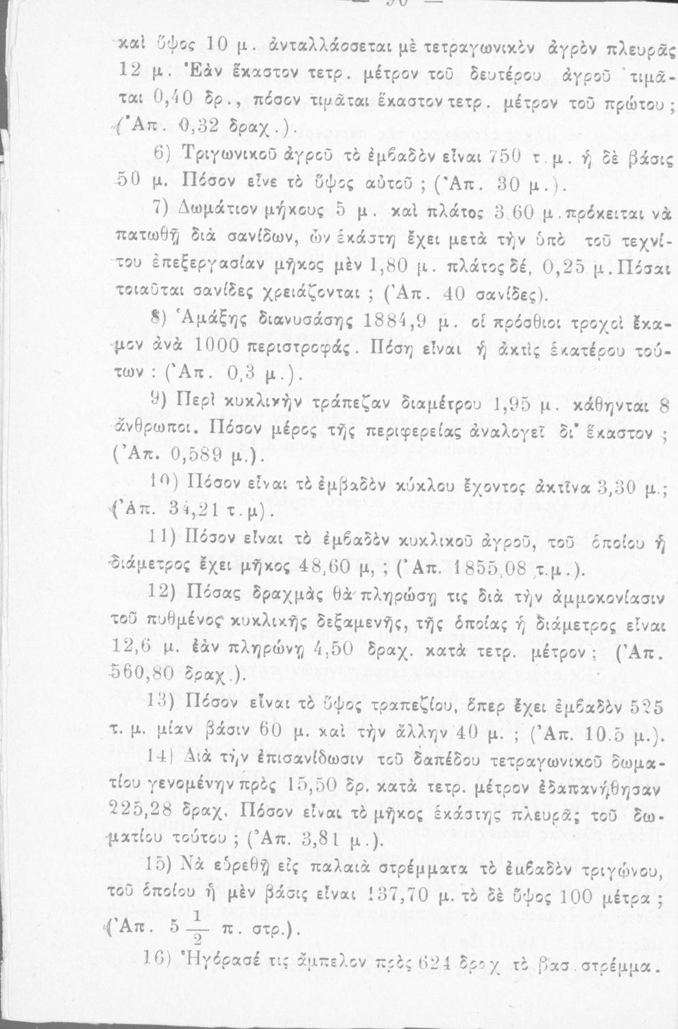 Μαθητικό βοήθημα Μαθηματικών για τους μαθητές των Ελληνικών Σχολείων και των Αστικών Σχολών που περιέχει τις λύσεις ασκήσεων αριθμητικής και γεωμετρίας που περιλαμβάνονται στα βιβλία του Ιωάννη Ν. Χατζηδάκη ...