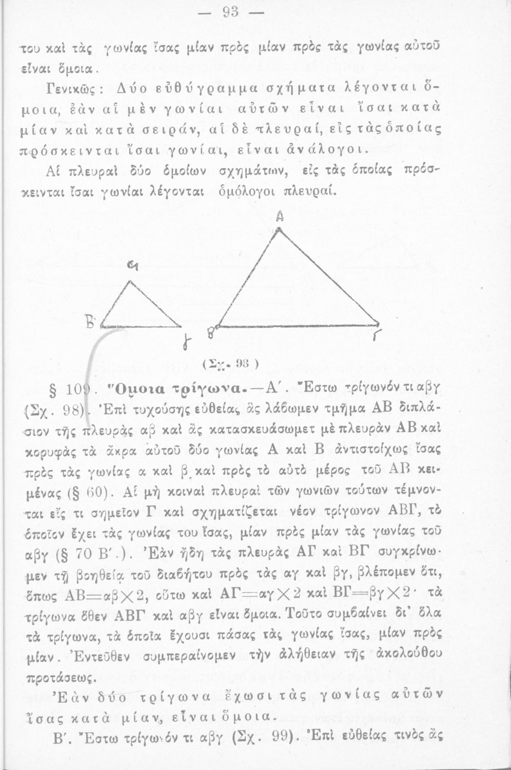 Σχολικό εγχειρίδιο Γεωμετρίας για τα Ελληνικά και Αστικά Σχολεία χωρισμένο σε Επιπεδομετρία και Στερεομετρία. Περιλαμβάνει προβλήματα και στοιχεία χωρομετρίας.